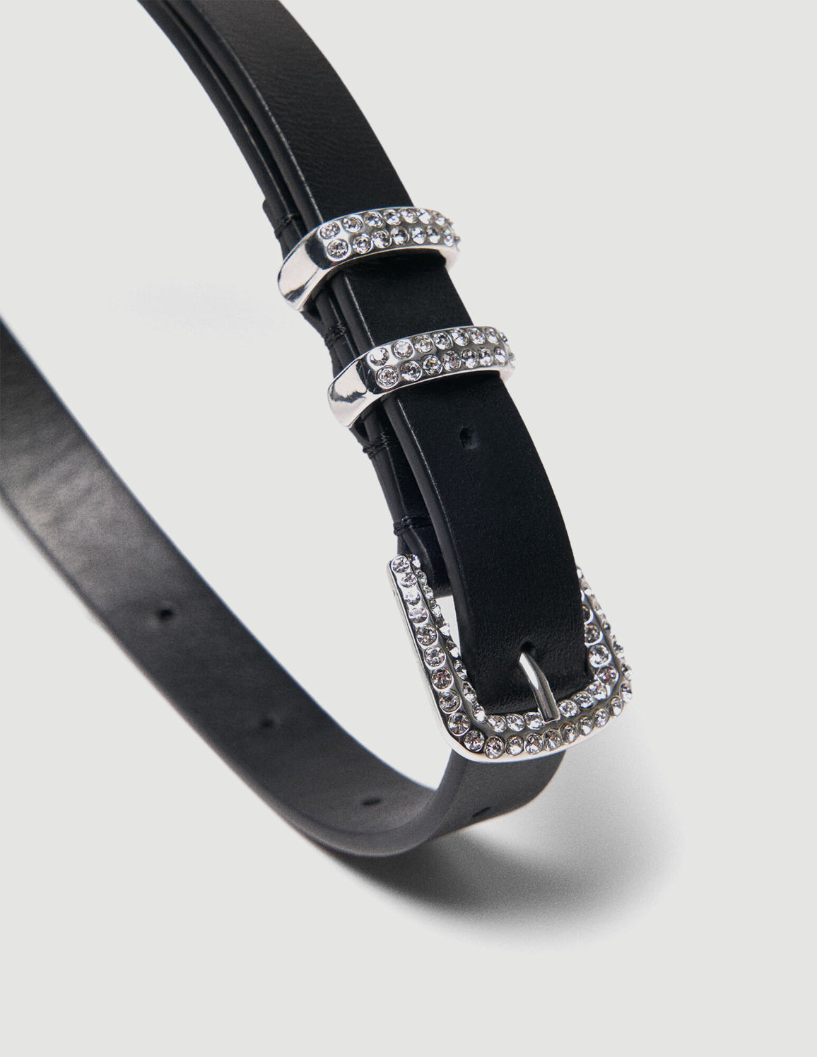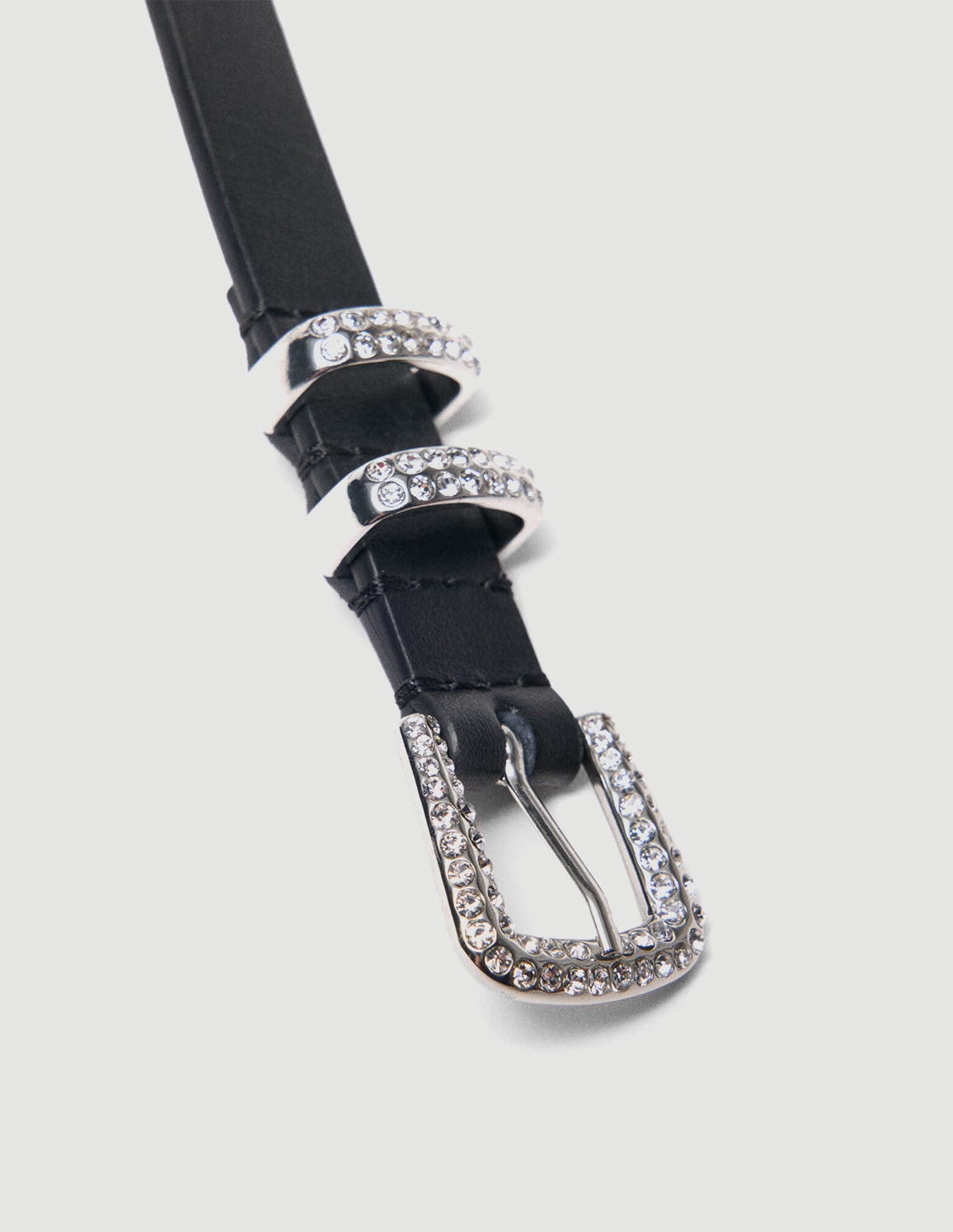 Maje - Women's Thin With Rhinestone Buckle Belt