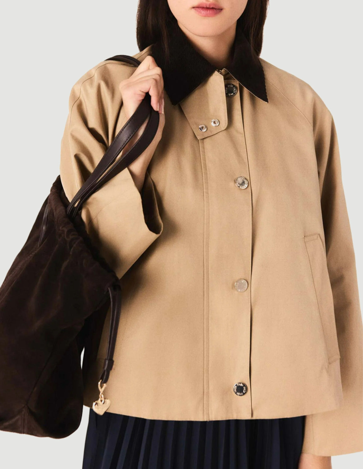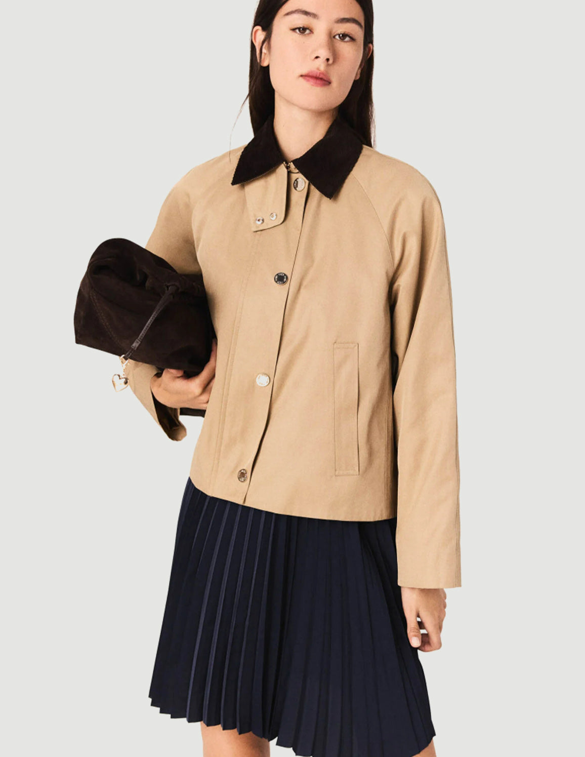 Maje - Women's Trapeze Jacket With Contrast Collar