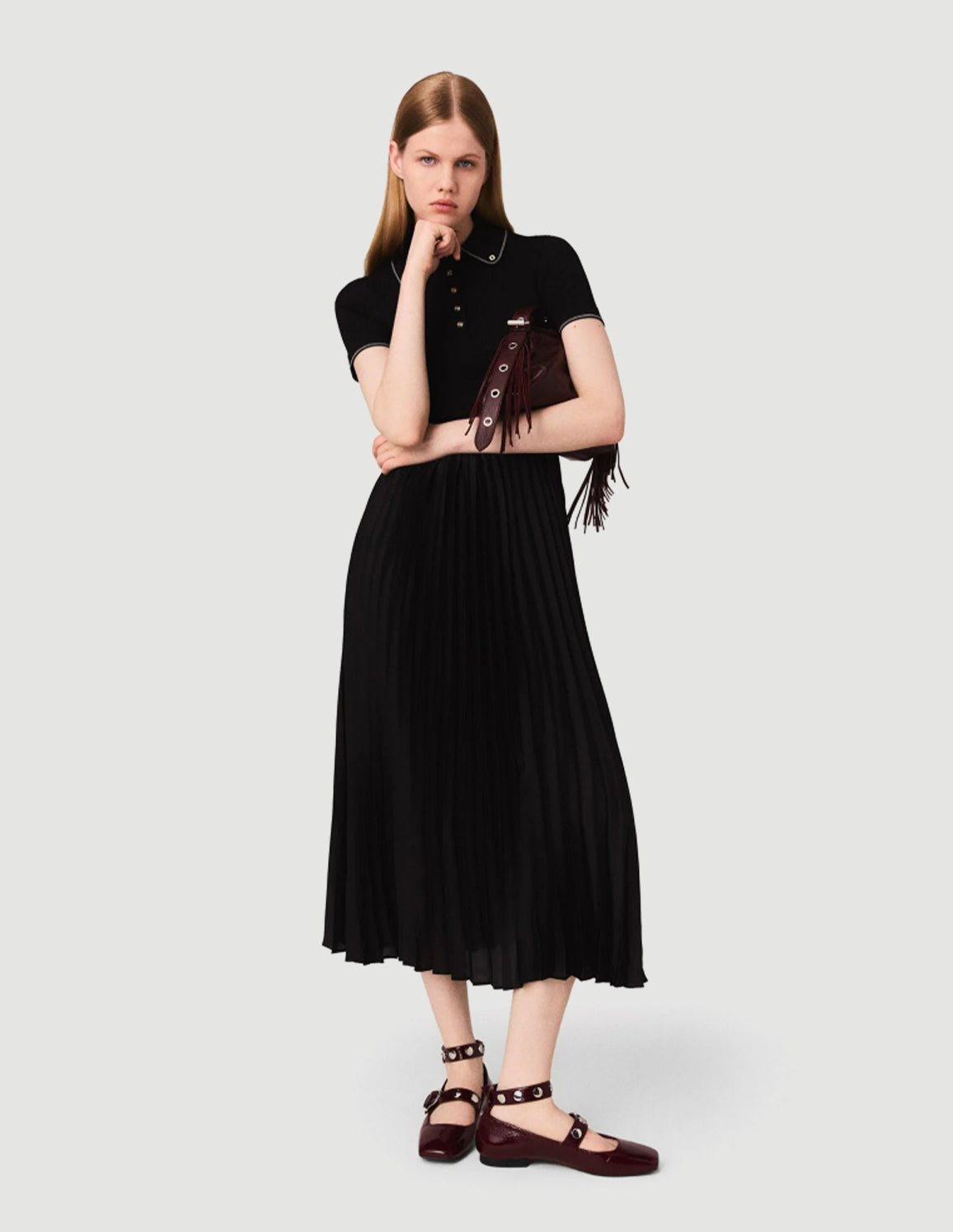 • Maje - Women's Pleated Maxi Dress With Polo Collar