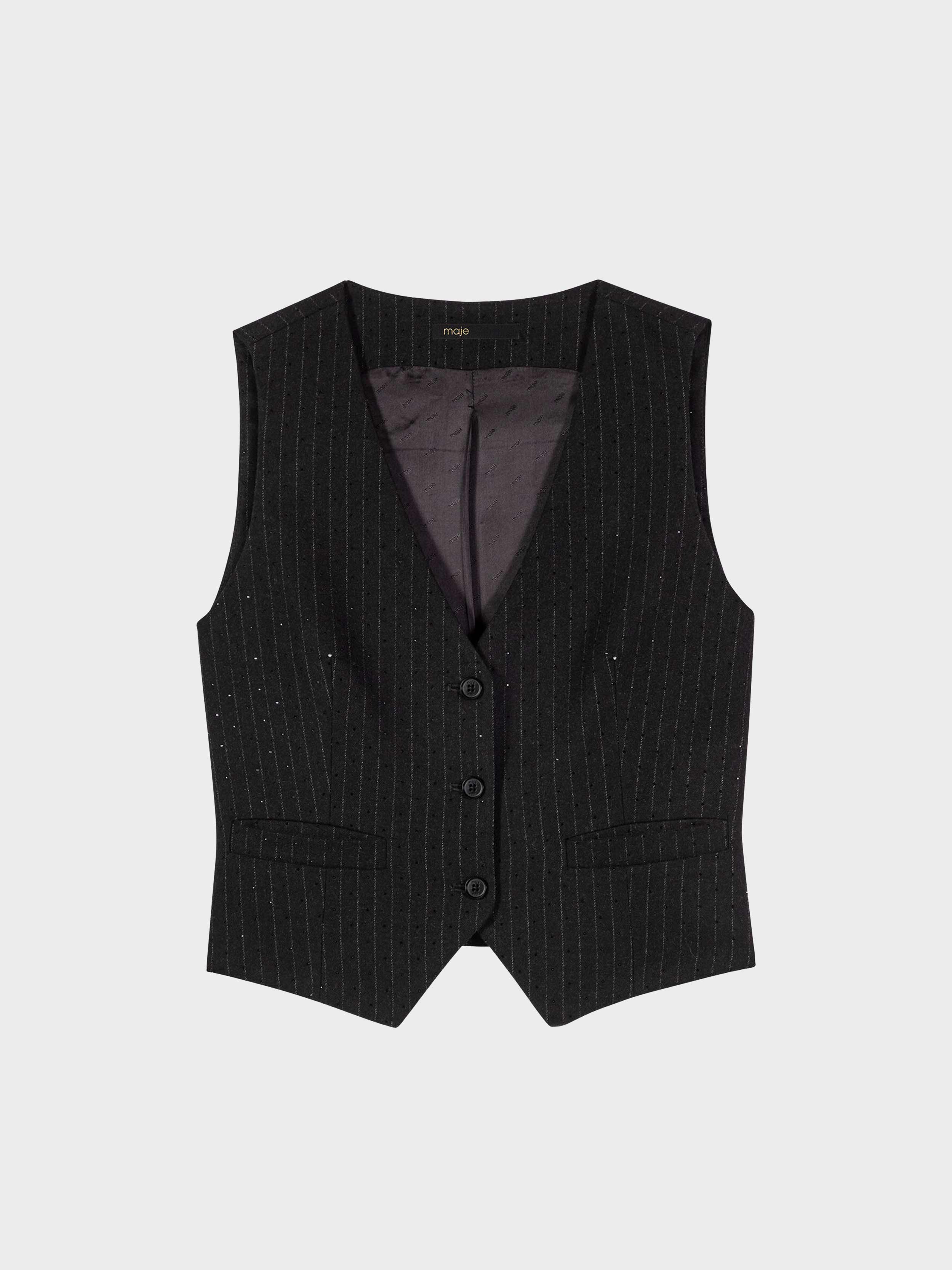 • Sleeveless pinstripe jacket