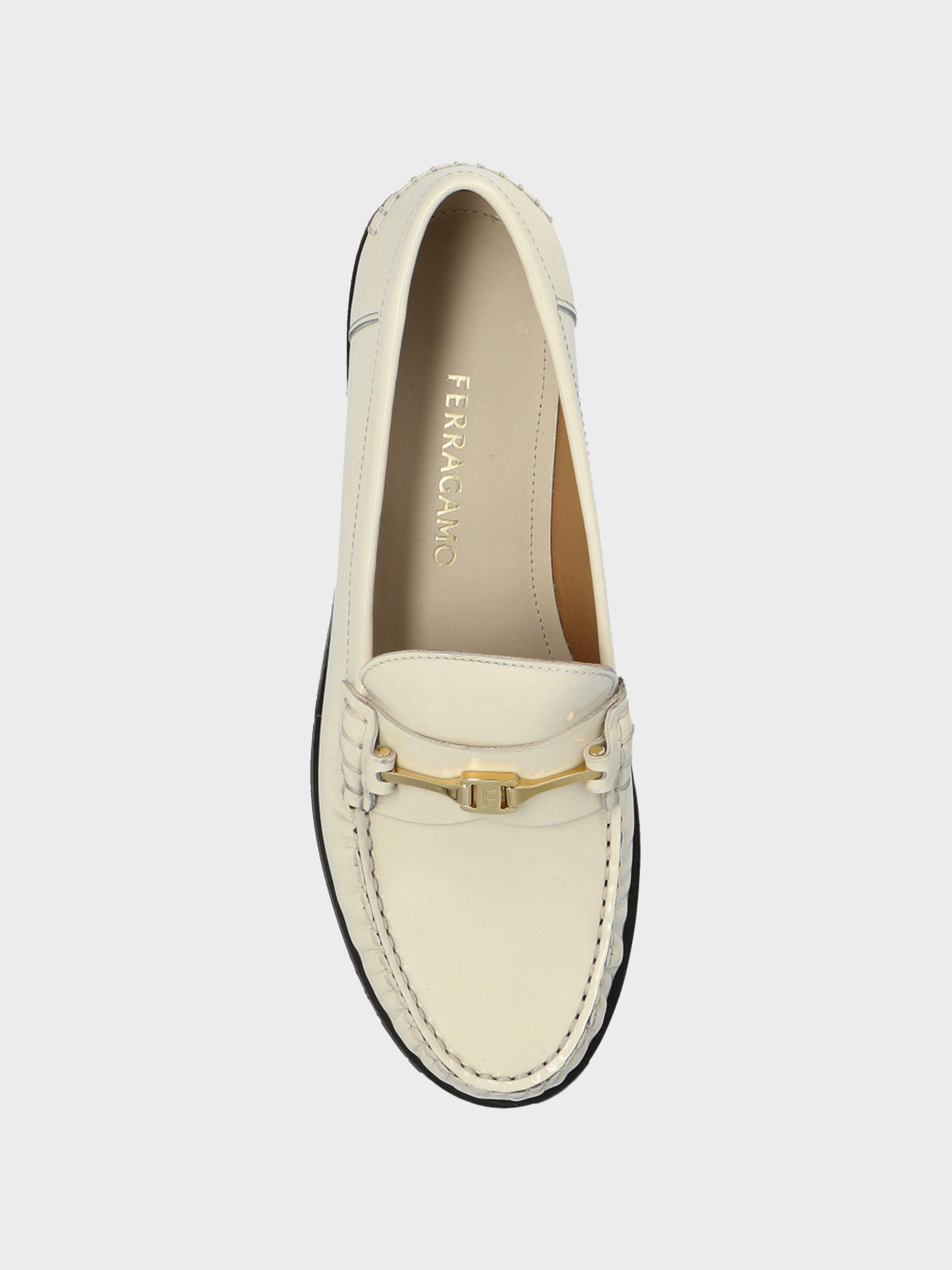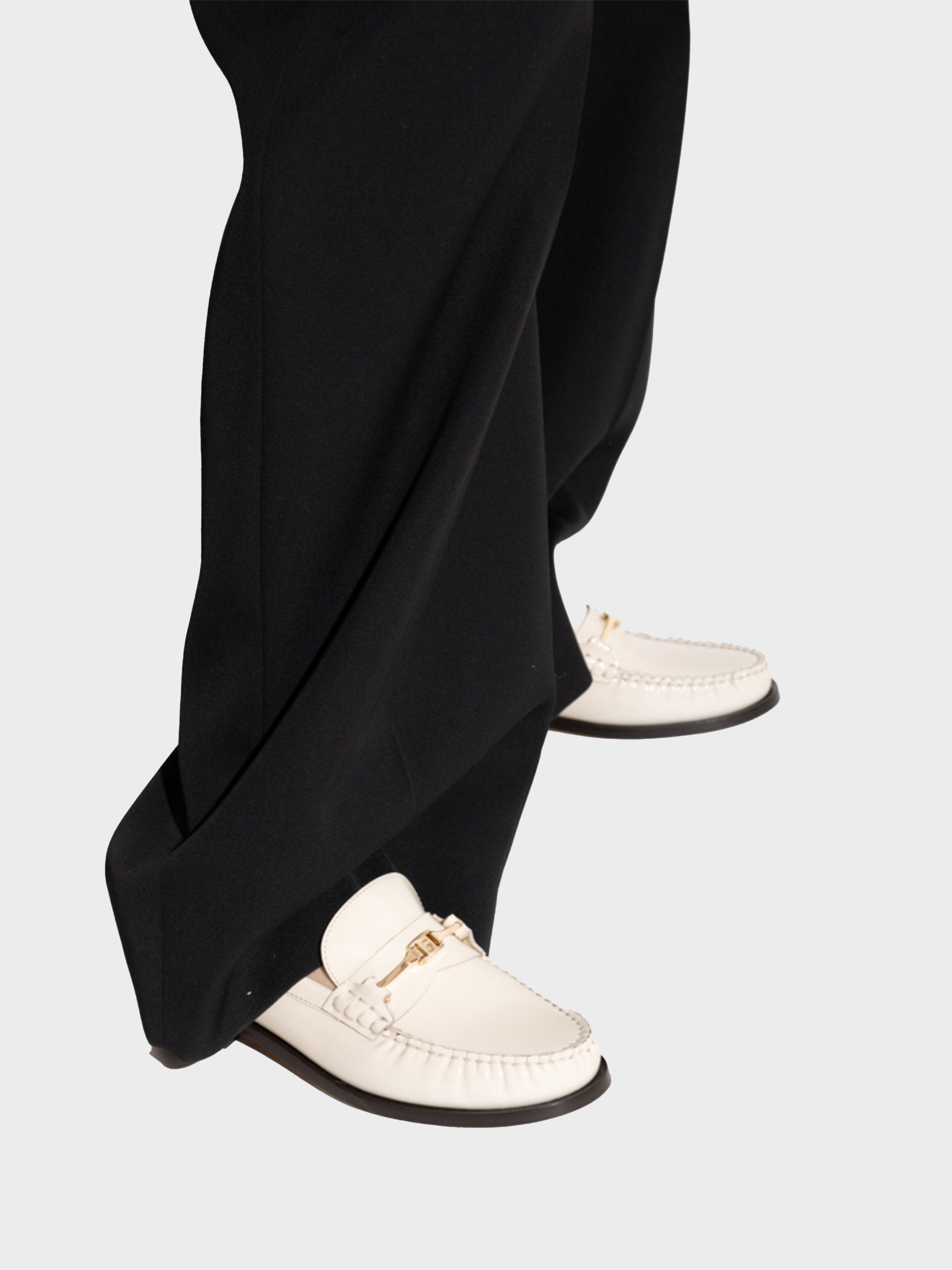 • The classic design of the loafers, with a rounded toe and signature stitching around the front of the shoe, underscores their timeless character. The sophisticated gold buckle on the front adds elegance, while the black, flat soles offer exceptional comfort.