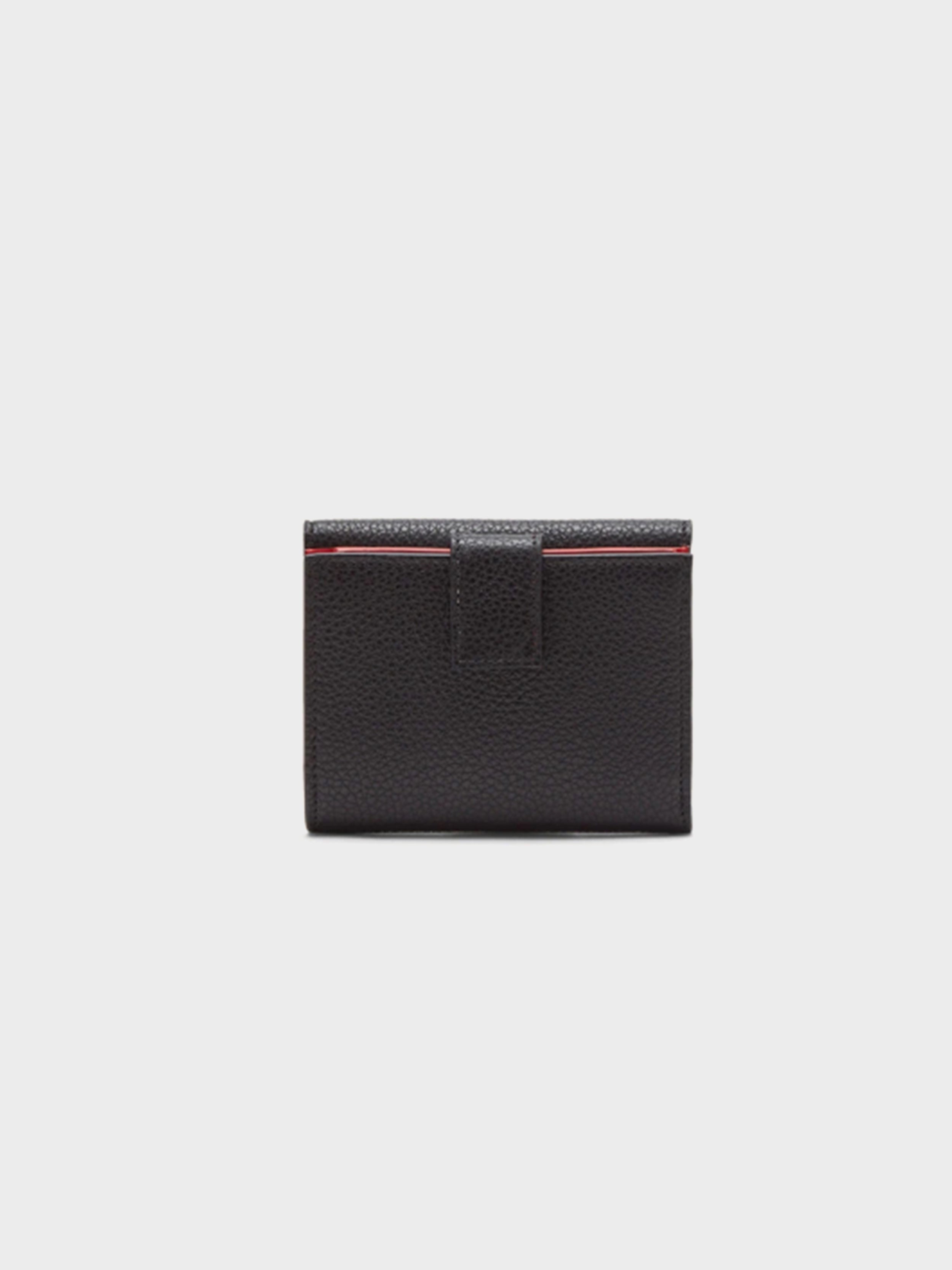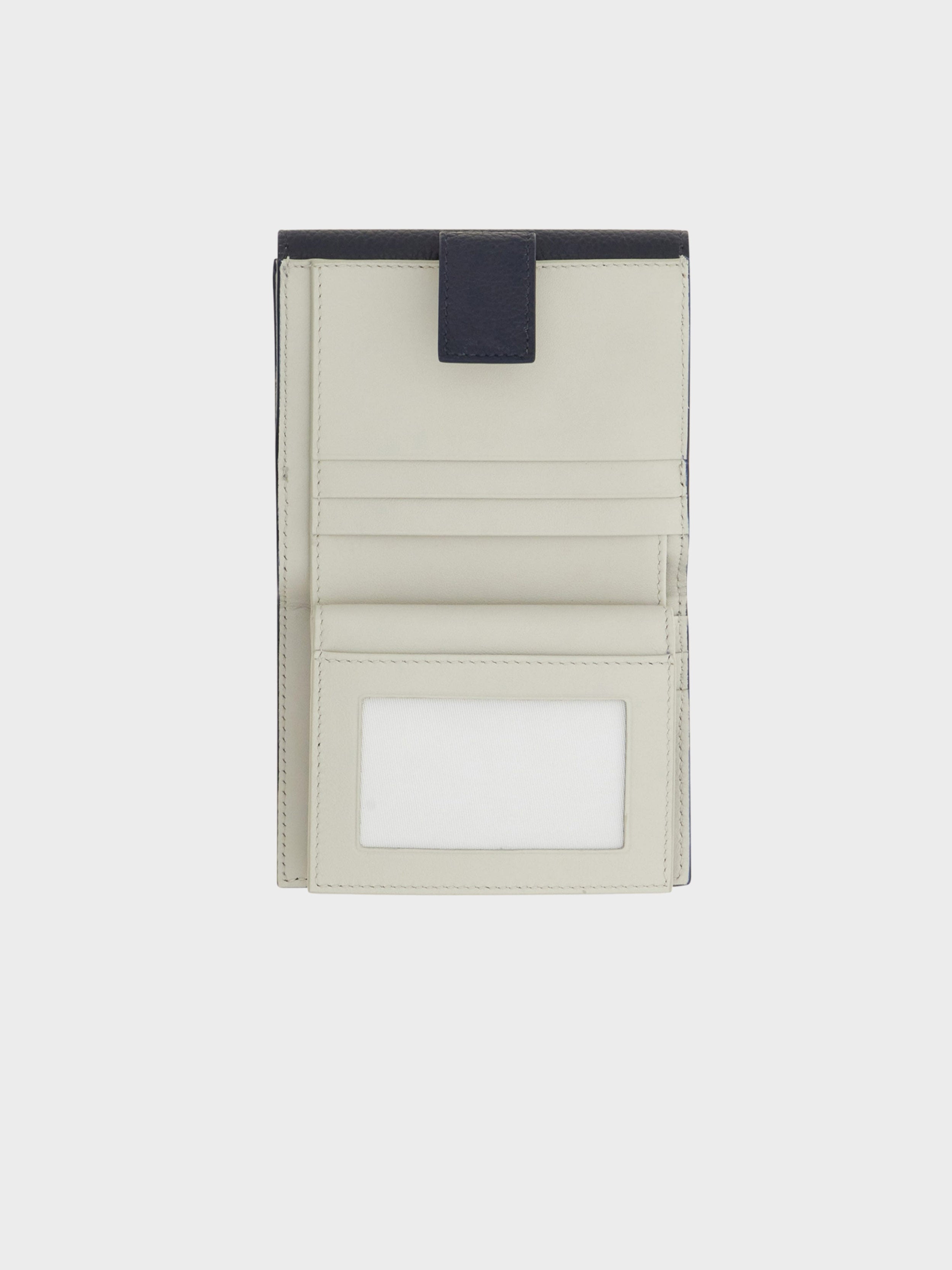 • Compact and versatile, this French wallet features a grained calfskin exterior and a smooth, contrast-color interior. Designed for effortless organization, it includes flat pockets, a bill compartment, and an external coin pocket with a snap closure. The front flap is elegantly finished with a double Gancini buckle and a sleek square center plate.