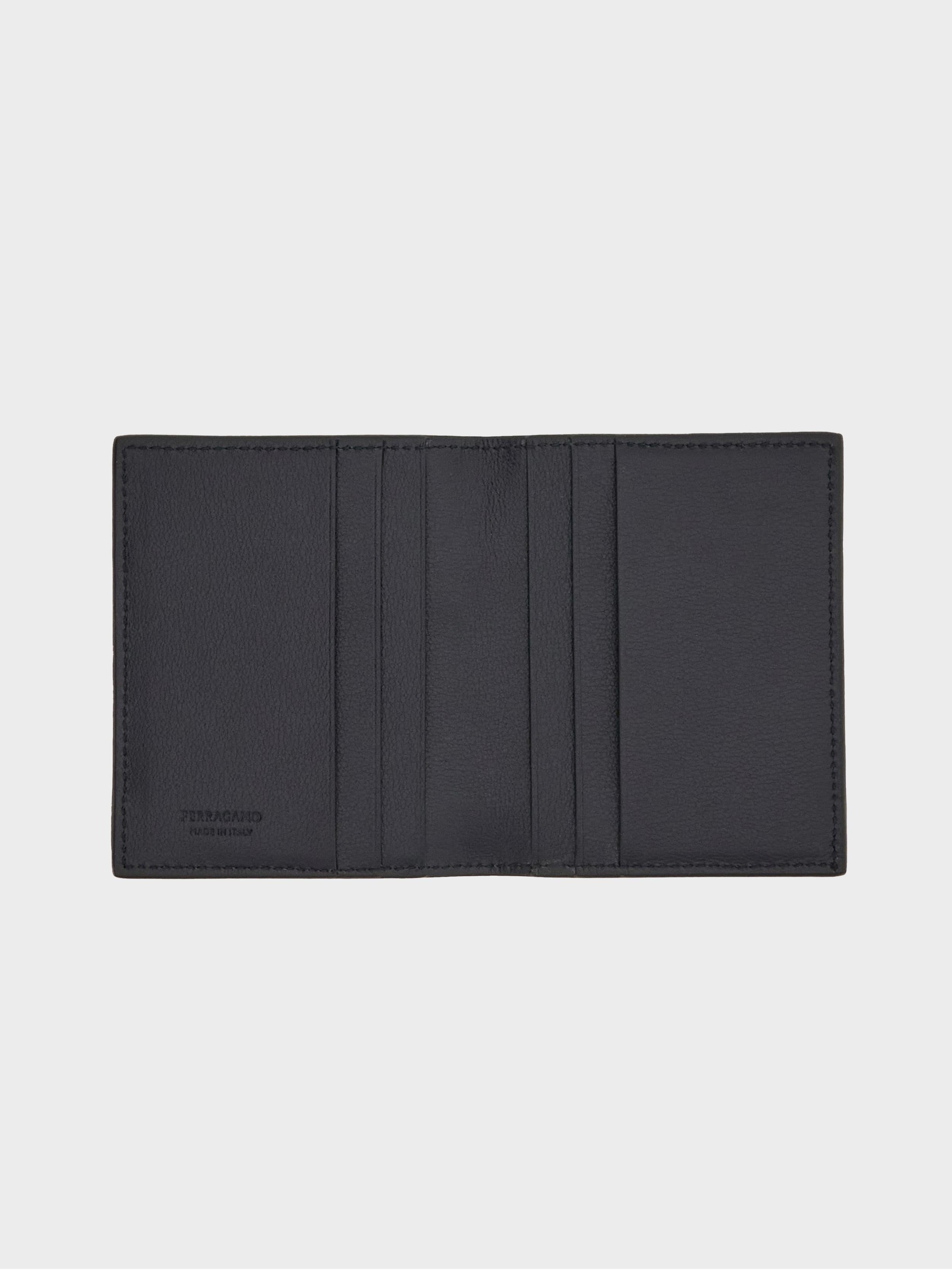 • Bifold cardholder featuring the iconic Ferragamo Monogram embossed on the exterior.