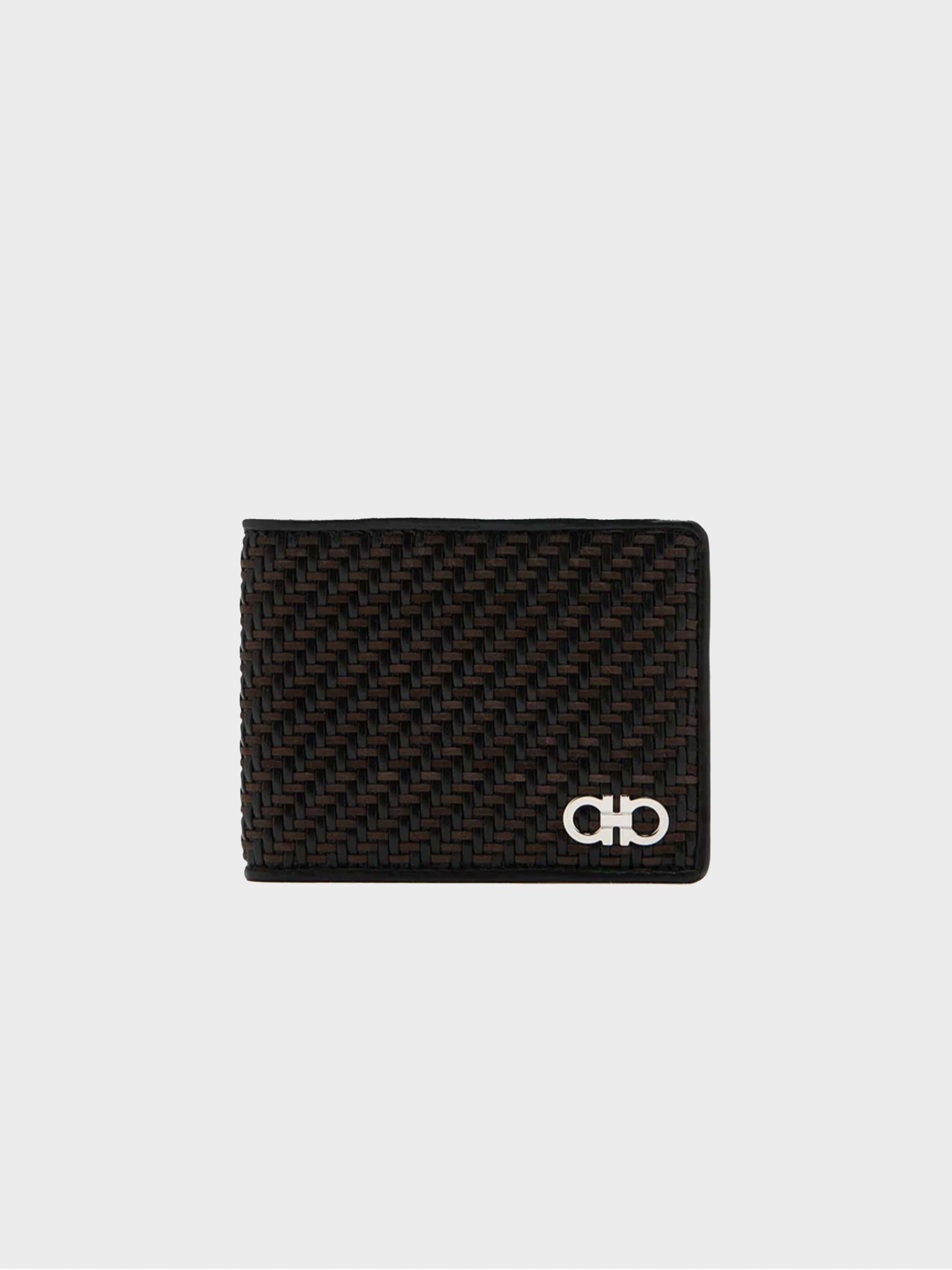 • The Gancio woven leather wallet by Ferragamo makes for the perfect gifting option to a loved one or even for yourself. Made from woven leather, featuring a silver-toned logo hardware on the front, the bi-fold wallet features multiple card slots and a bill compartment for easy organization.