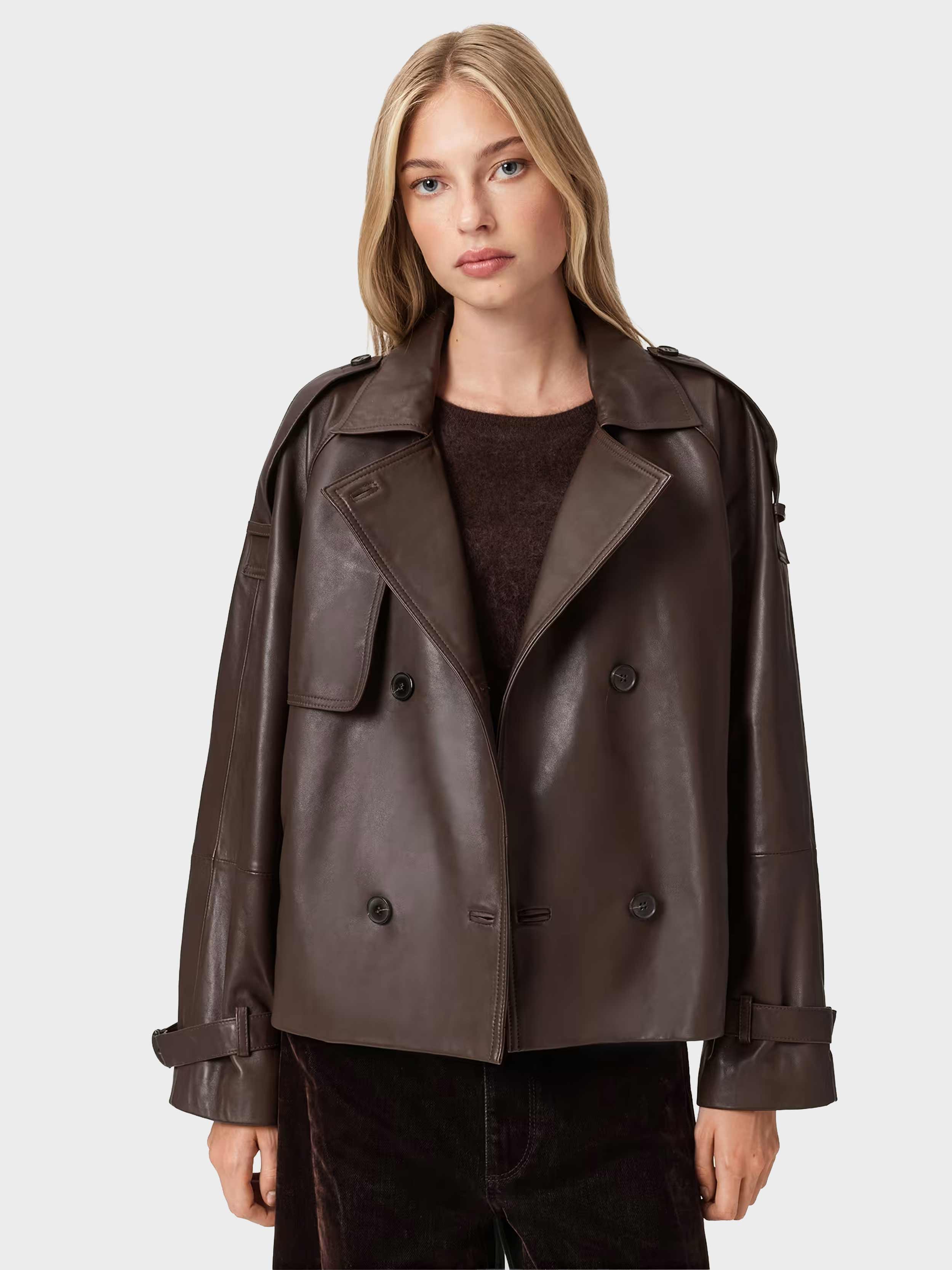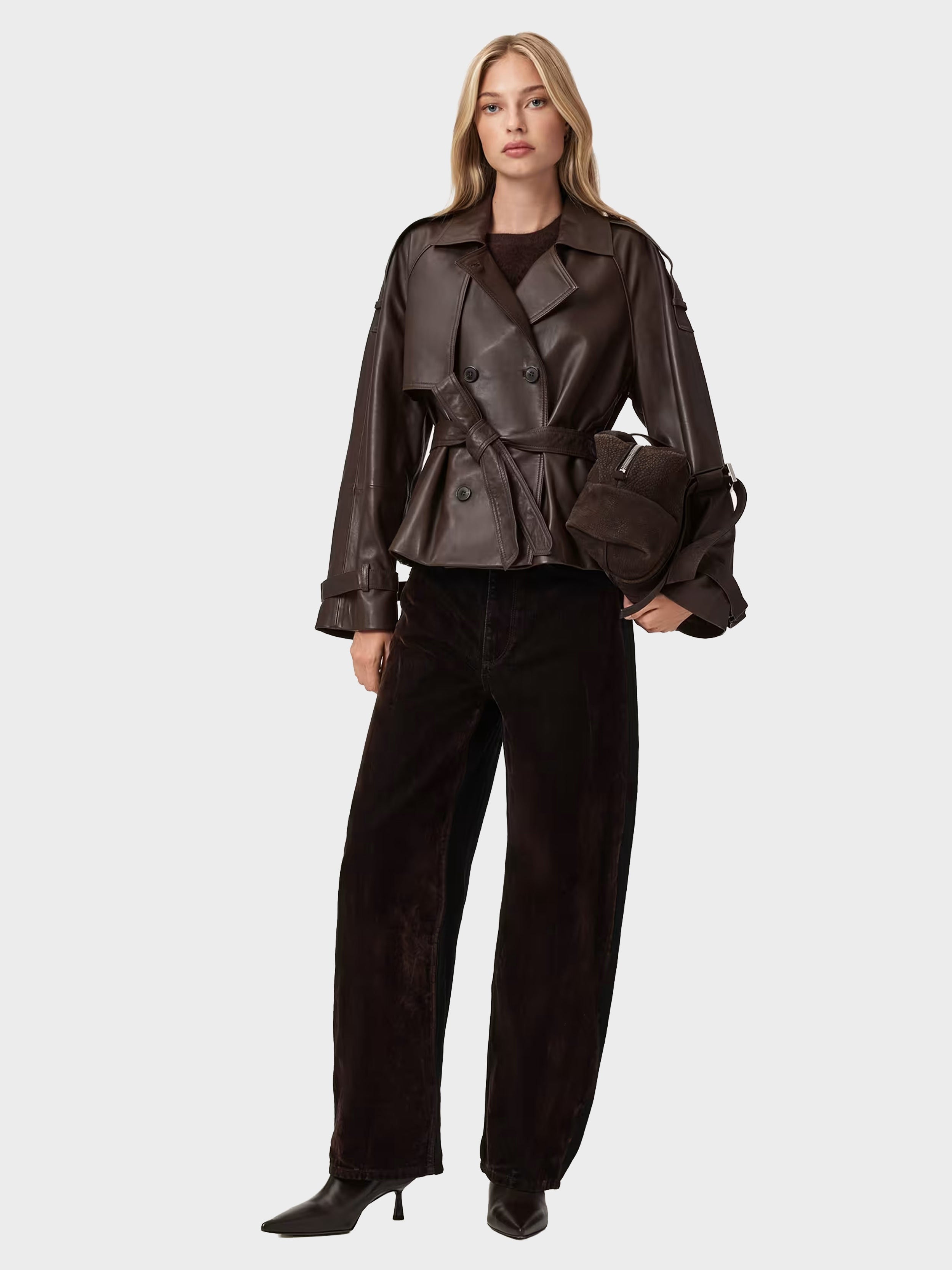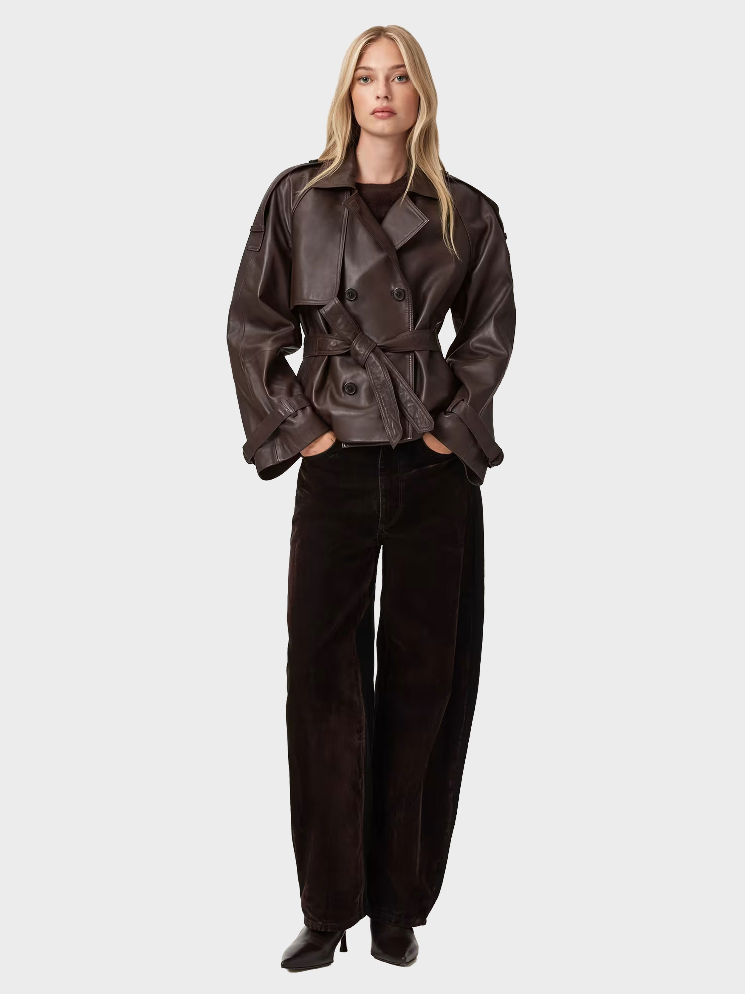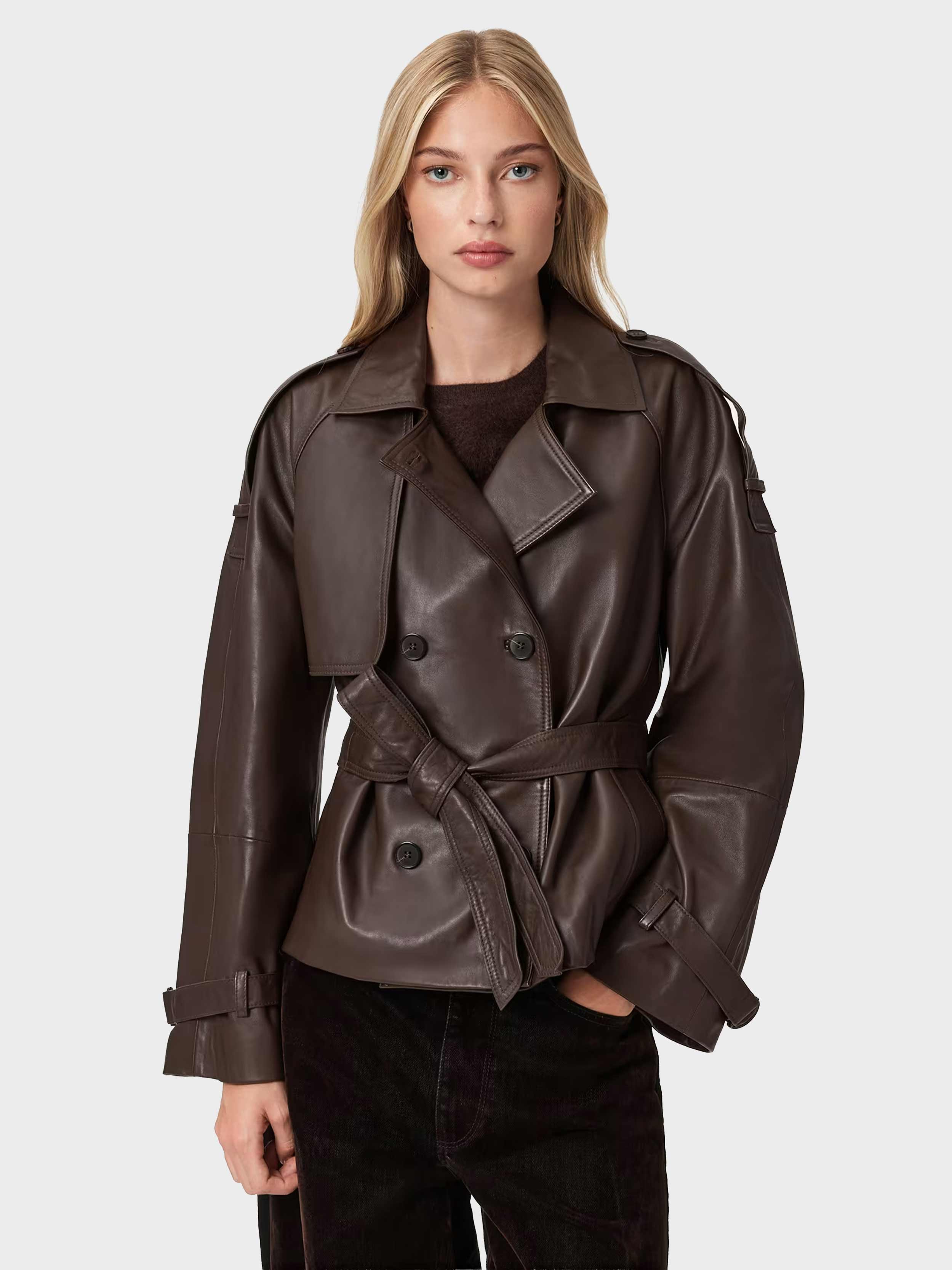 • With our Reed Cropped Leather Trench, every outfit becomes a headline. Transitional dressing just got a little more chic.