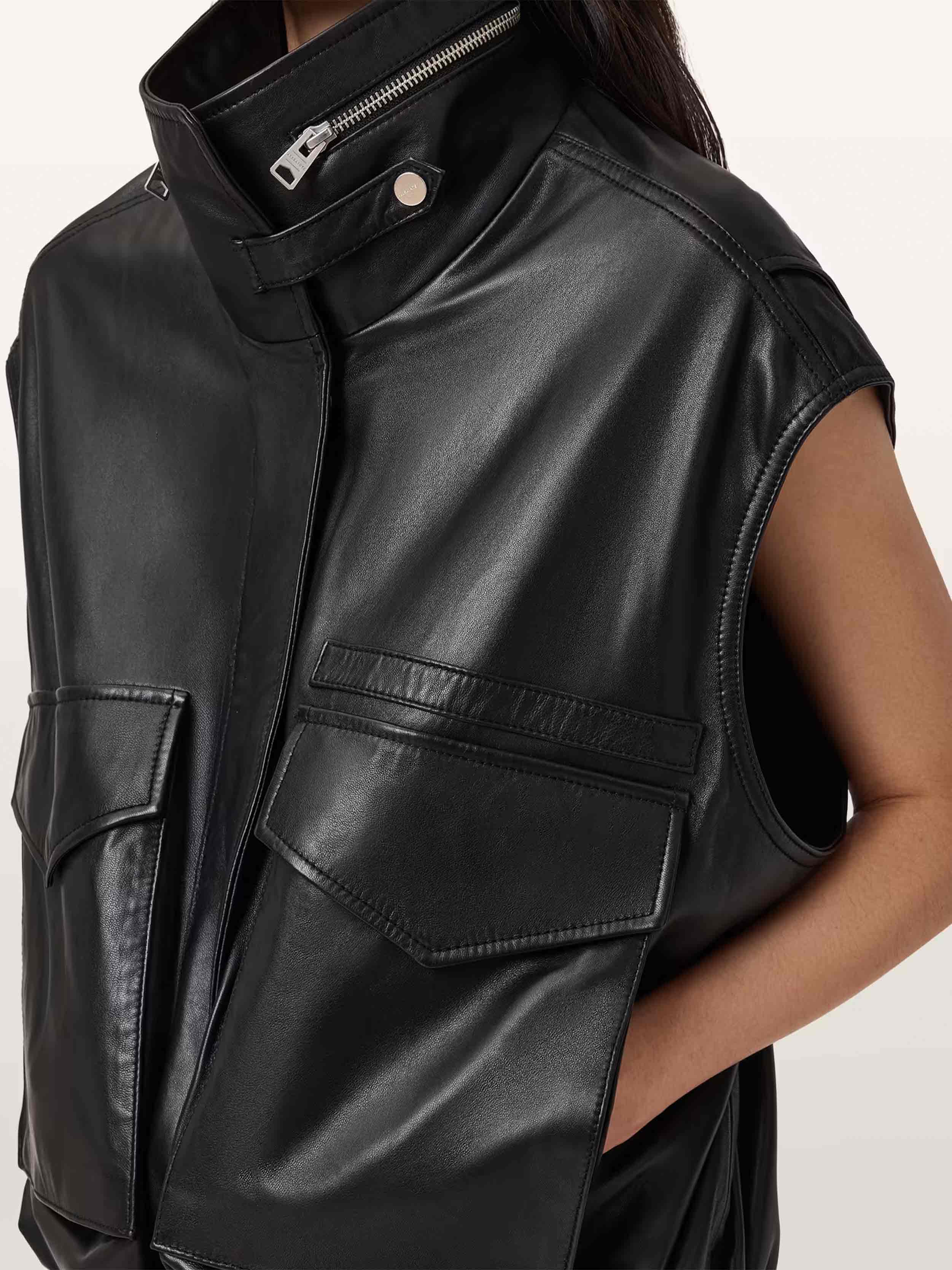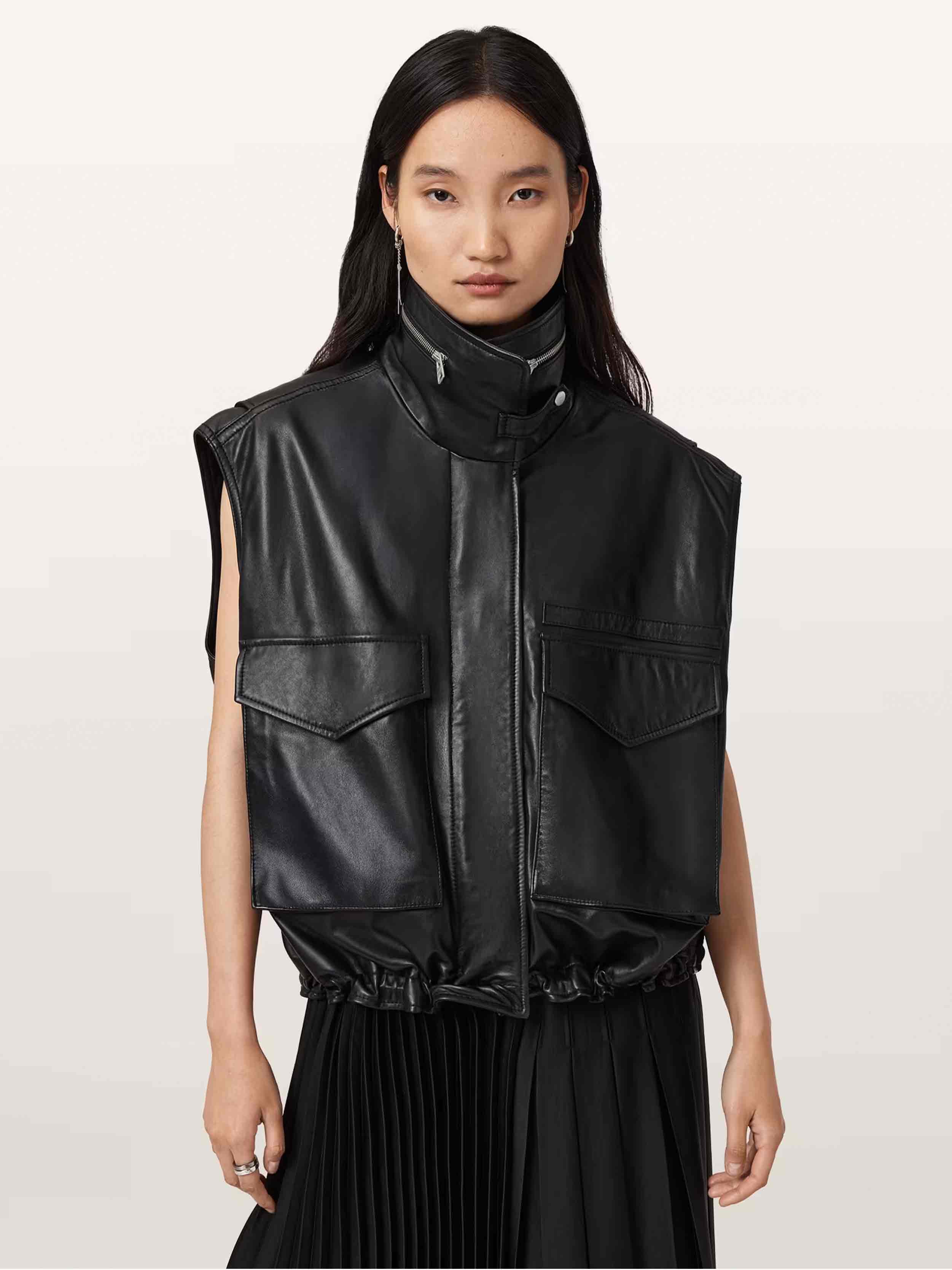 AllSaints - Women's Clay Funnel Neck Leather Gilet