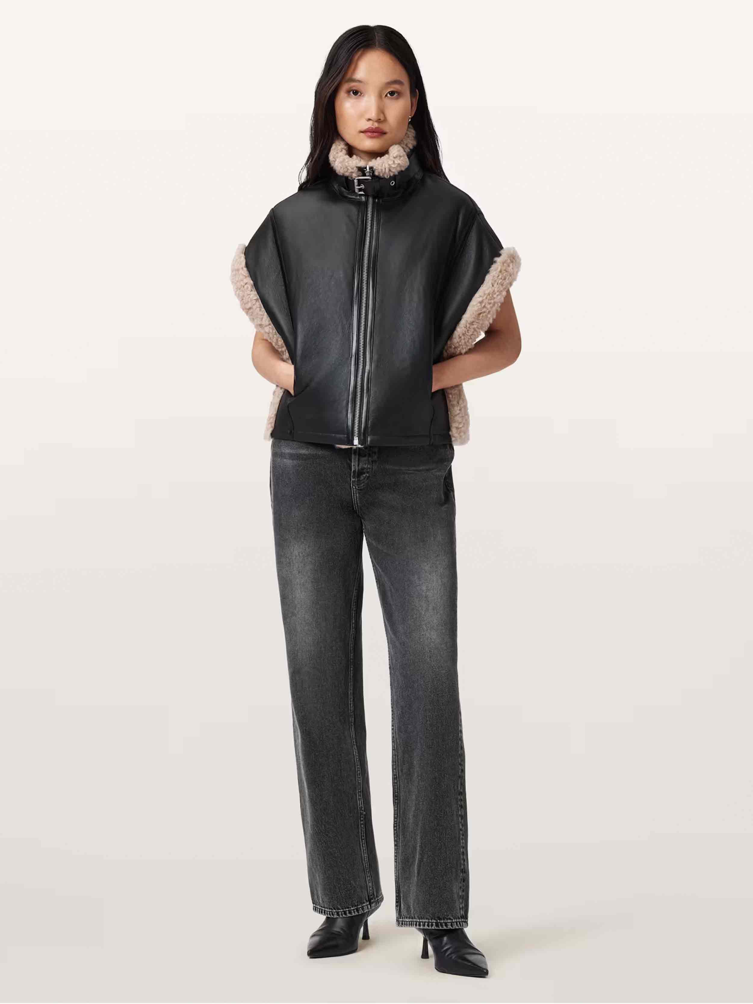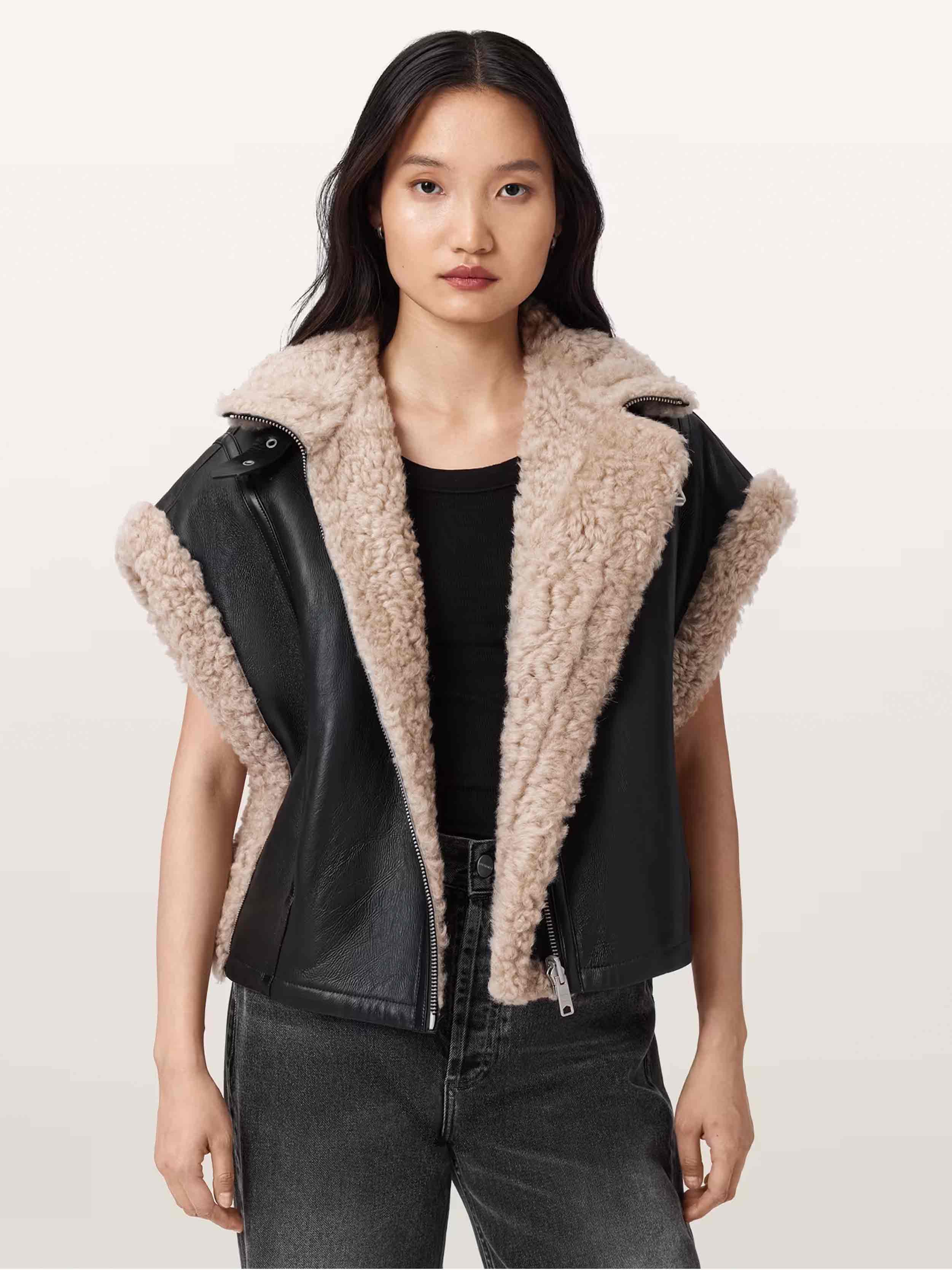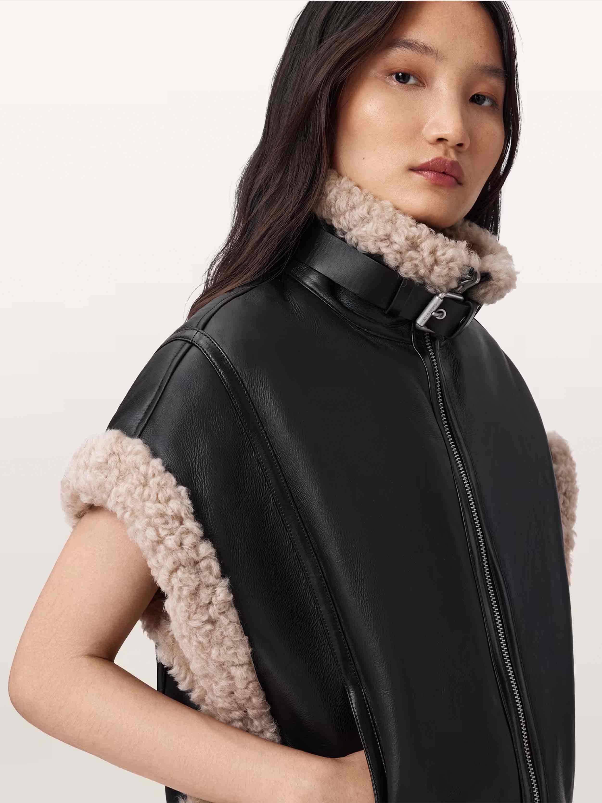 • AllSaints - Women's Marlin Reversible Shearling Gilet