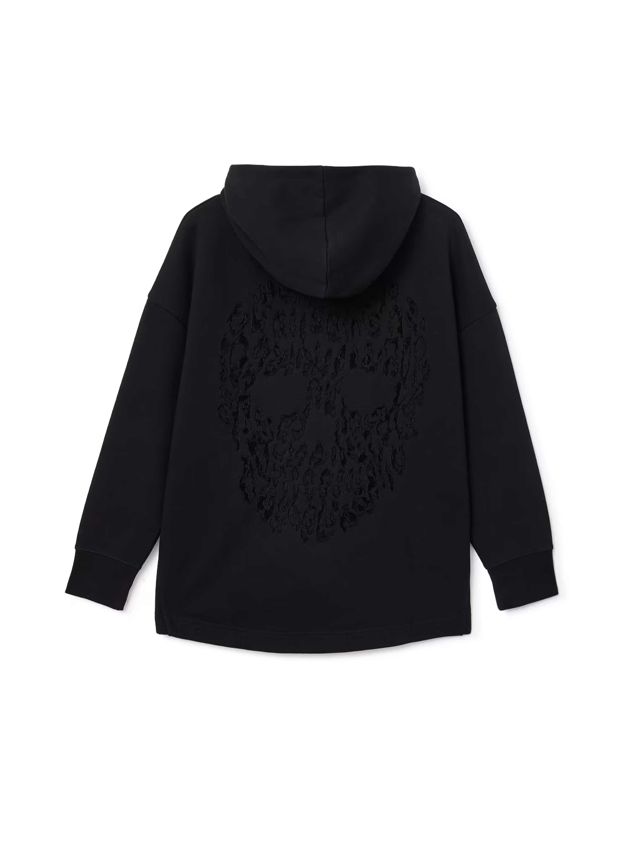 • An oversized hoodie isn't just for comfort, it's a fashion statement. Emblazoned with an eye-catching skull graphic, style this one with a lace skirt and your favorite boots for a standout look.