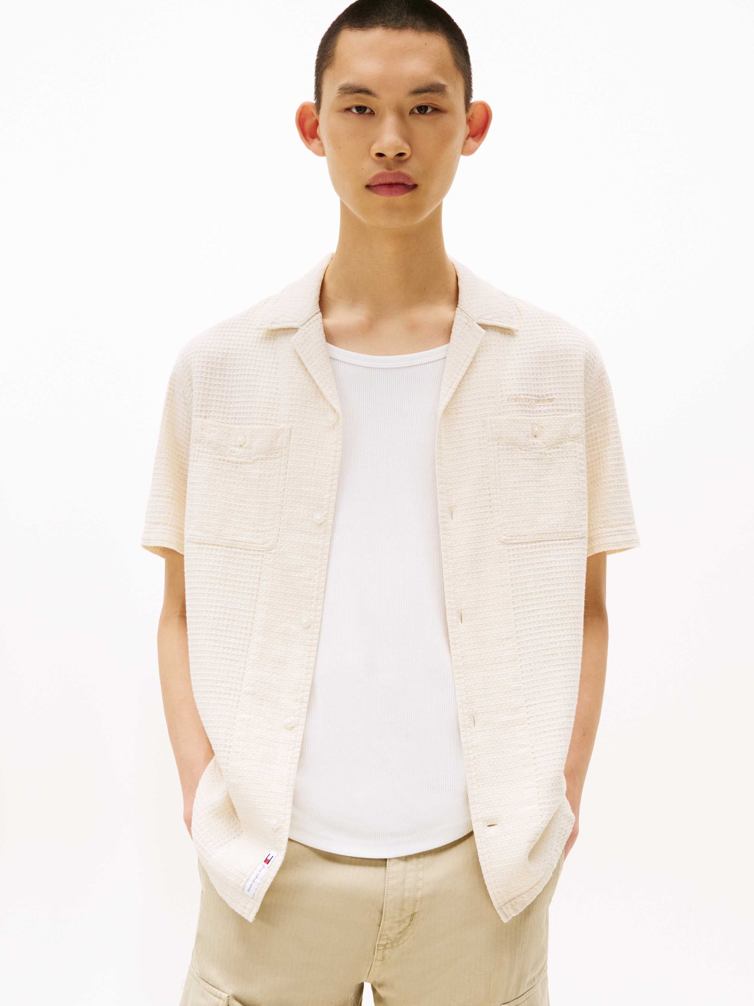 Tommy Hilfiger - TJM WAFFLE REG CAMP SHIRT , XL , Desert Sand Dune , Style DM0DM21928