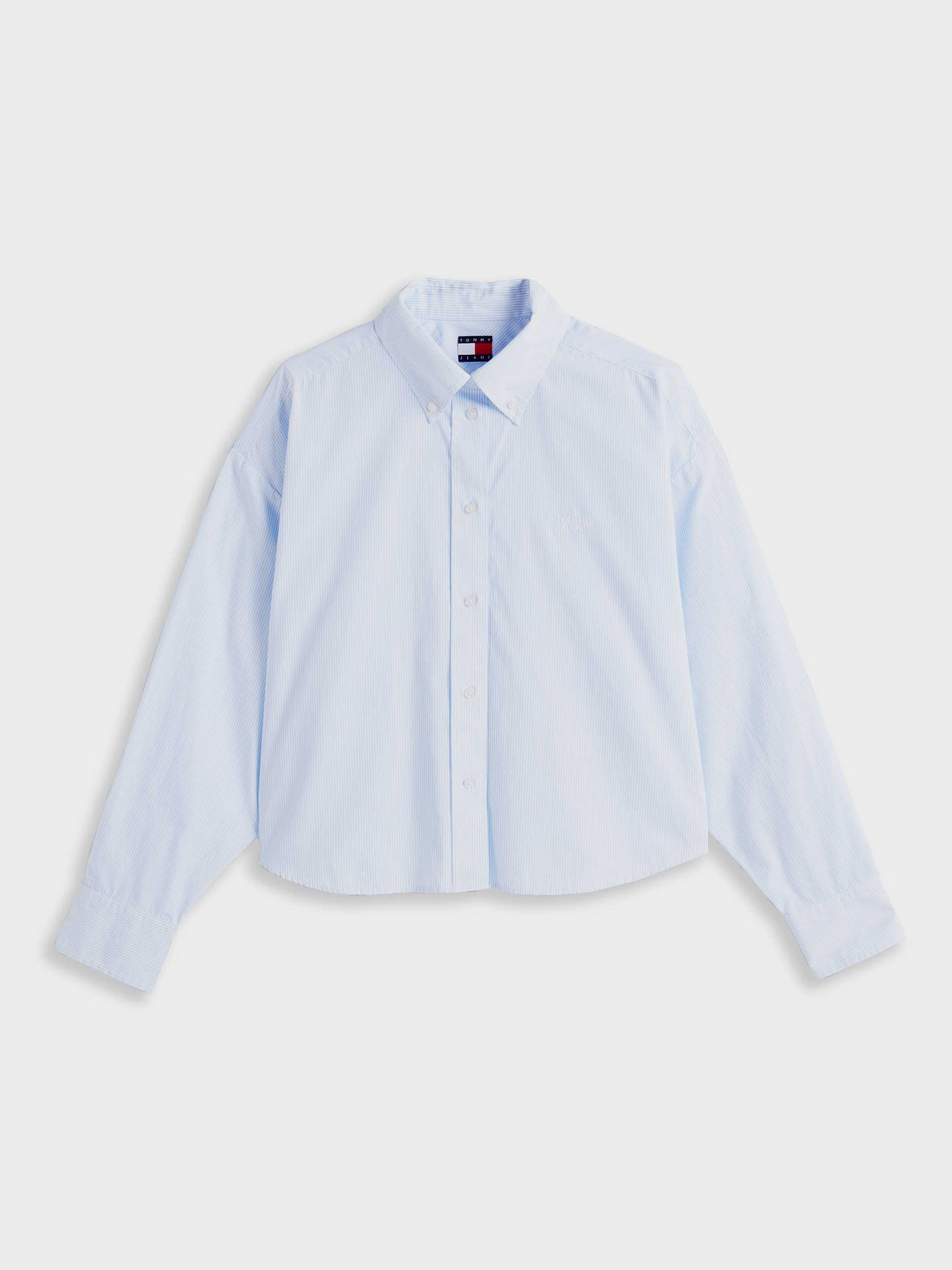 Tommy Hilfiger - TJW REG CROP STRIPE POPLIN SHIRT , M , Light Powdery Blue / Stripe , Style DW0DW21400