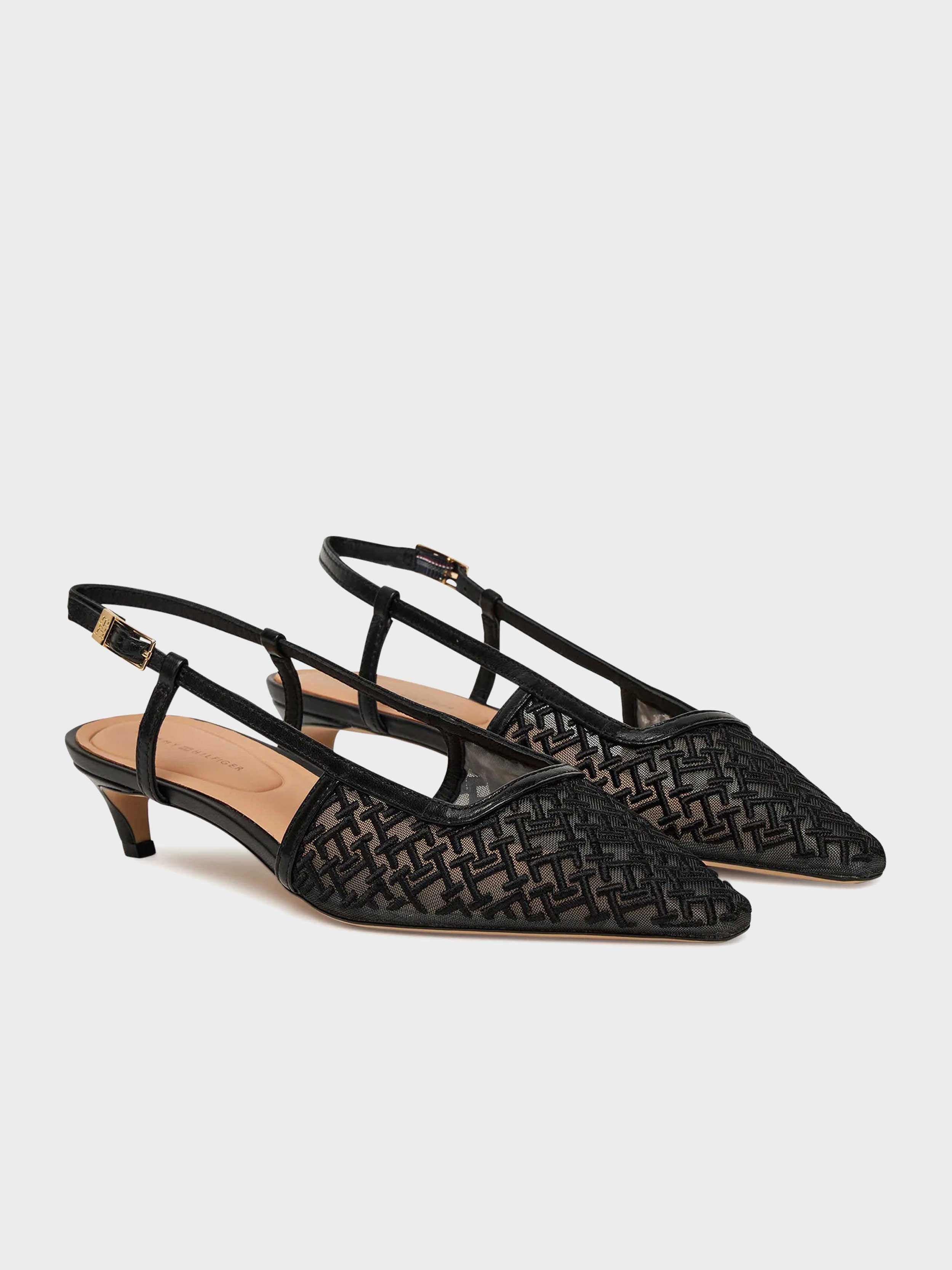 • Tommy Hilfiger - Women's Monogram Slingback Mesh Kitten Heels