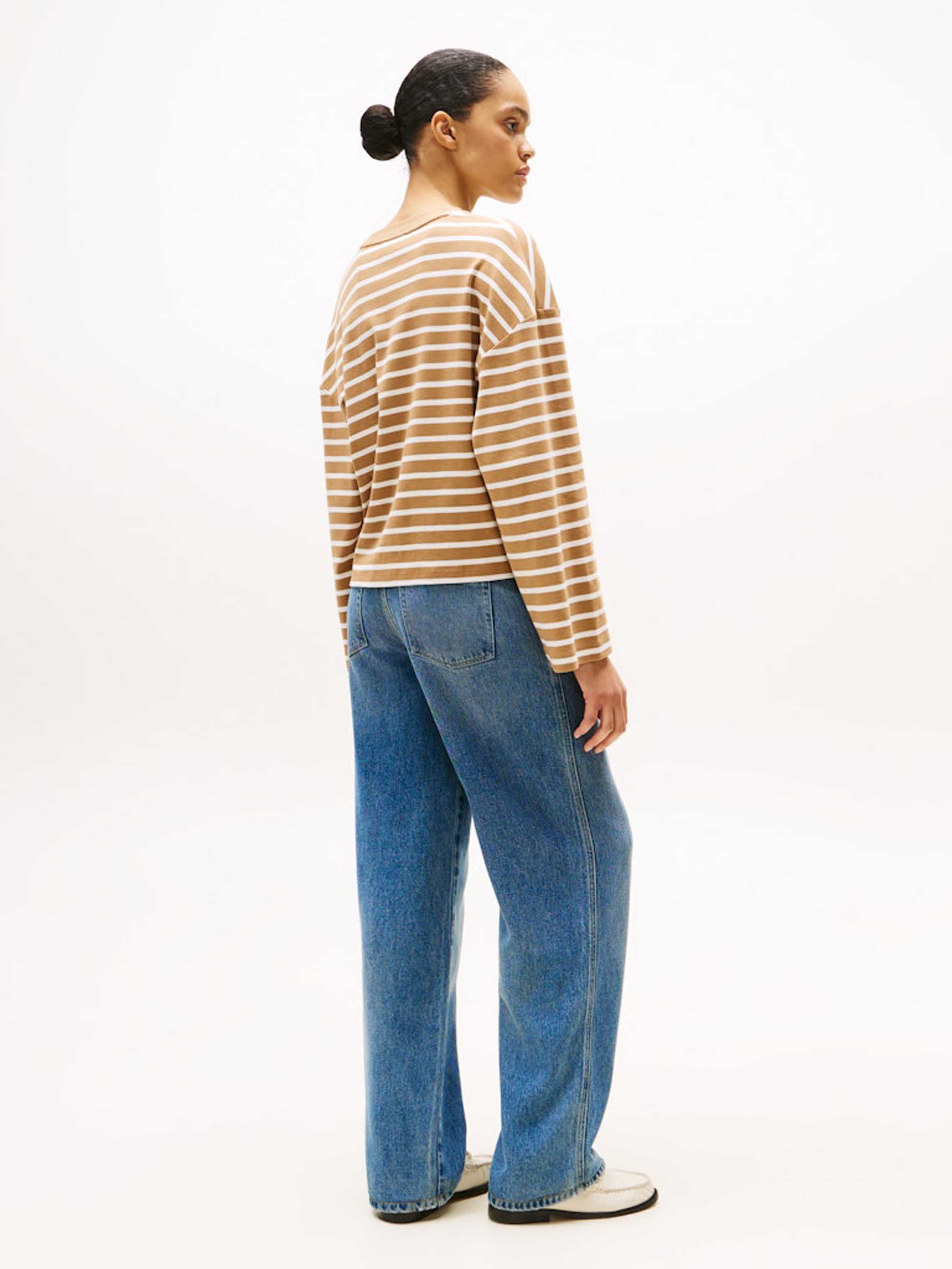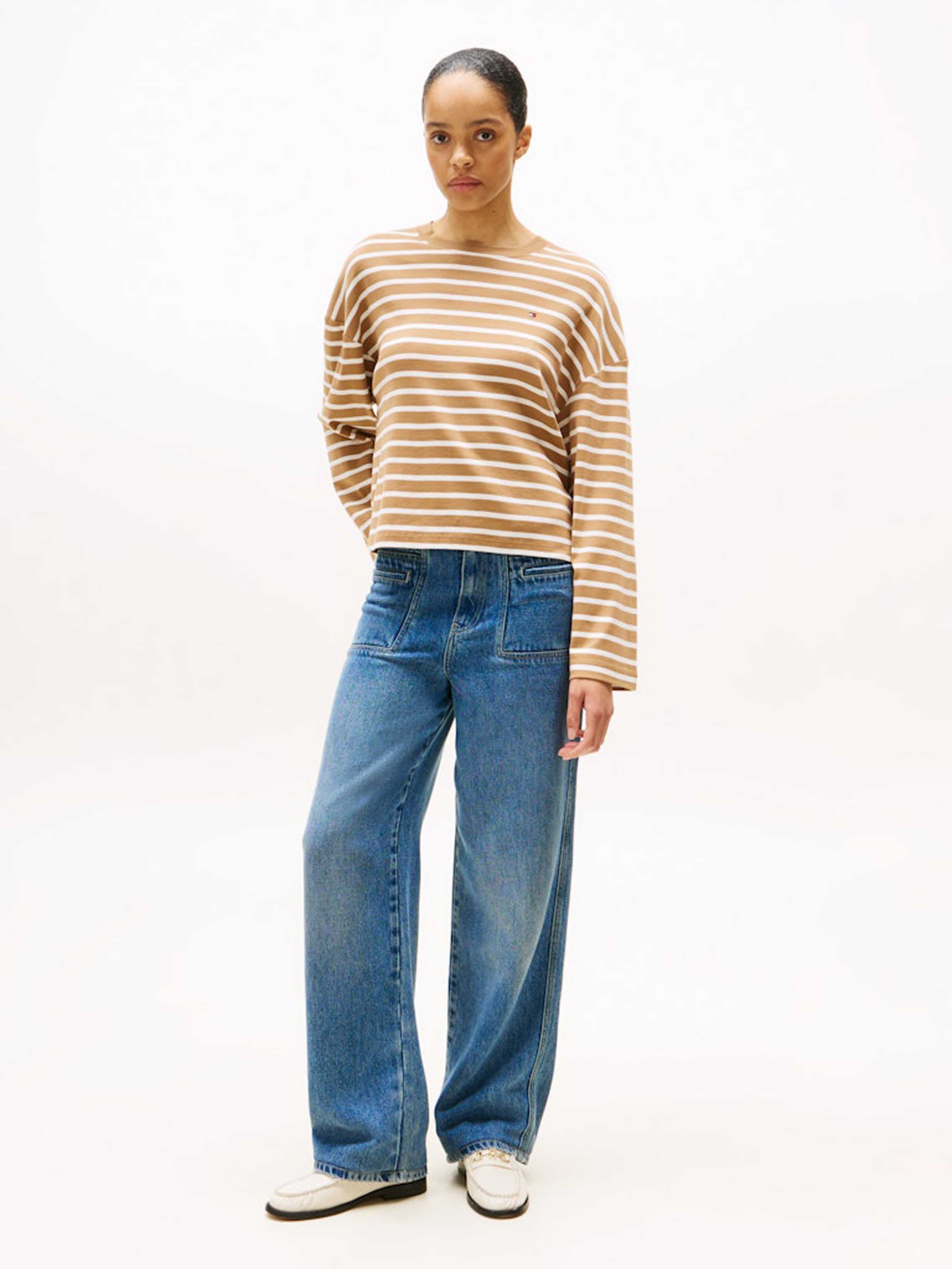 Tommy Hilfiger - MODERN CODY LONGSLEEVE , XS , Hickory/ Ecru Stp , Style WW0WW45519