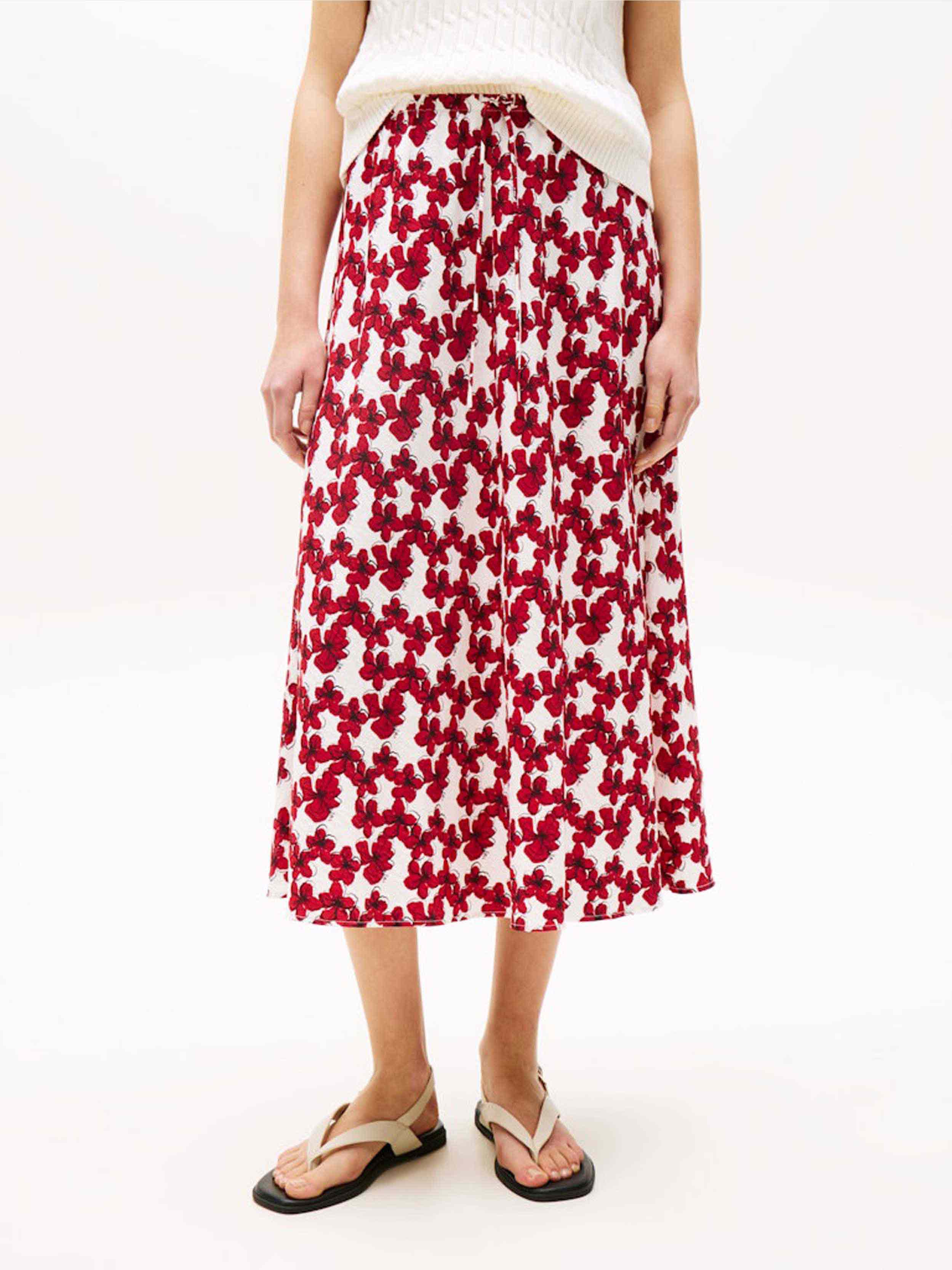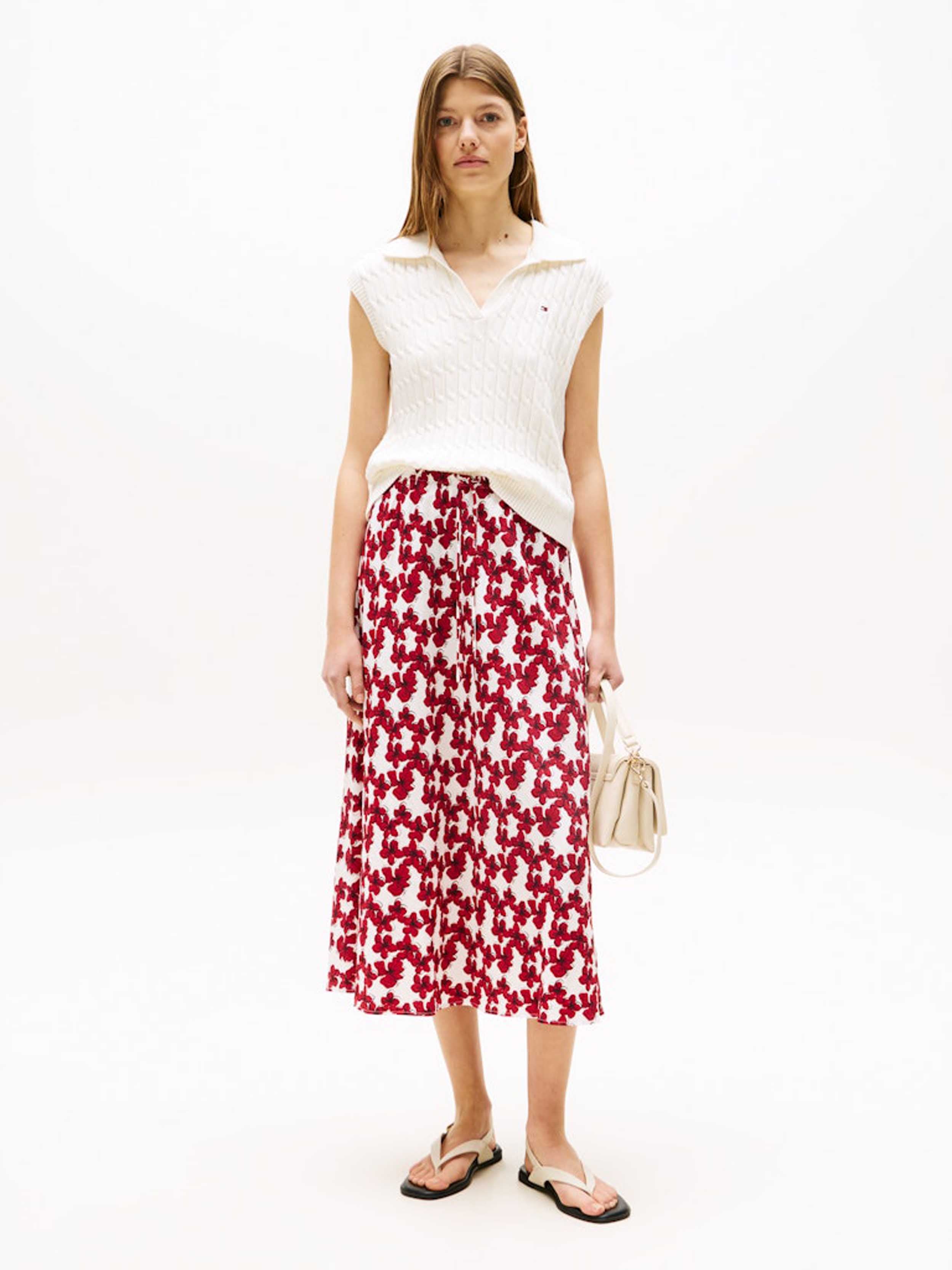 Tommy Hilfiger - TEXTURED MIDI BIAS SKIRT , 40 , Hibiscus Lines Med Red , Style WW0WW47175