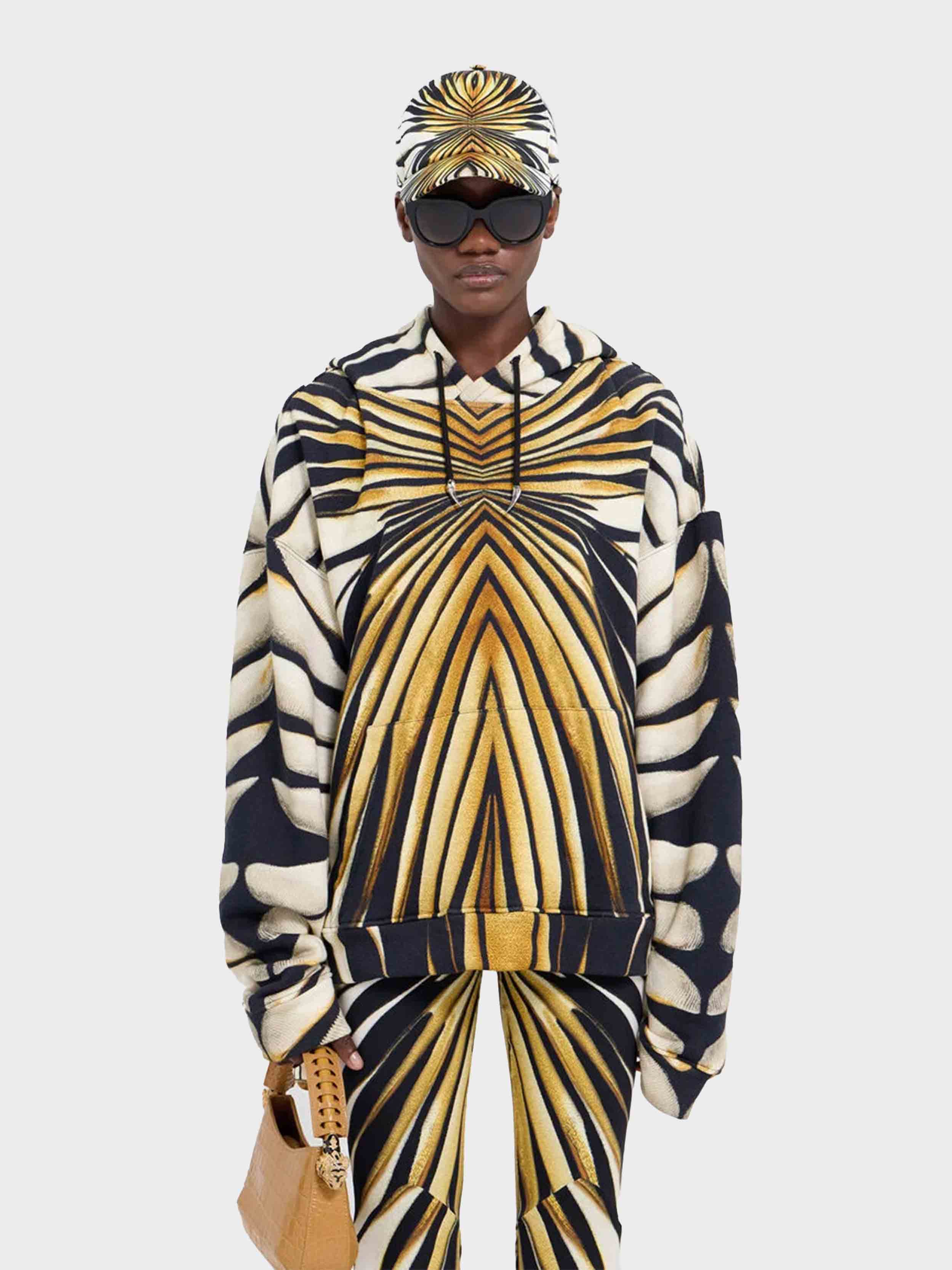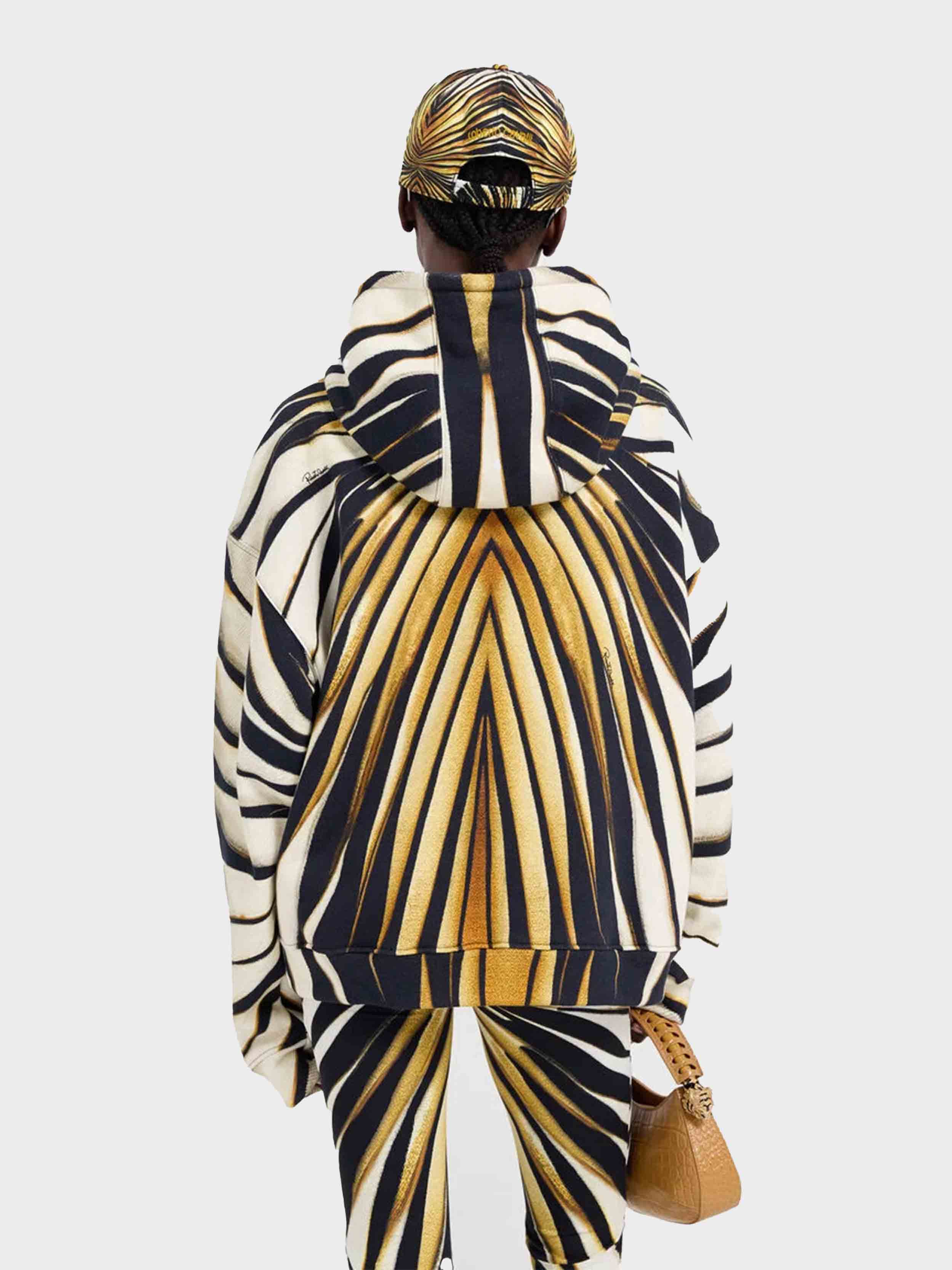 Roberto Cavalli - RAY OF GOLD COOL FIT HOODIE , M , BLACK IVORY , Style TRT69A