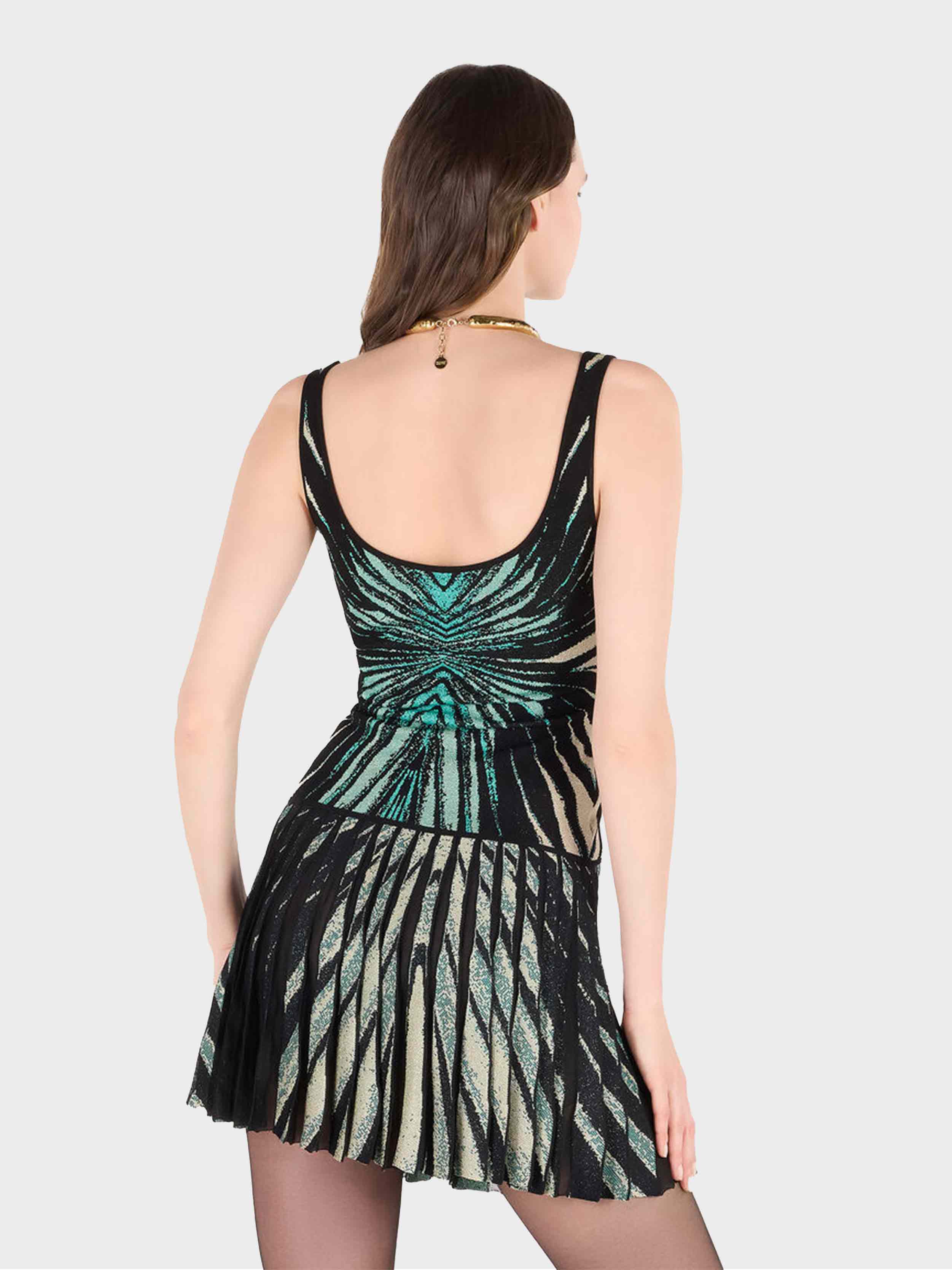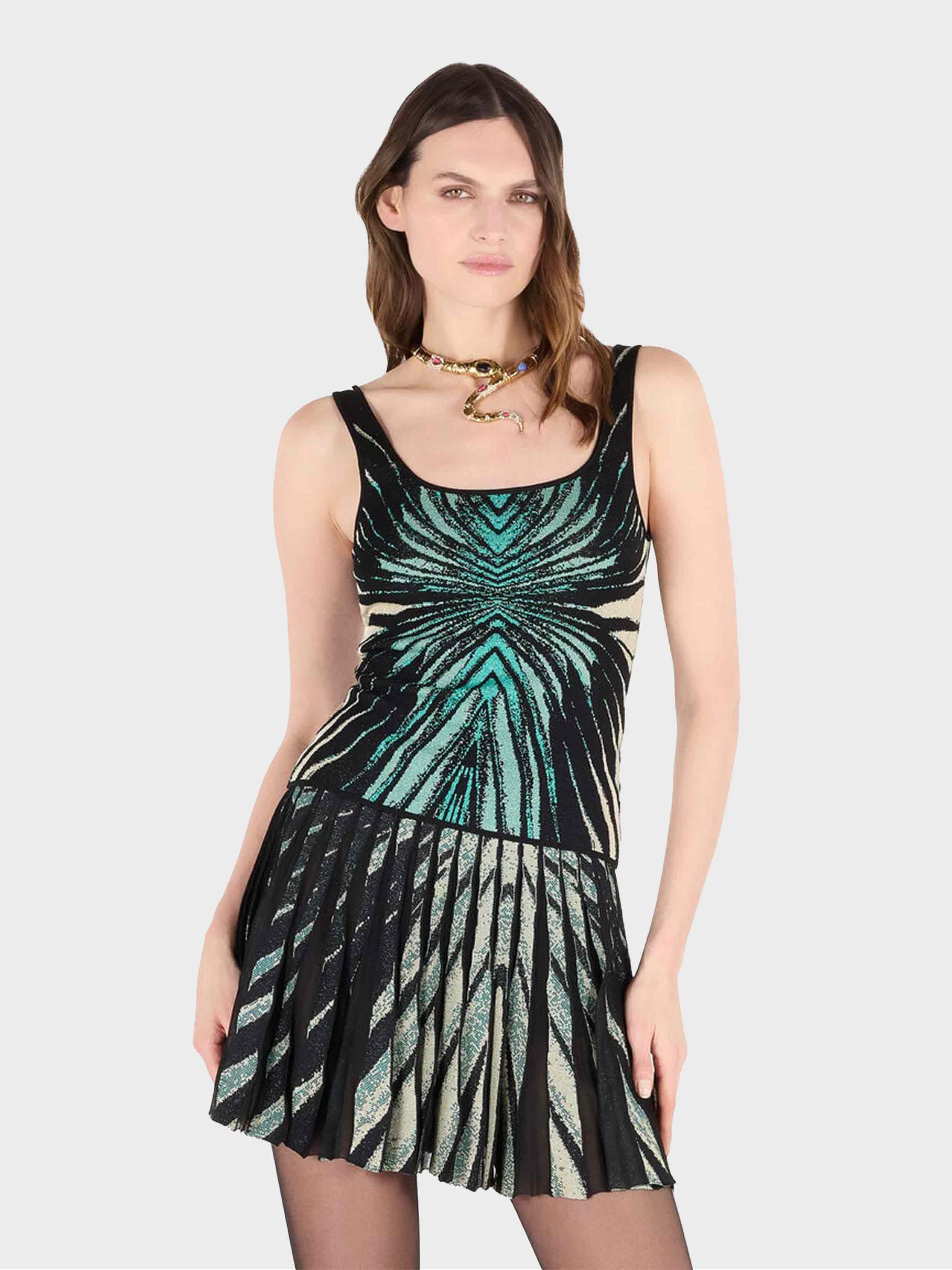 • Capture the radiant essence of the sea with this top featuring the Ray of Sea print. The jacquard design creates a dynamic visual effect, with luminous reflections dancing on the fitted silhouette. The square neckline adds a modern and sophisticated touch, perfect for elevating any look. The model is 178 cm tall and wears size S / 40 IT.