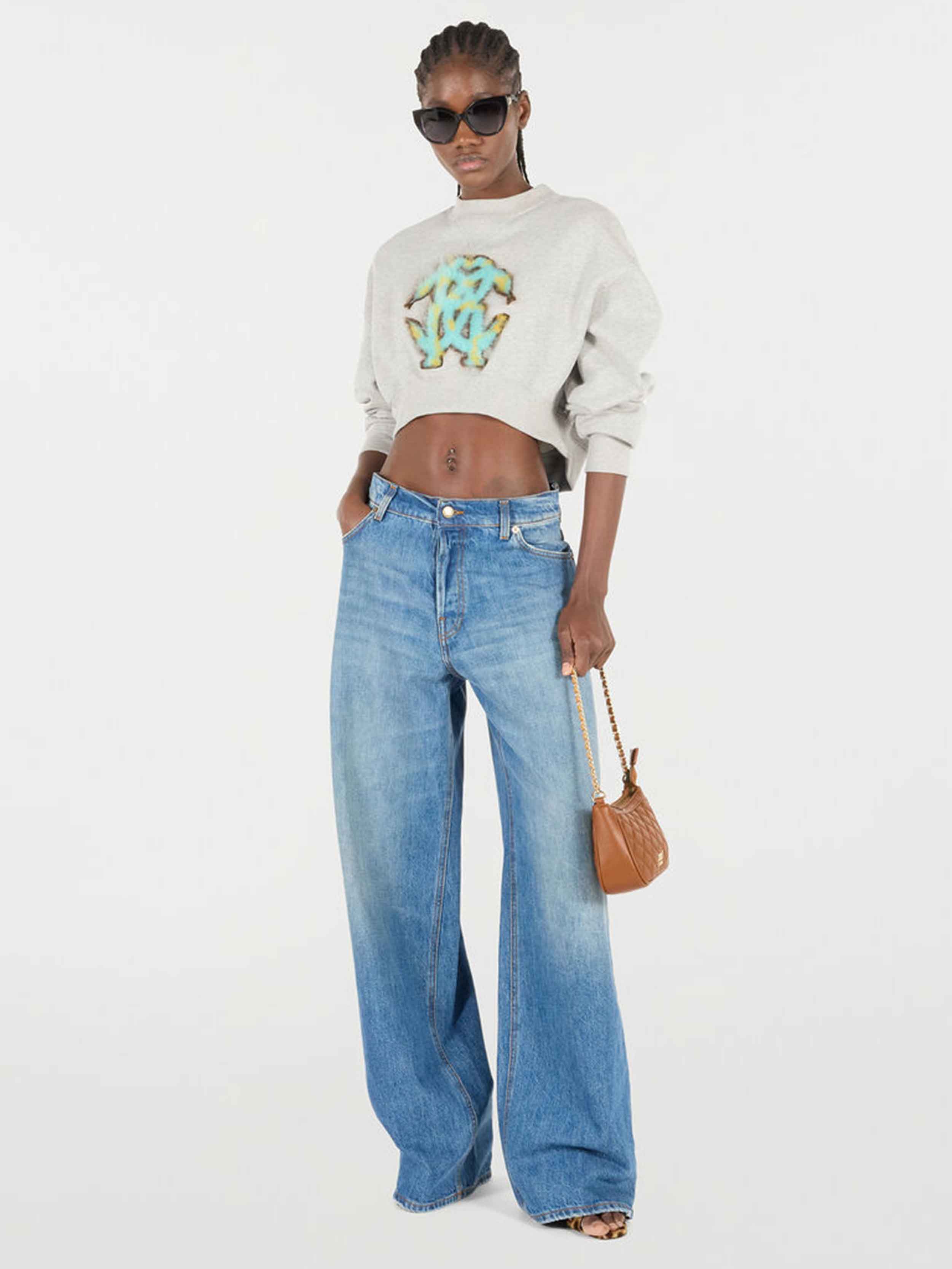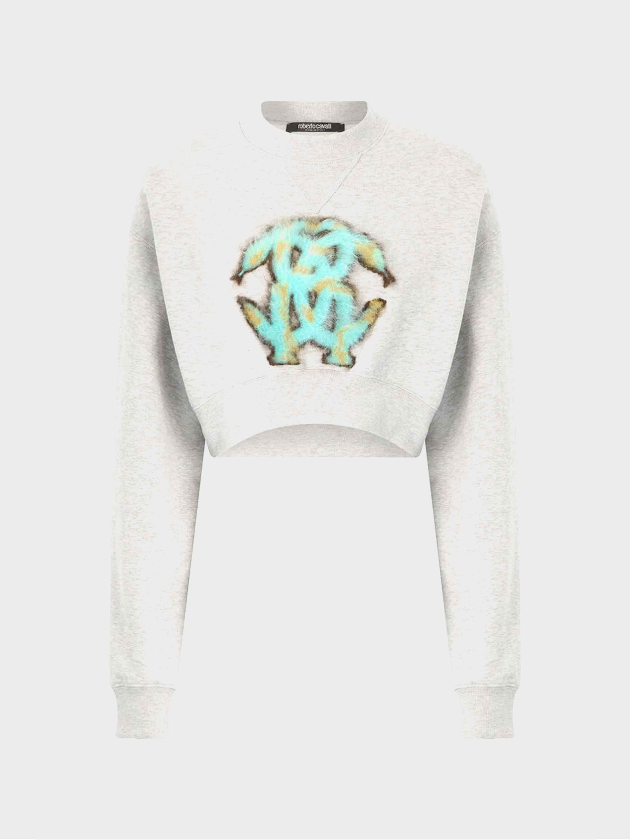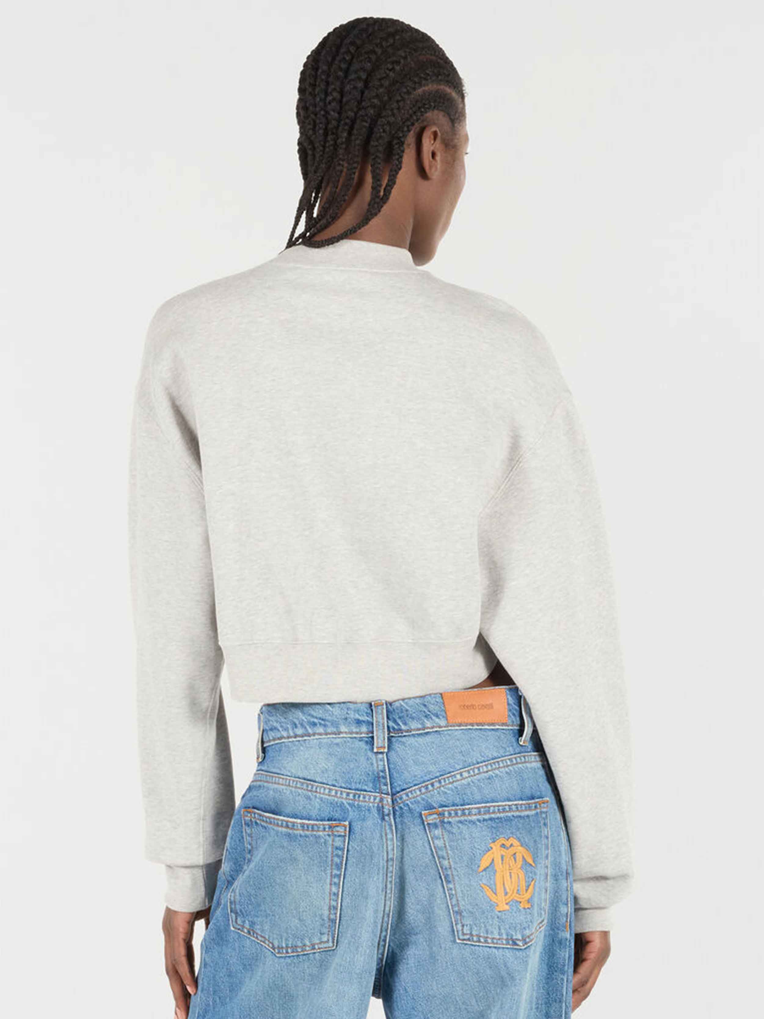 Roberto Cavalli - Women's Cropped Sweatshirt With Mirror Snake Monogram