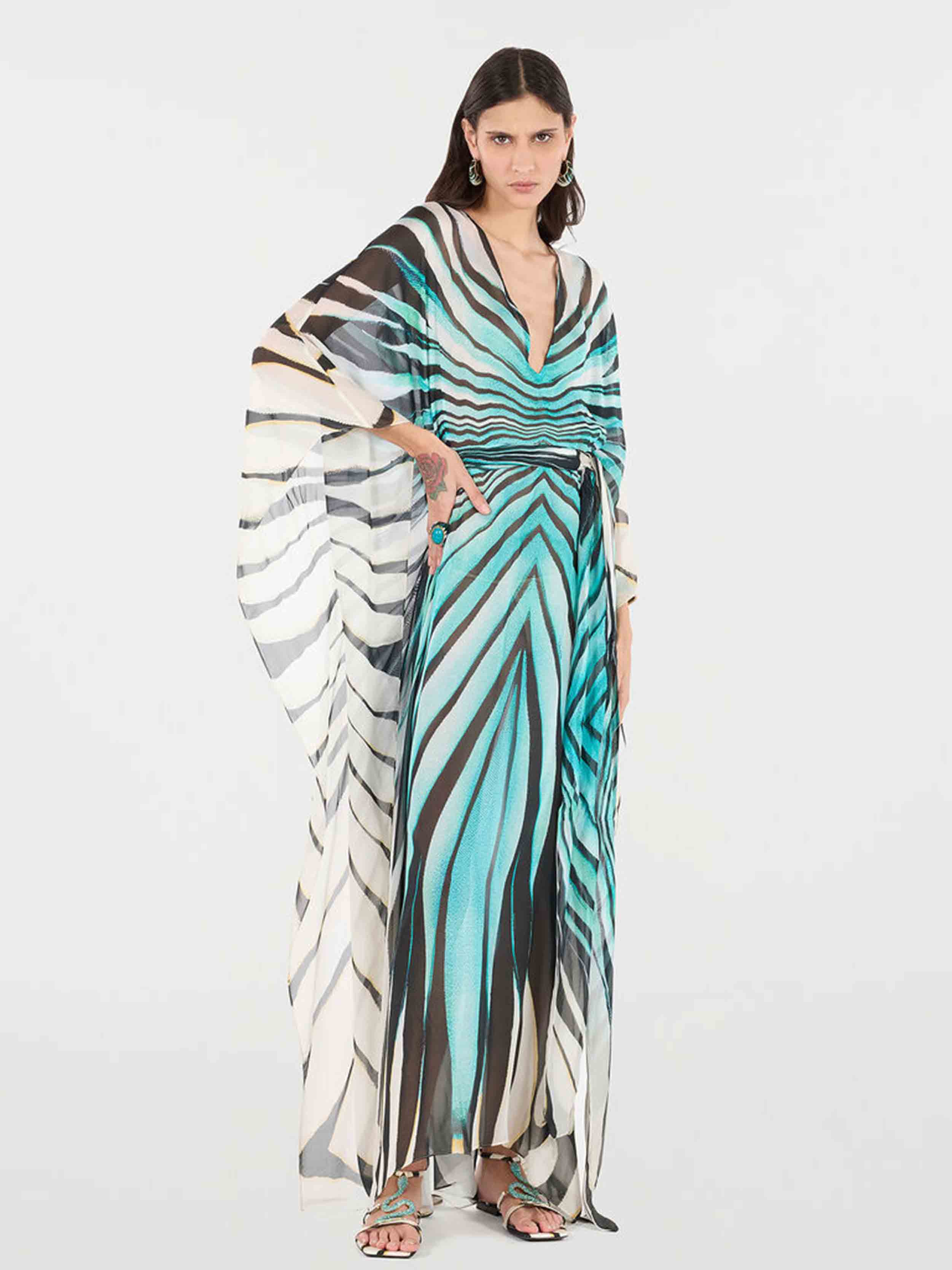 • •Long kaftan featuring the Ray of Sea print