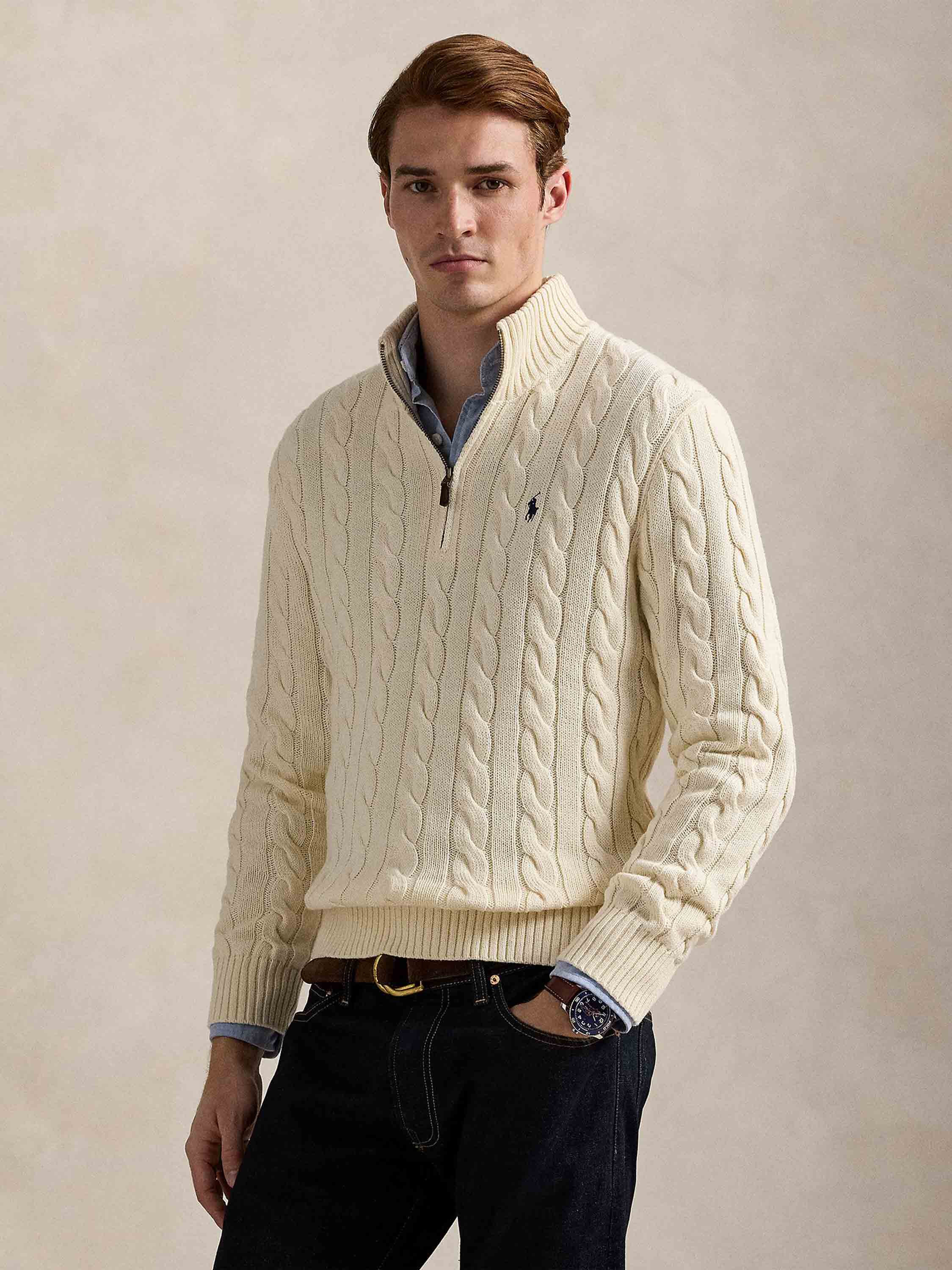 • Polo Ralph Lauren - Men's Cable-Knit Cotton Quarter-Zip Sweater