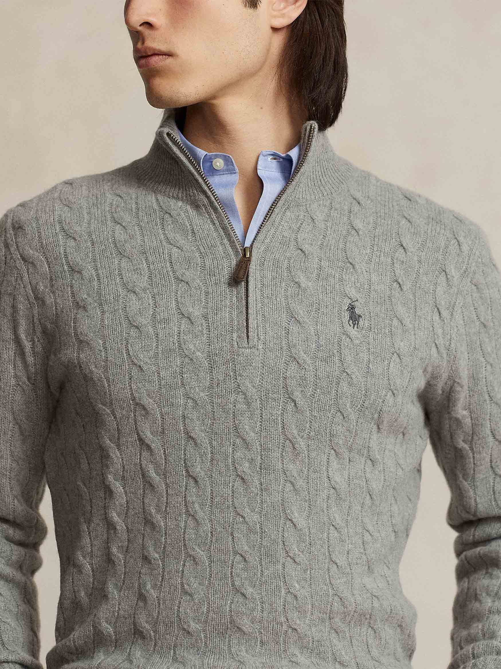 • This quarter-zip jumper combines a wool-and-cashmere blend from Italy with our iconic cable-knit design.