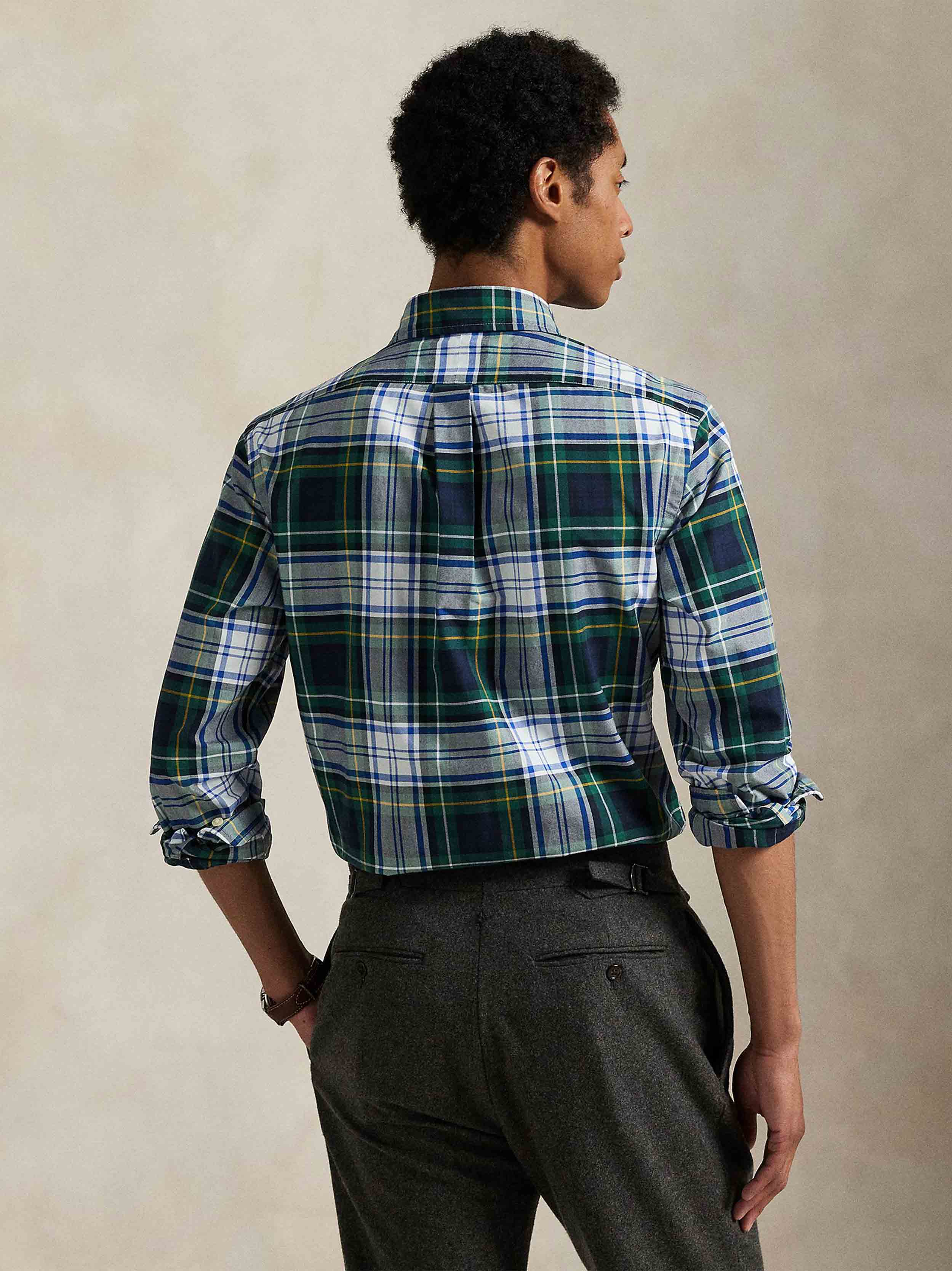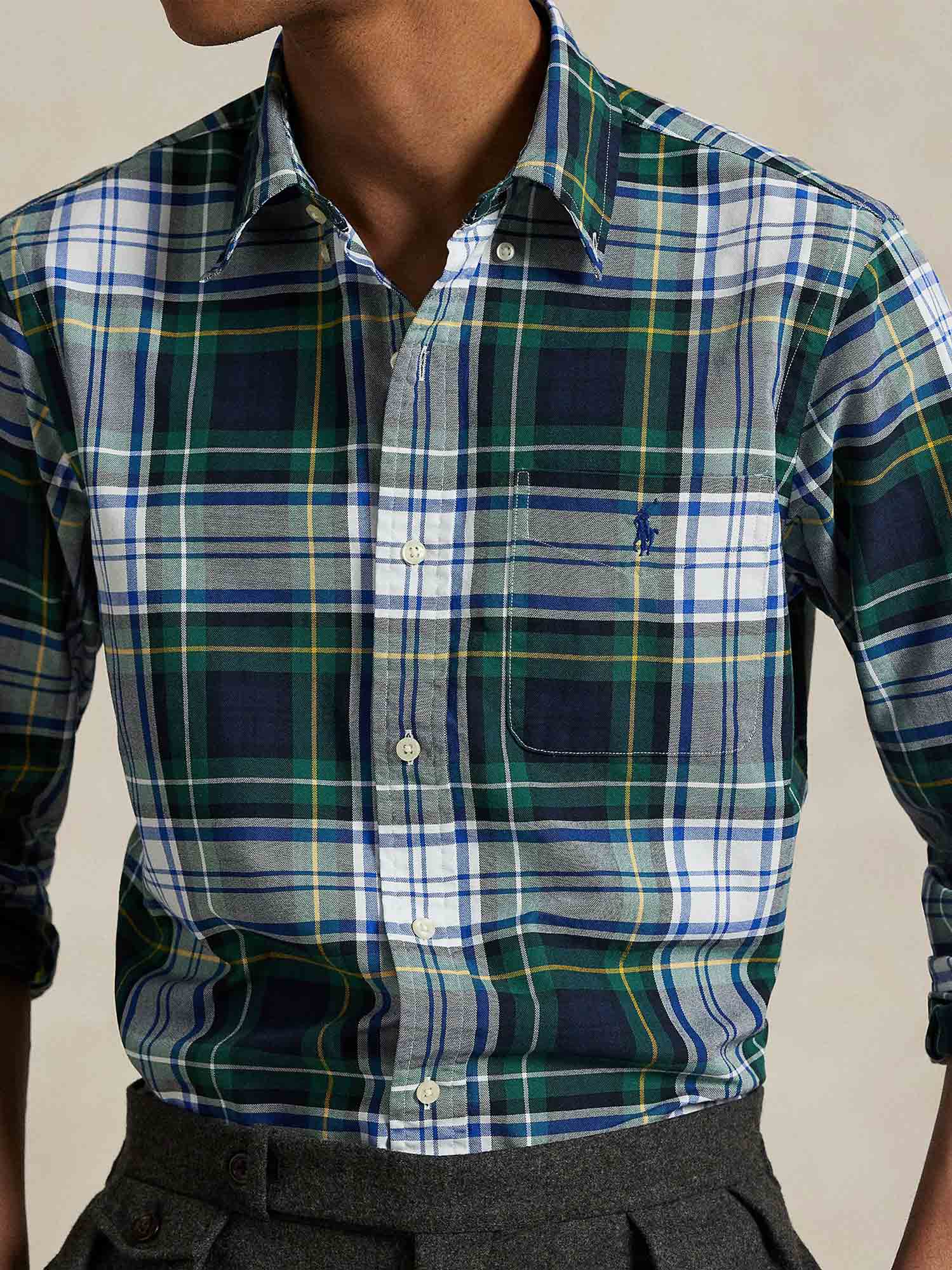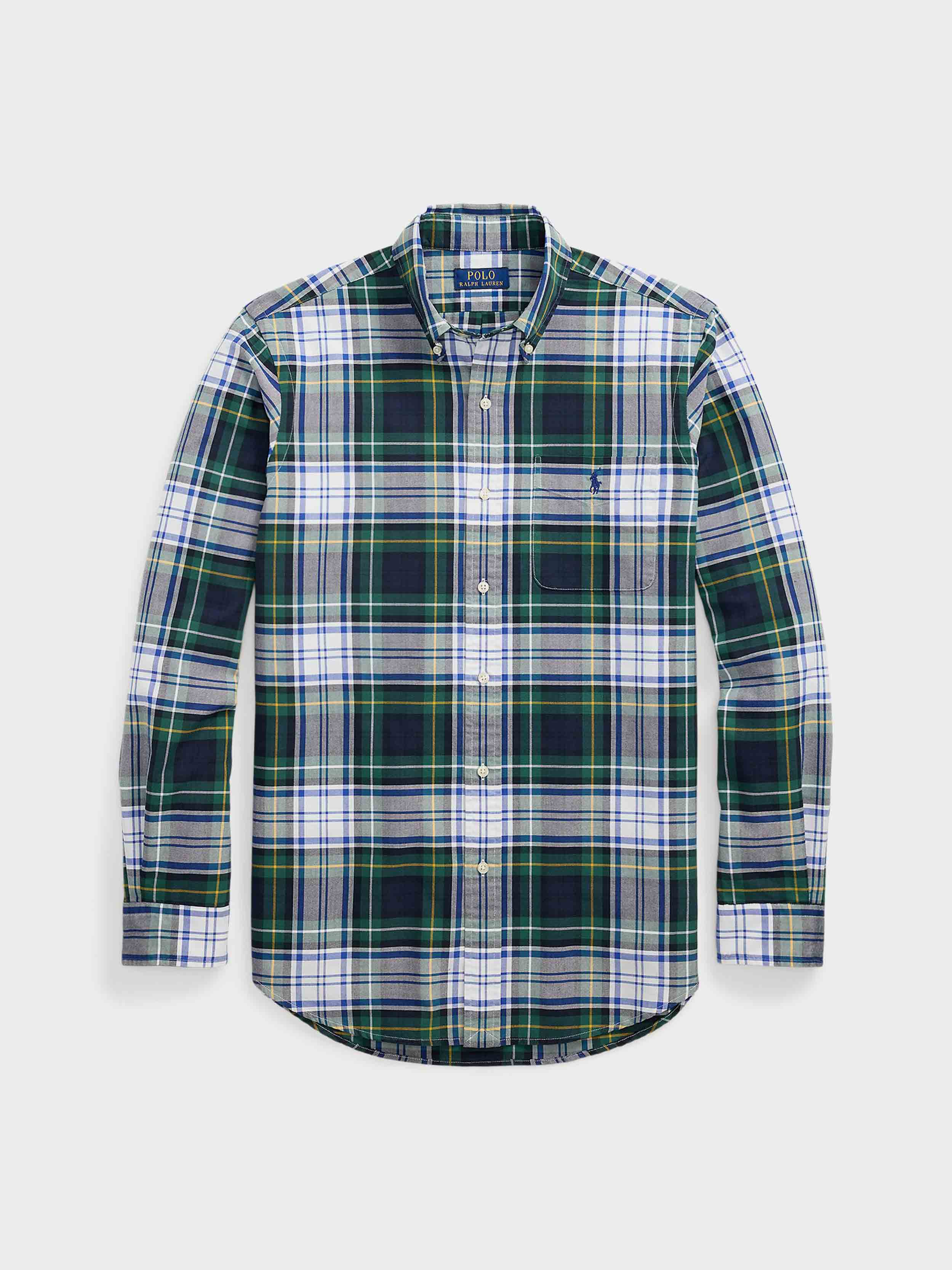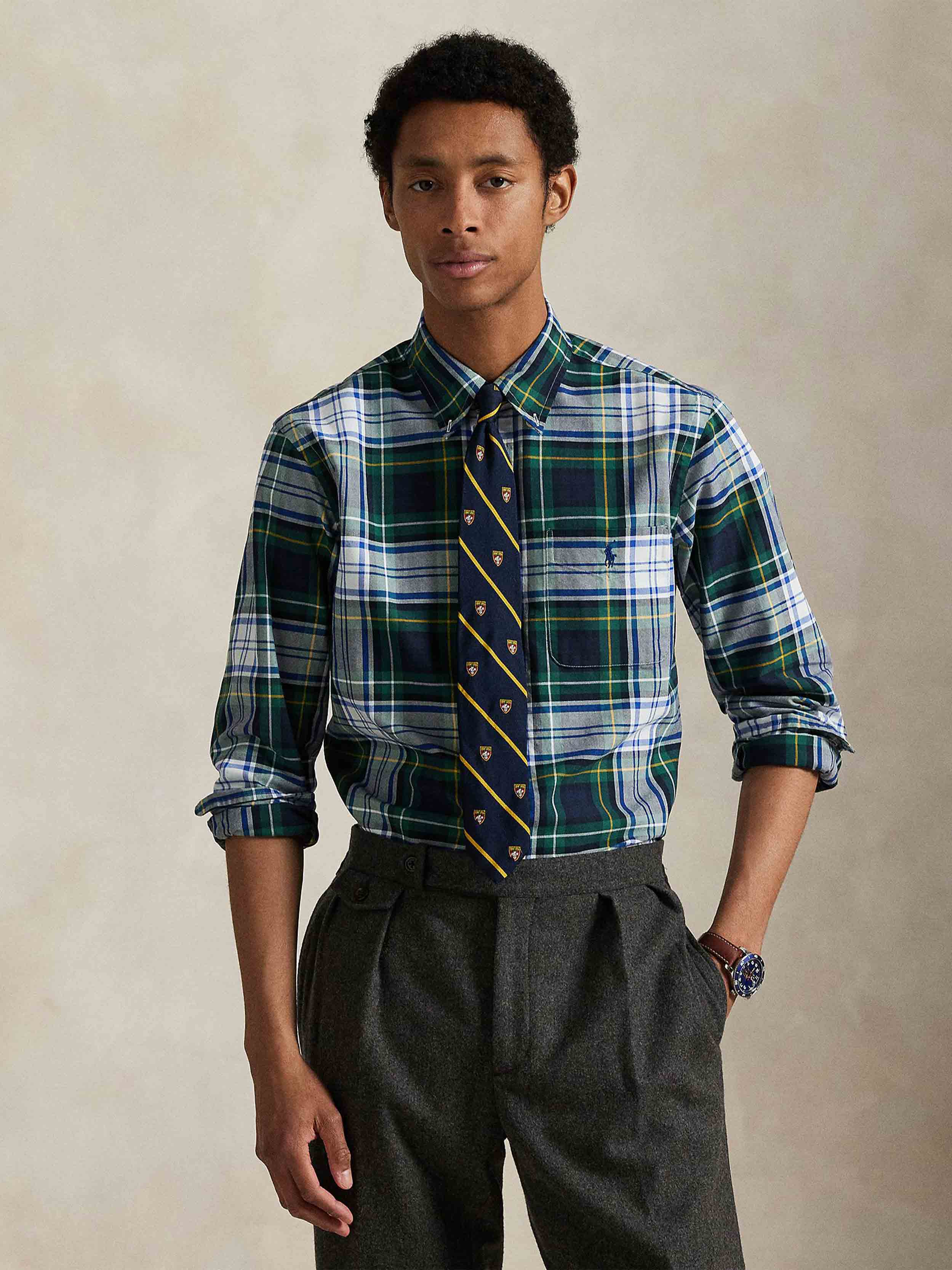 • The oxford shirt made its debut very early in Ralph Lauren’s designs, and since then, it has solidified its status as a pillar of the Polo look. Our fabric is developed with a secret wash, giving it instant character, ease and a heathered softness – what we refer to as "the perfect rumple". The formula is so unique that it's been kept in a safe for more than three decades. Today, Mr Lauren continues to create countless variations of his iconic shirt, including this plaid version, which is finished with our signature embroidered Pony.