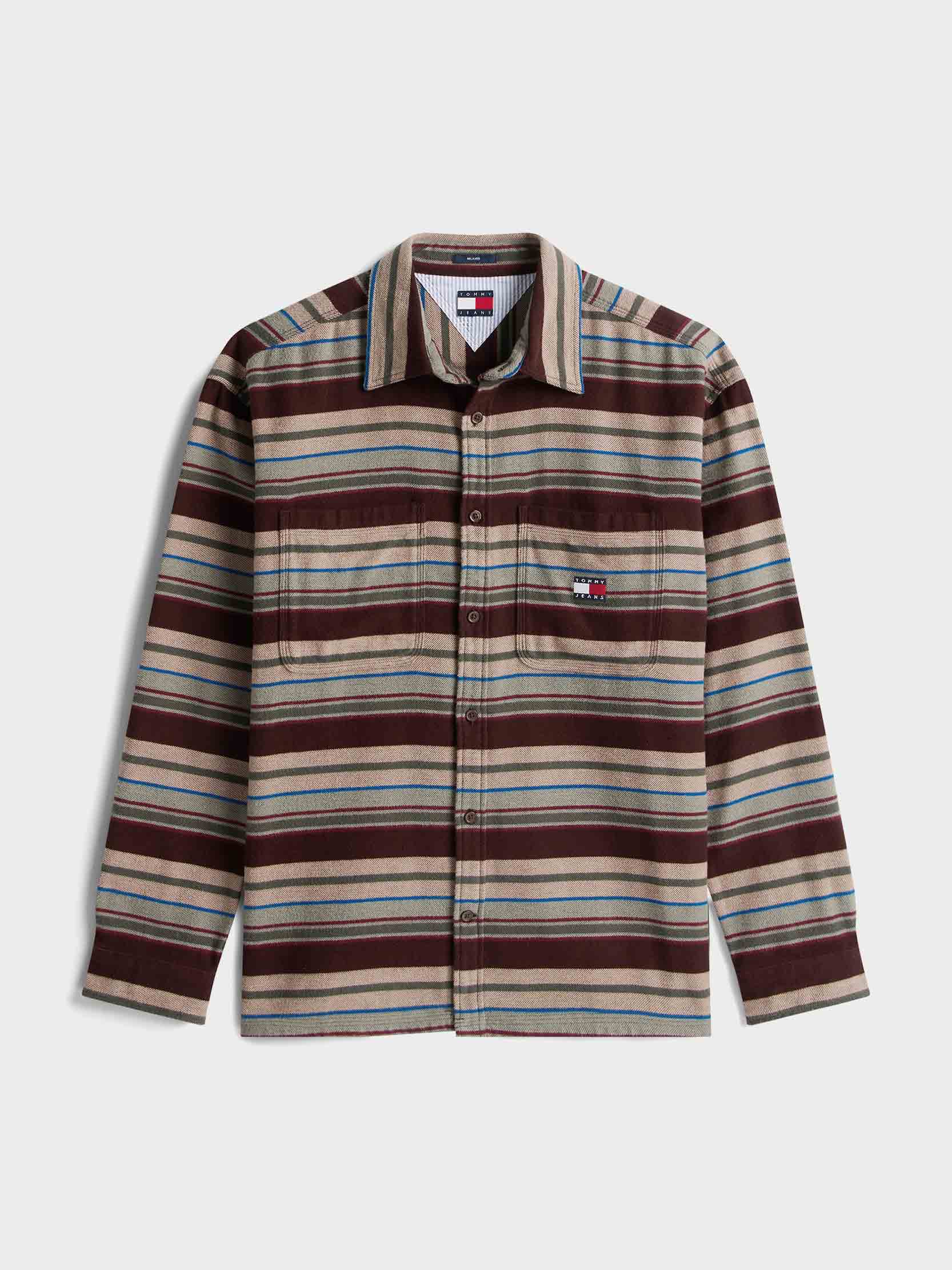 Tommy Hilfiger - TJM UTILITY FLANNEL OVERSHIRT , L , Rich Brown / Horizontal Stripes , Style DM0DM22020