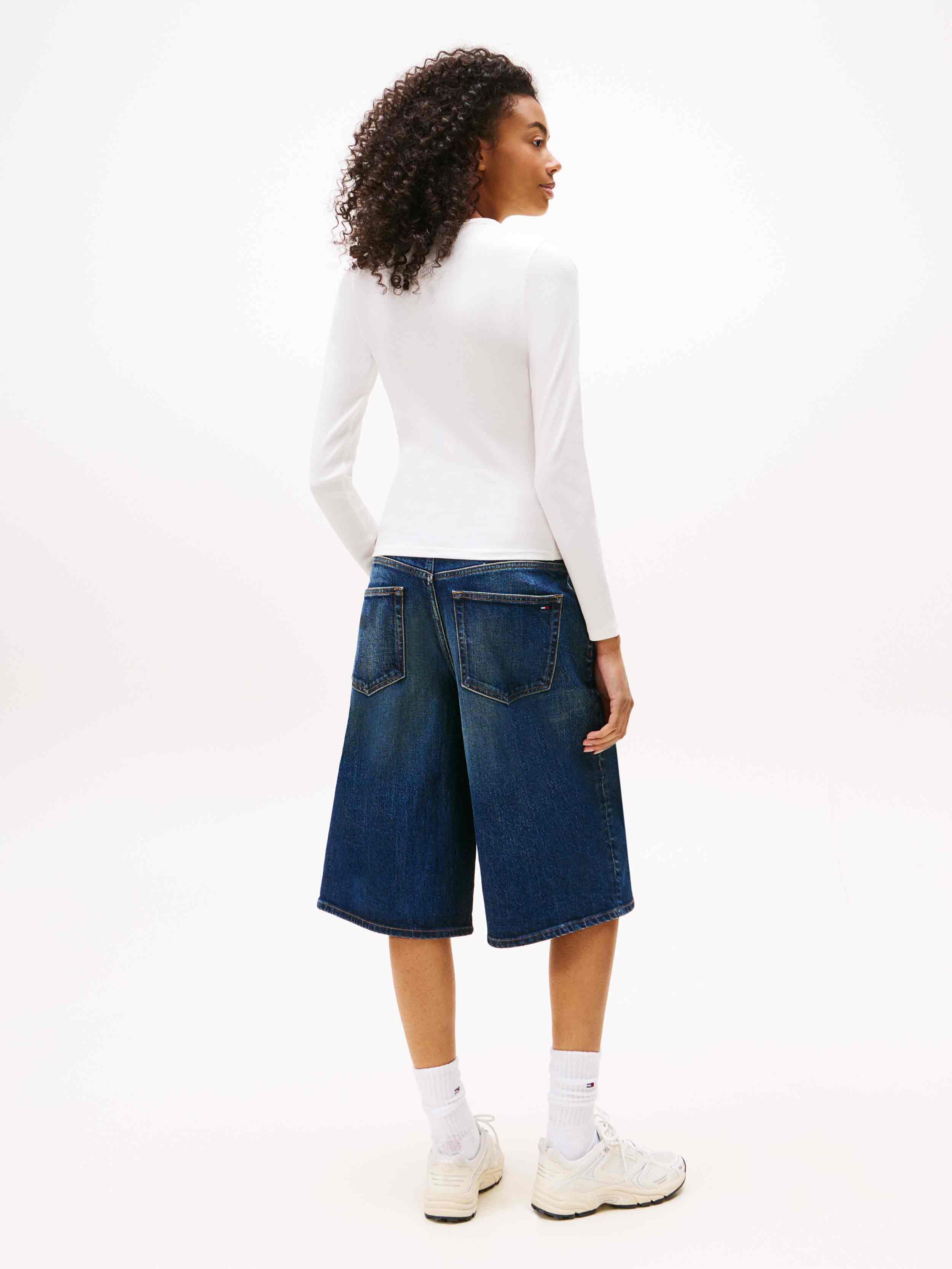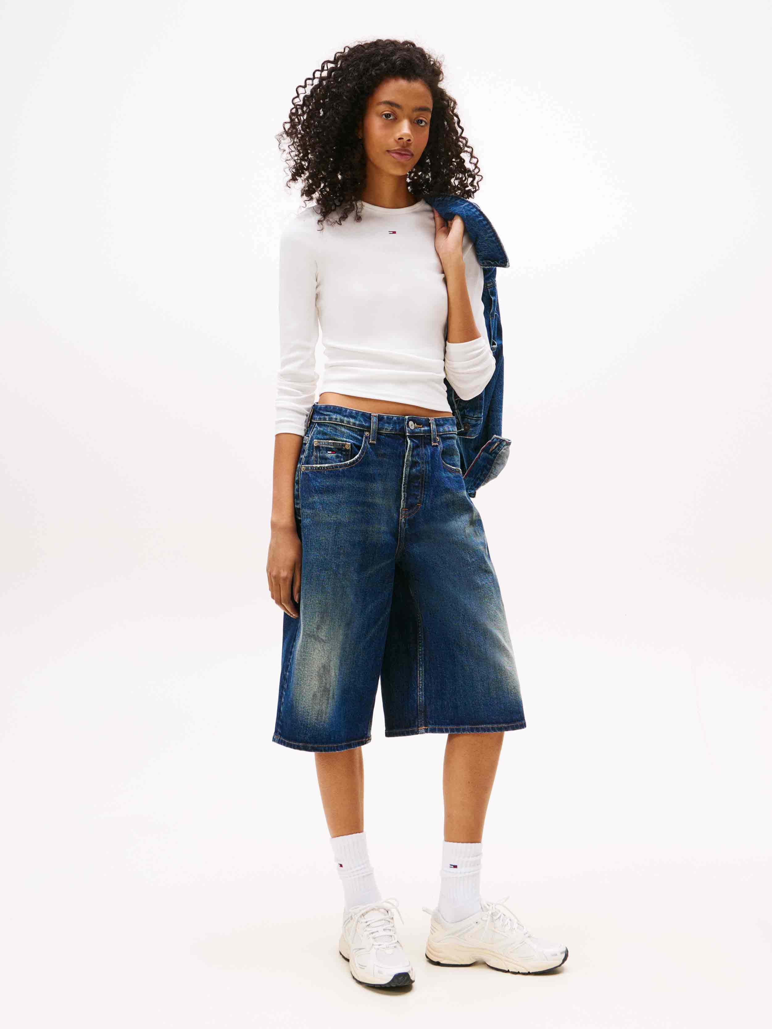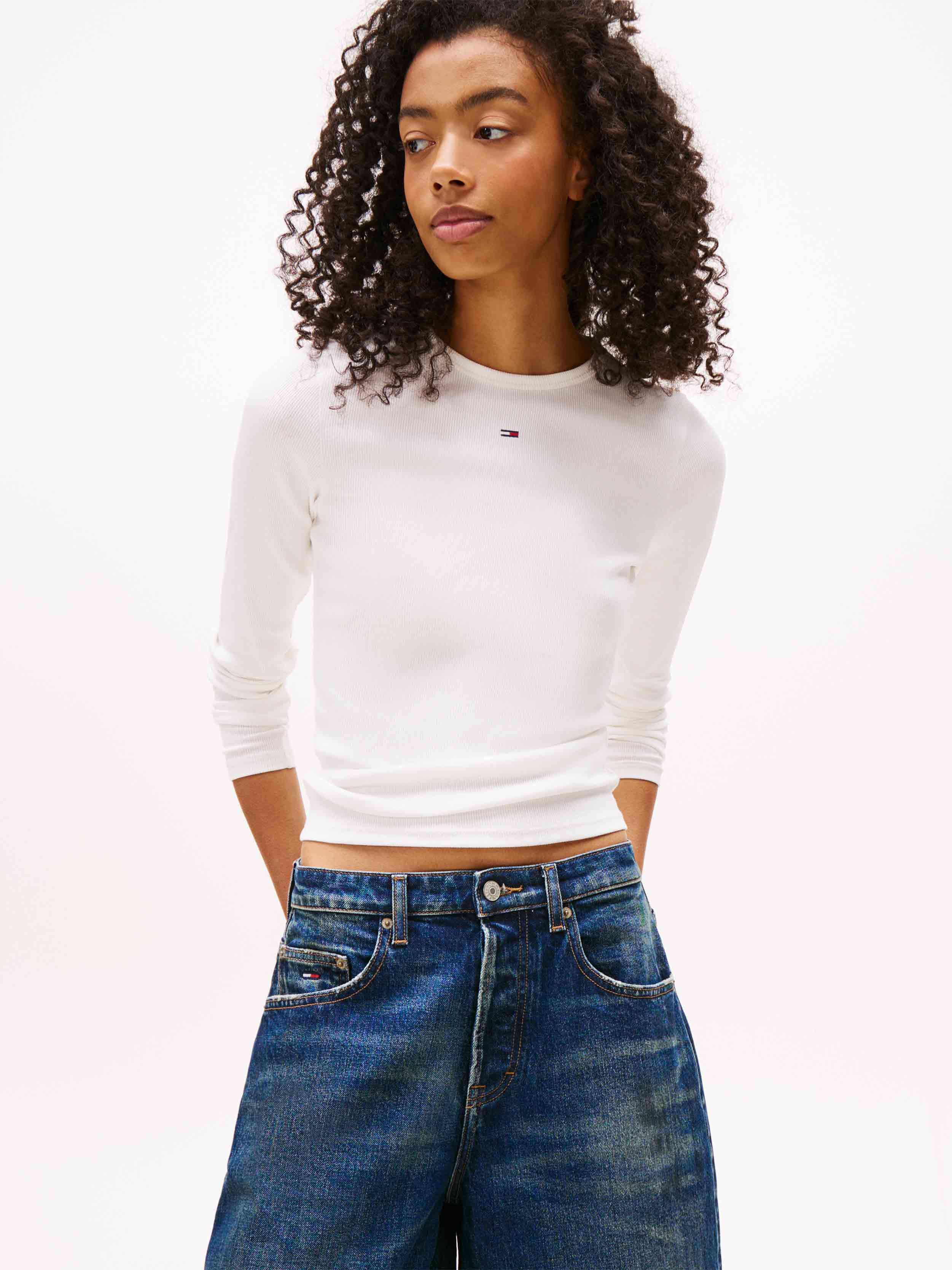 • The flattering slim fit gives this essential top timeless appeal, featuring an all-over rib knit and Tommy Jeans flag embroidery on the chest.