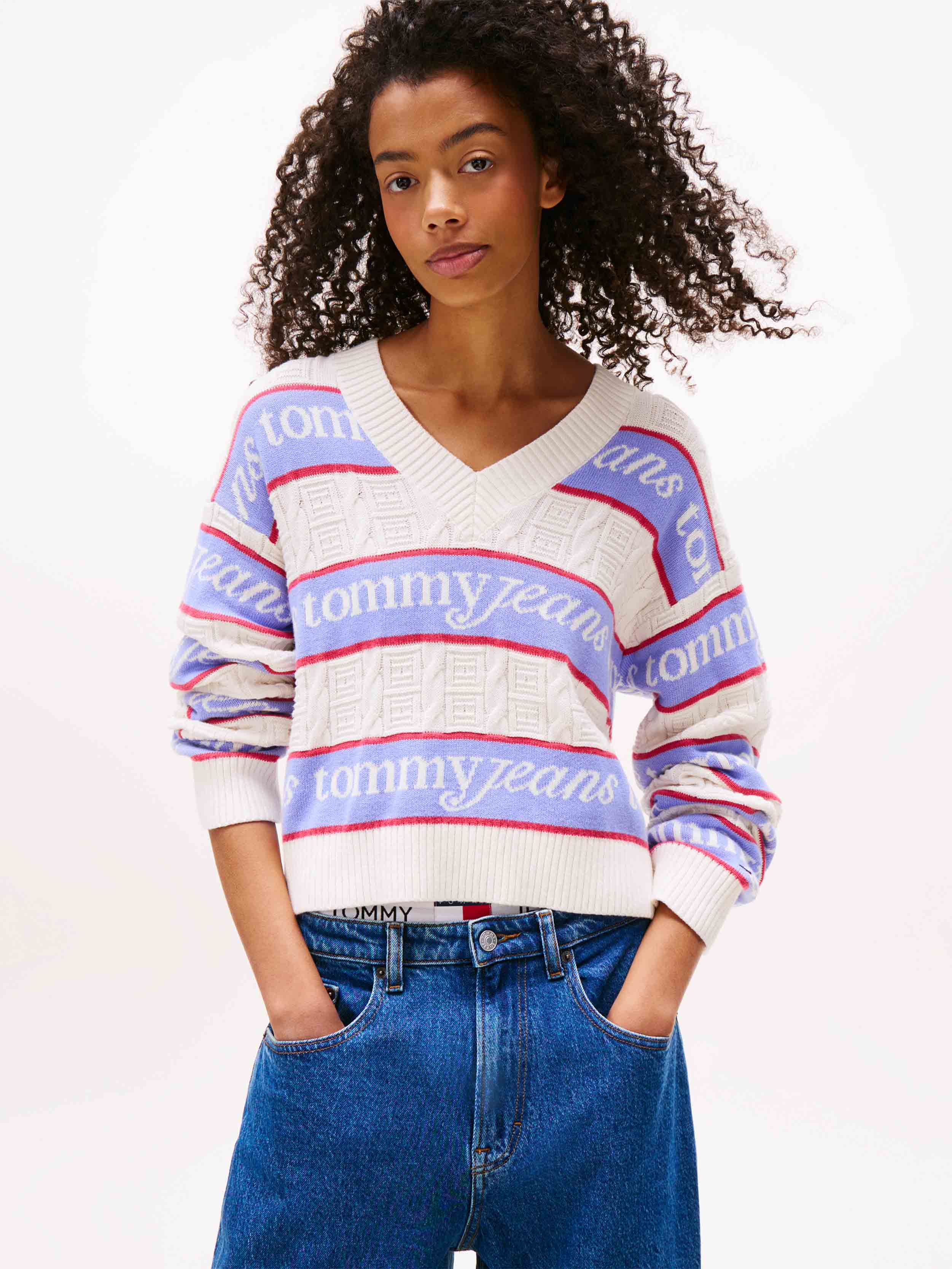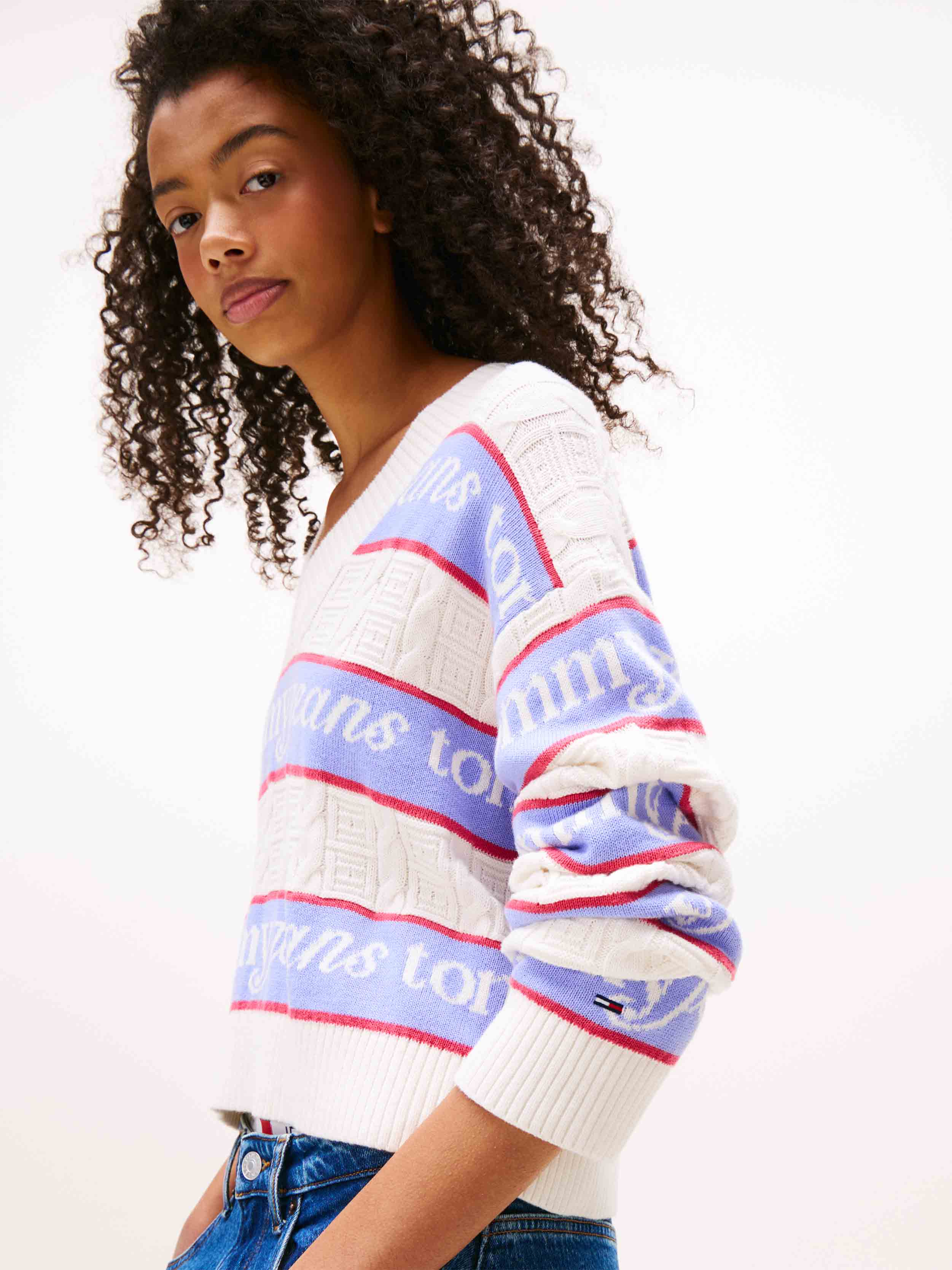 Tommy Hilfiger Jeans - Women's Stripe Logo Cotton Sweater