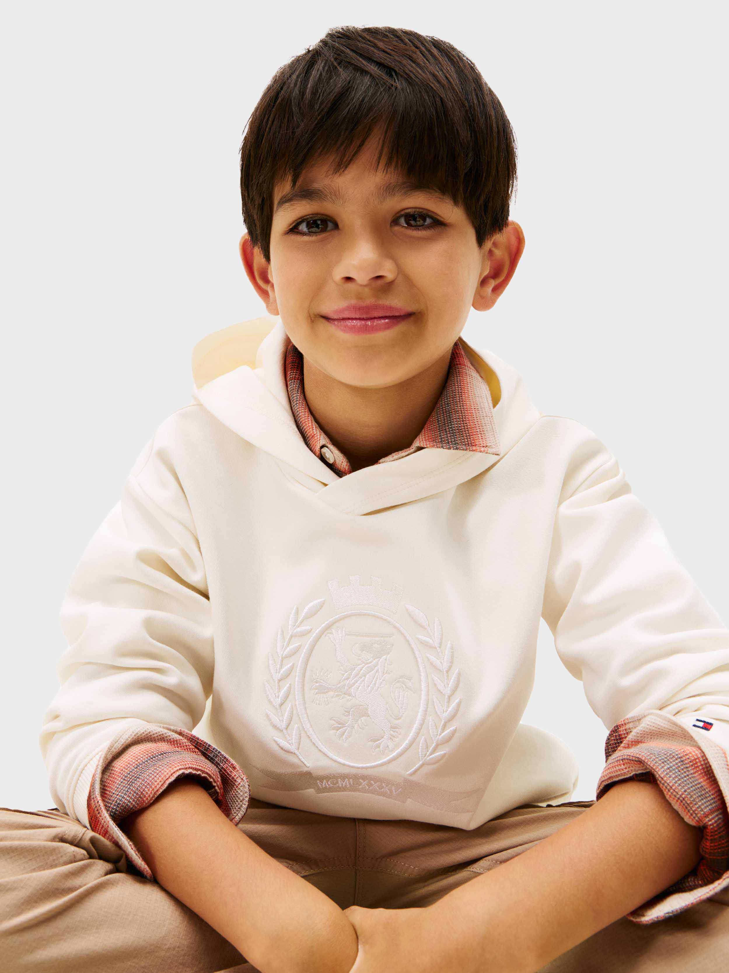 Tommy Hilfiger - TONAL CREST EMB GRAPHIC HOODIE , 6 , Ivory Silk , Style KB0KB09897
