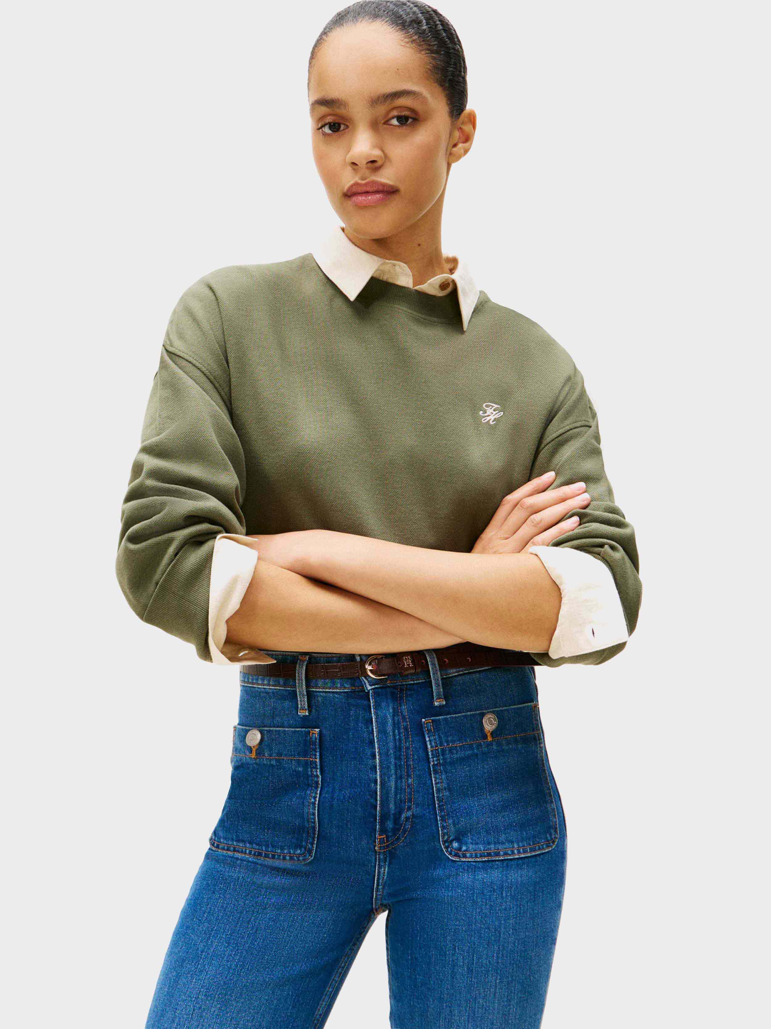 • Tommy Hilfiger - Women's Crewneck Sweatshirt with Embroidered TH Logo