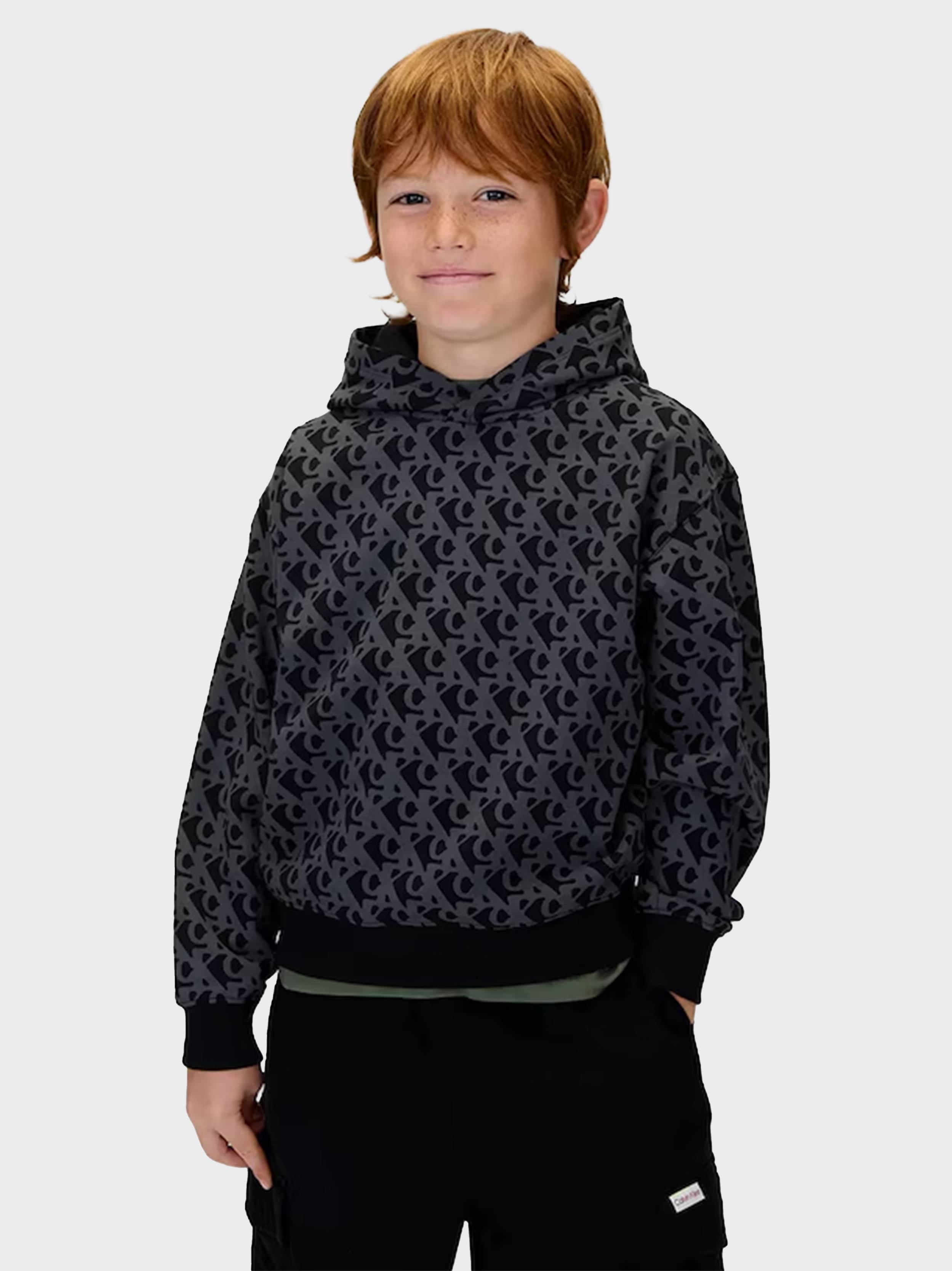 Calvin Klein - CK LOGO AOP HOODIE , 8 , CK Black , Style IB0IB02565