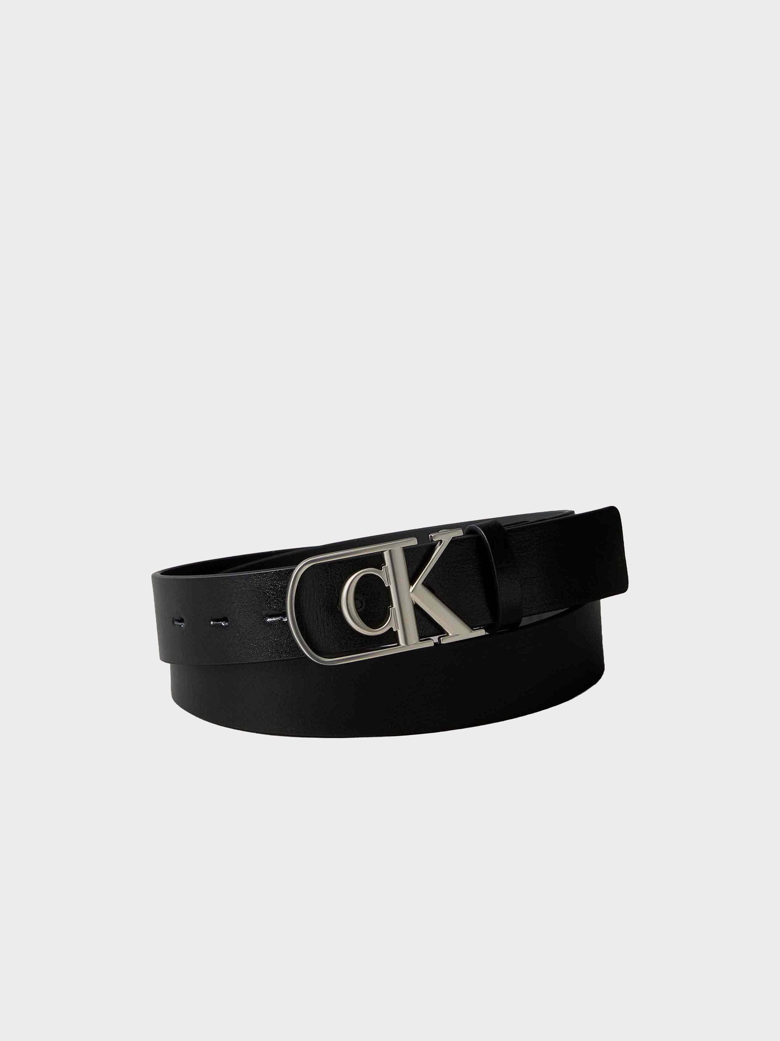 Calvin Klein - CURVE MONOGRAM BUCKLE 32MM ADJ , 105 , Black , Style LV04D7020G
