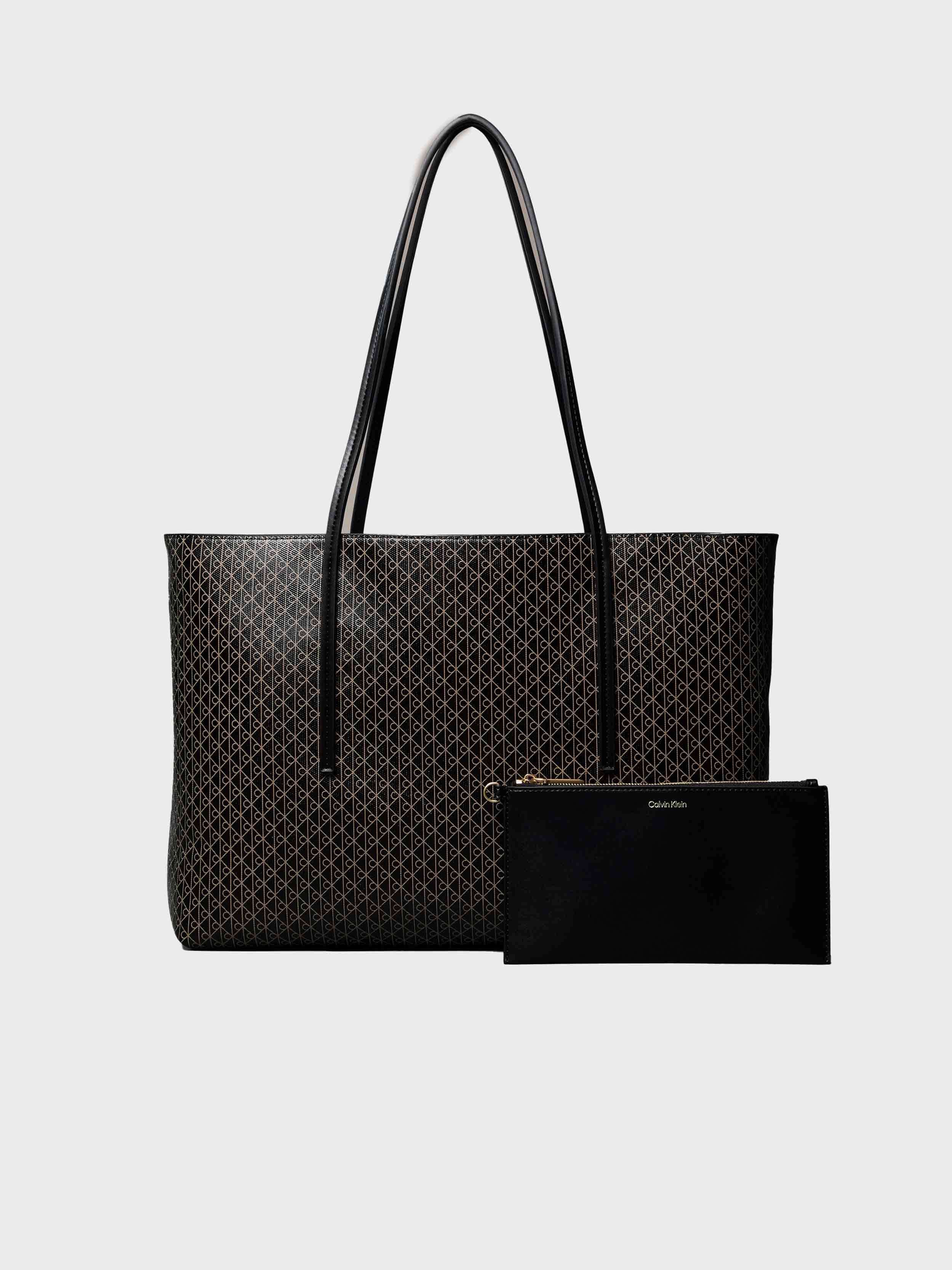 Calvin Klein - EMBLEM AOP TOTE W/ POUCH , OS , FUDGE AOP , Style LV04F3266G