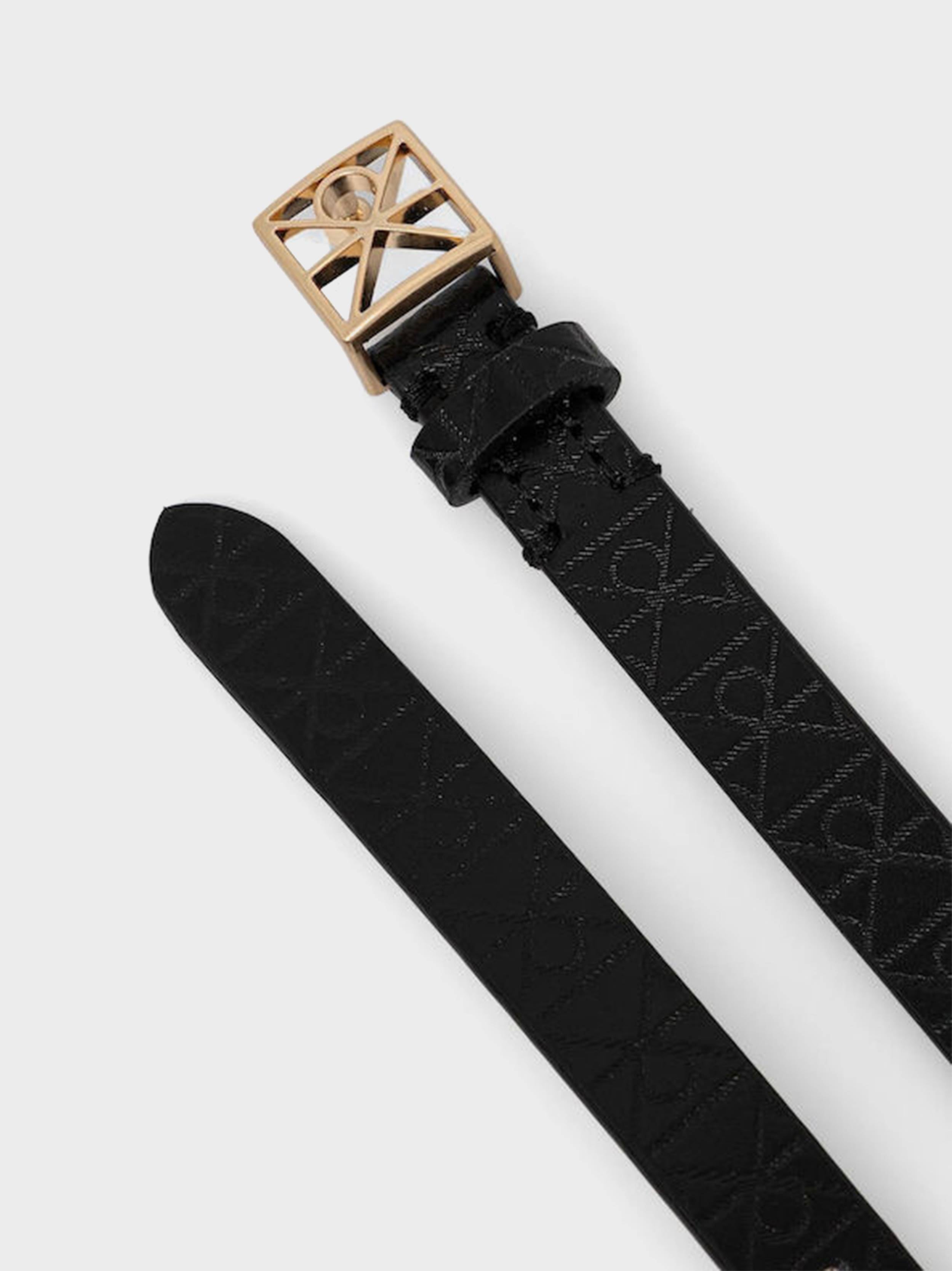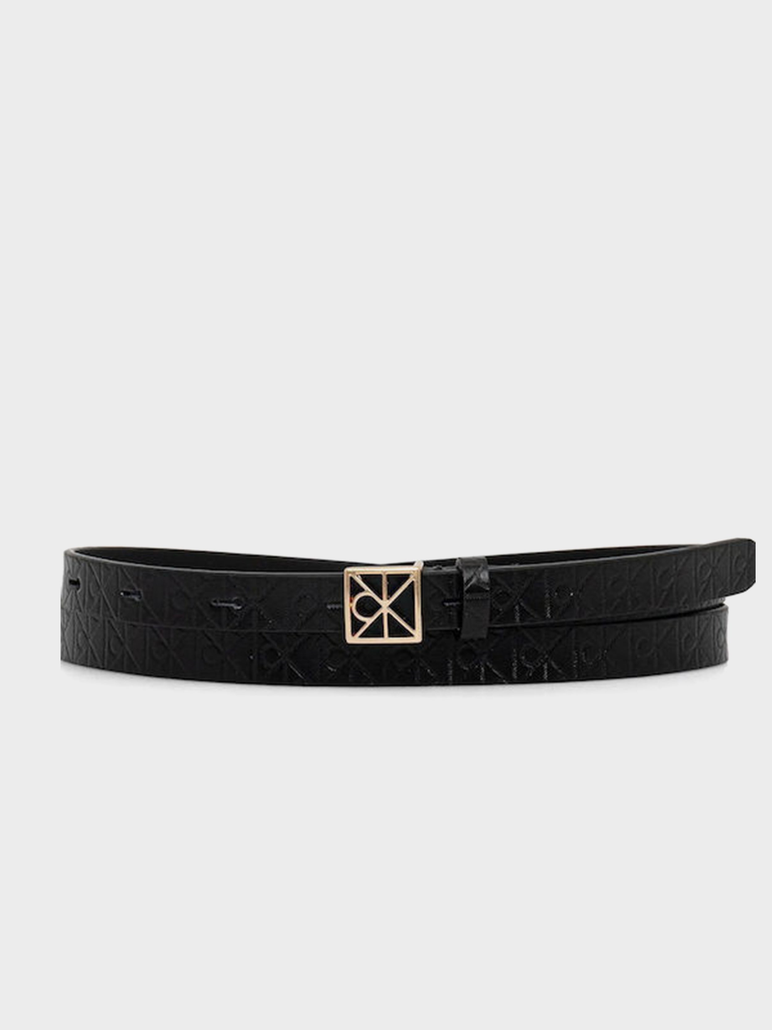Calvin Klein - EMBLEM BUCKLE AOP 15MM BELT , 90 , BLACK AOP/ ANTIQUE LIGHT GOLD , Style LV04F7048G