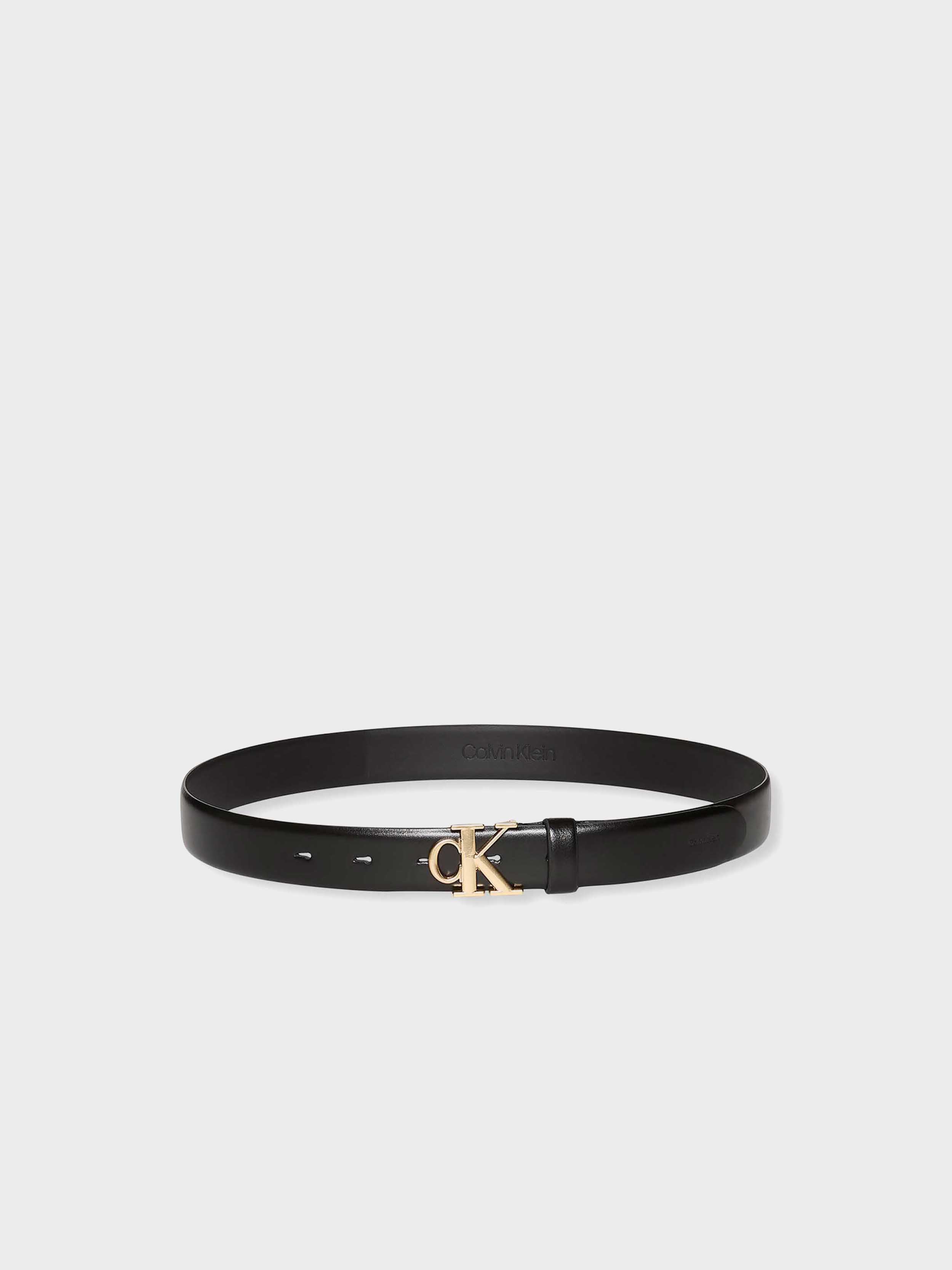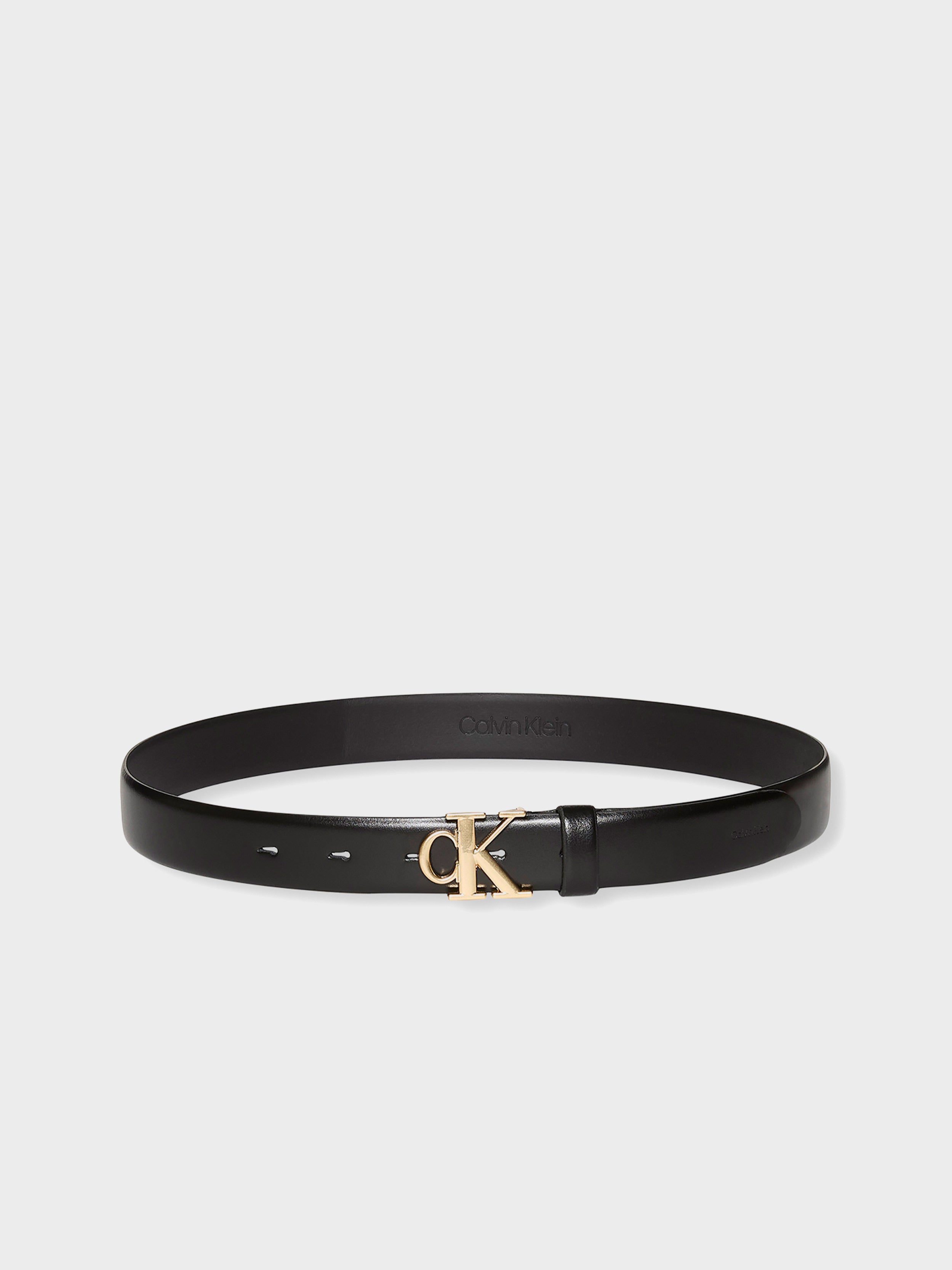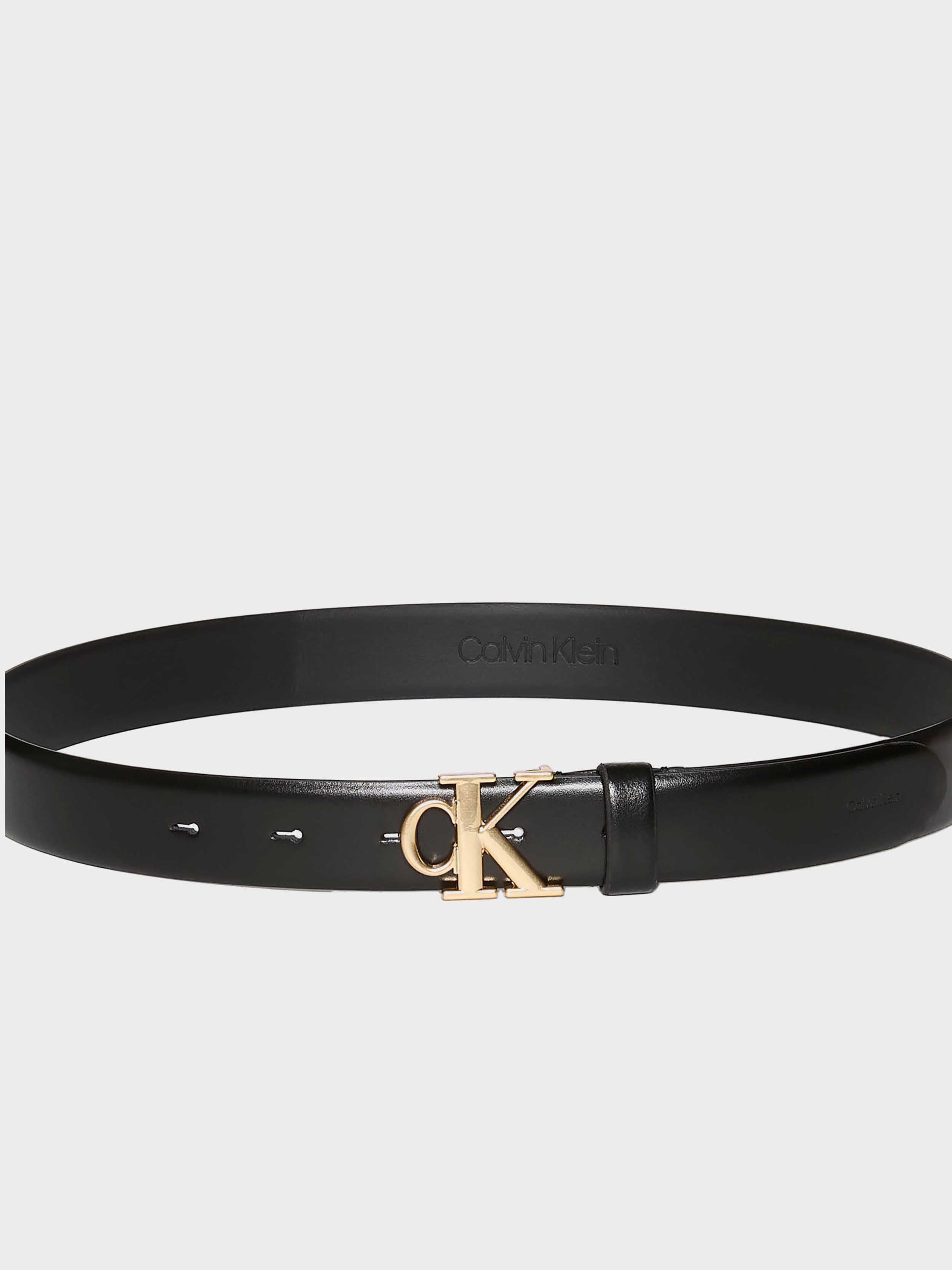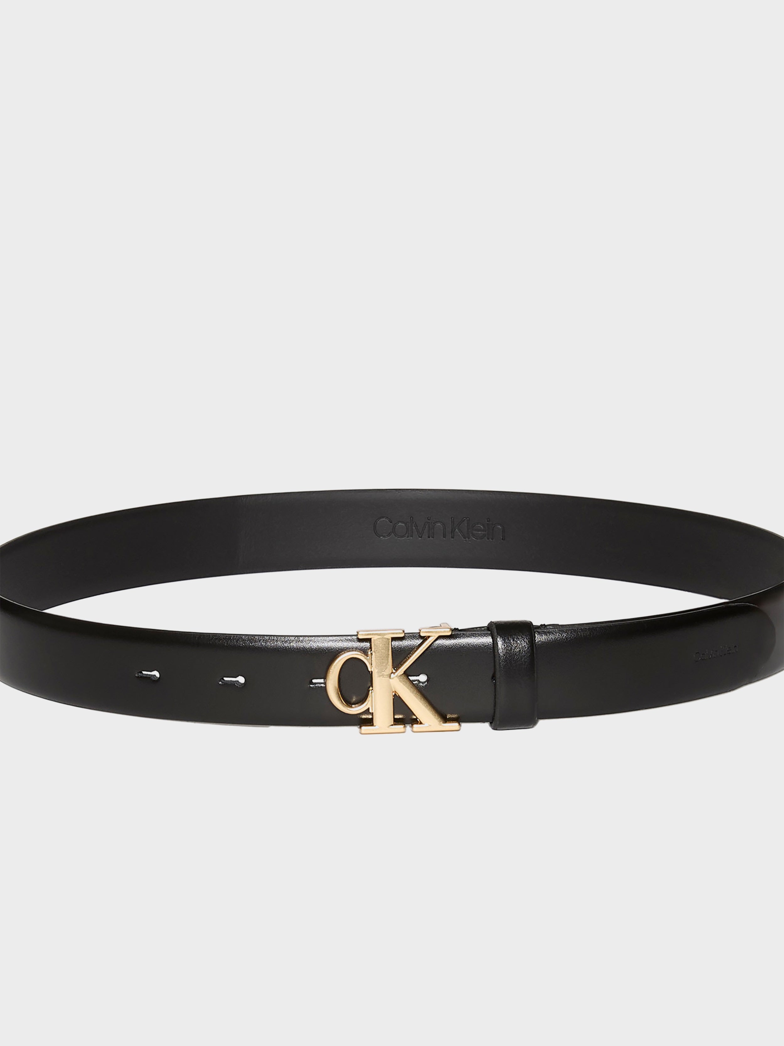 Calvin Klein - CK BUCKLE 30MM FIXED BELT , 100 , BLACK / ANTIQUE LIGHT GOLD , Style LV04F7054G