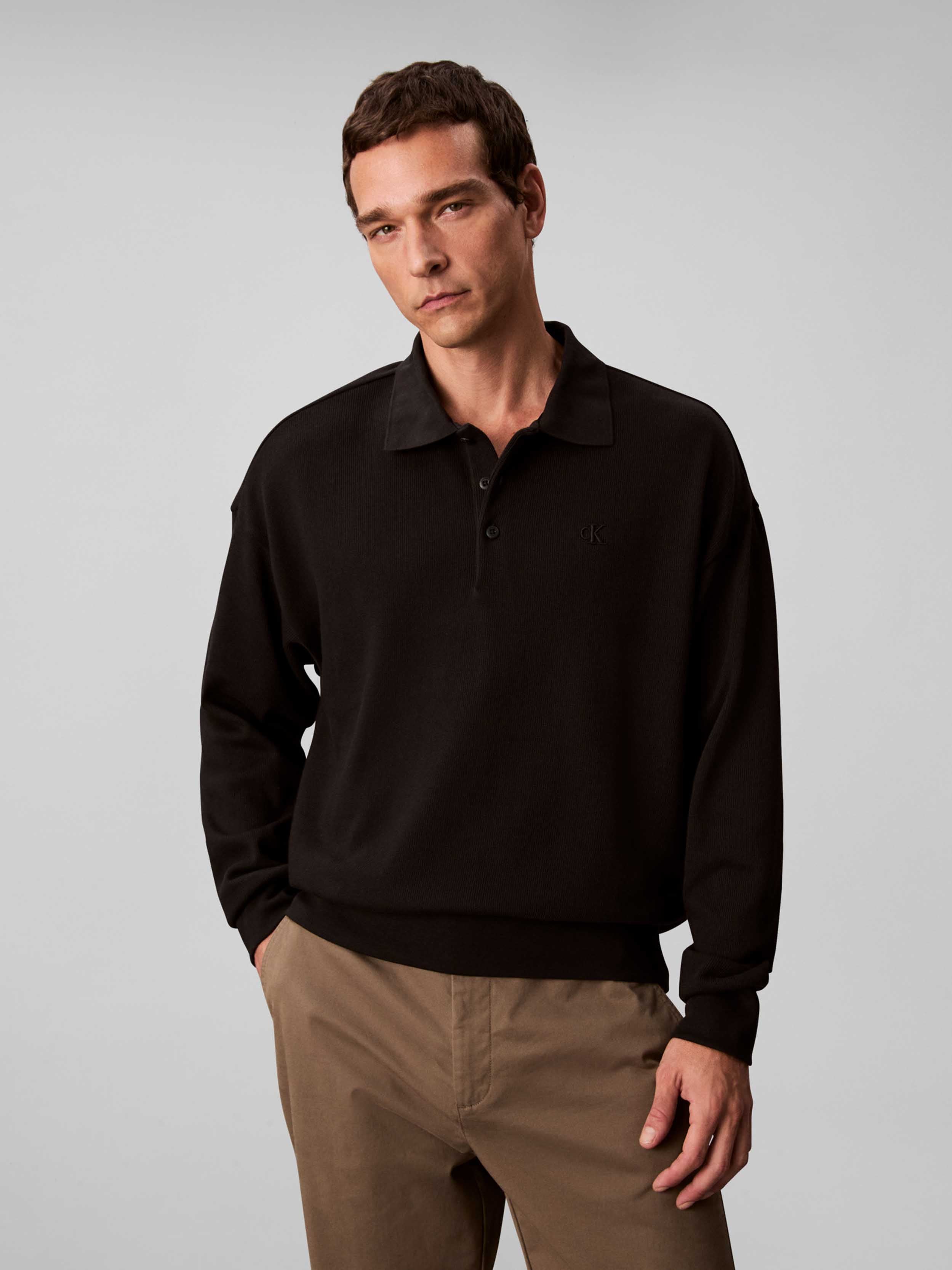 Calvin Klein - LS SWEATER-KNIT JERSEY HVYWT POL , S , Black , Style LV04RD224G