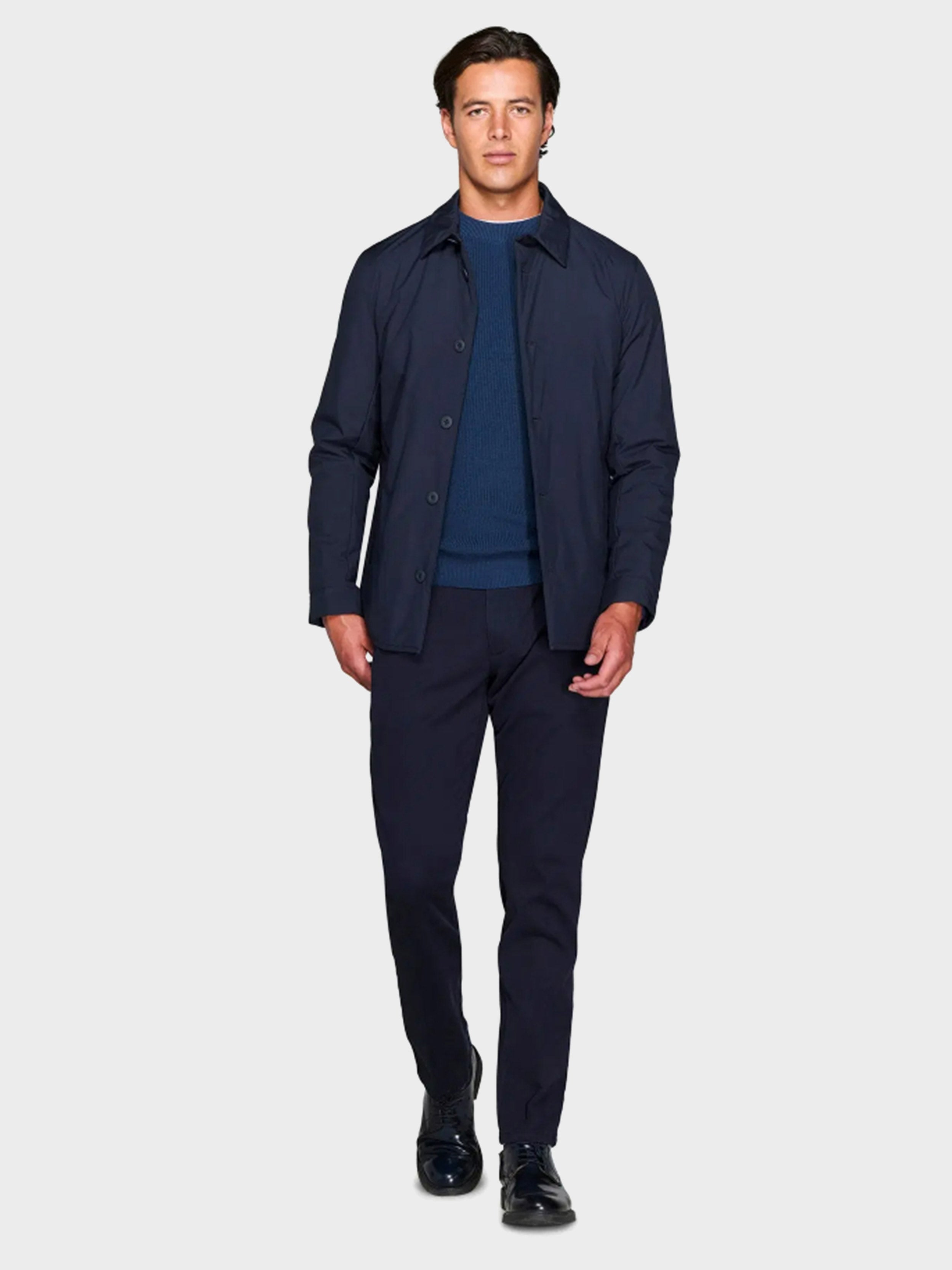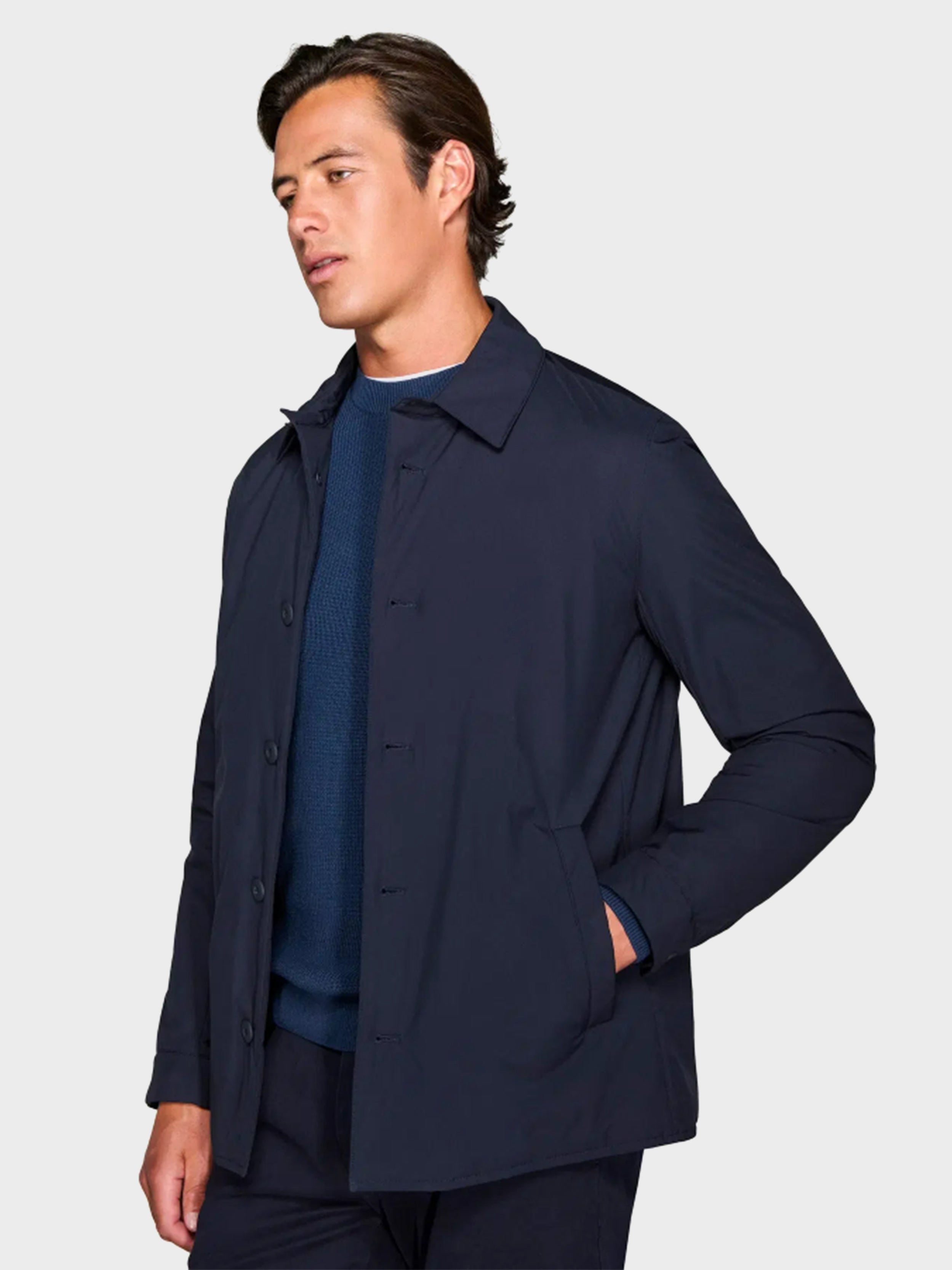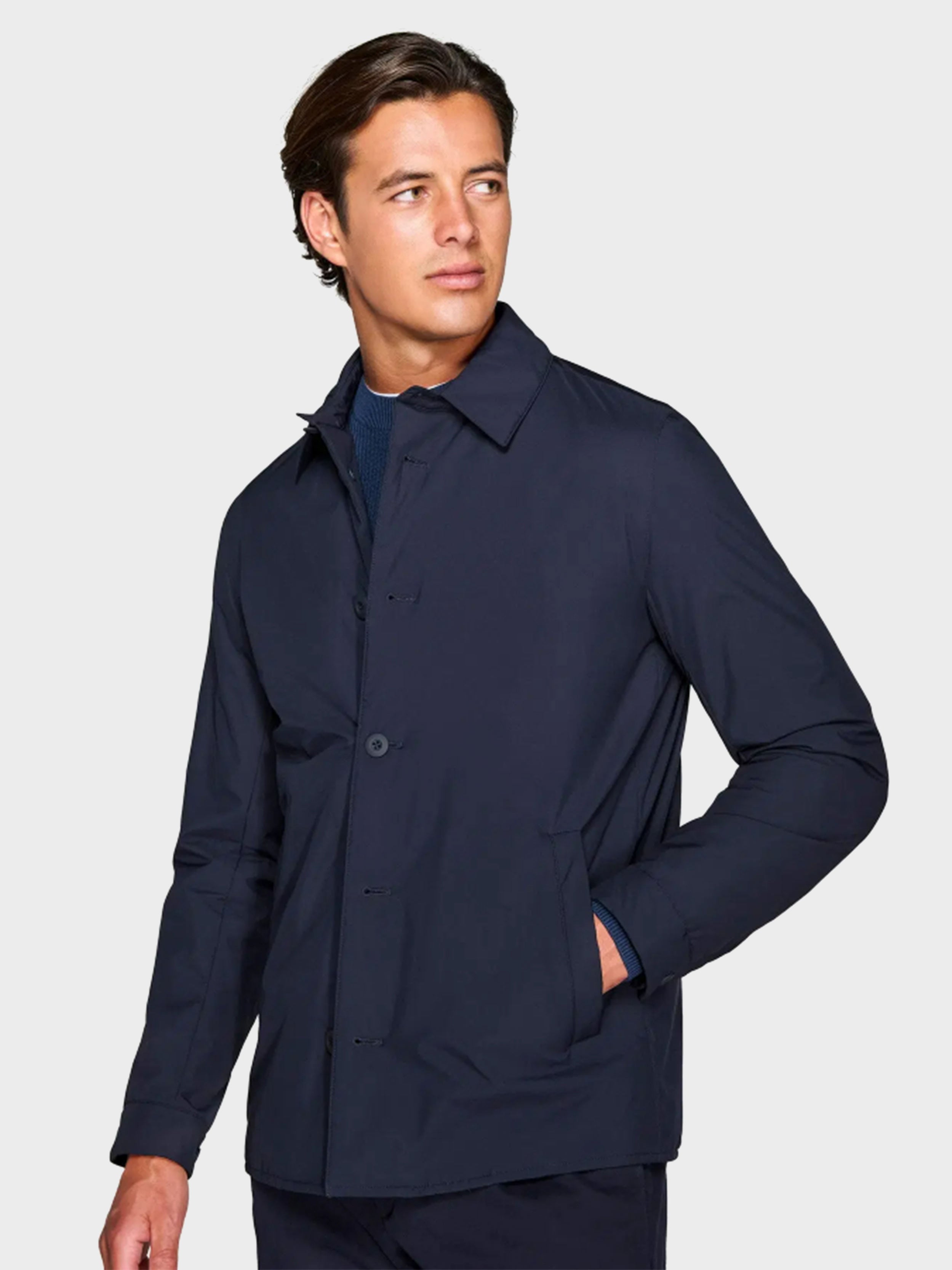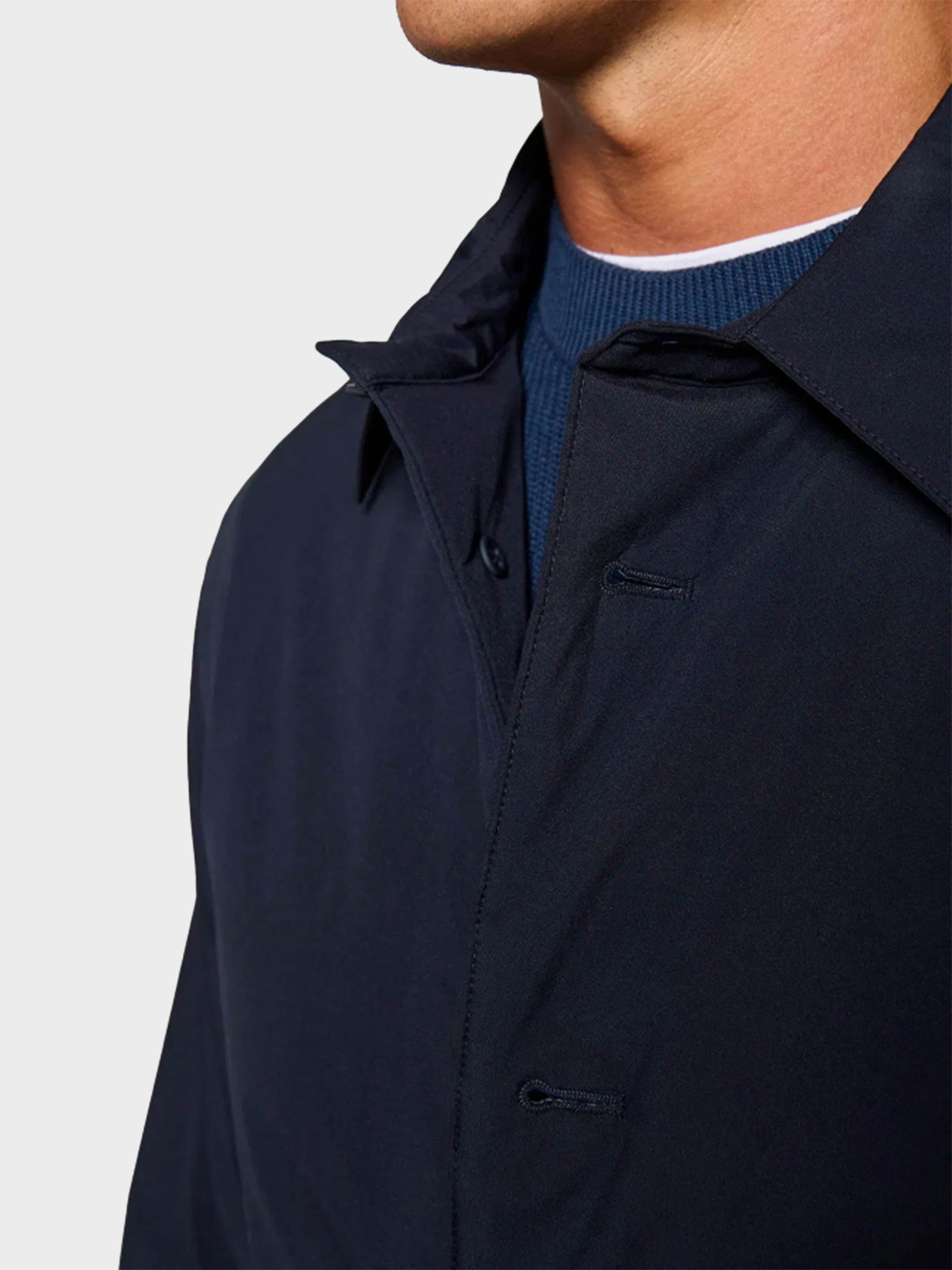 • Featuring a shirt collar and cuffs, concealed button pockets, and a double interior pocket.