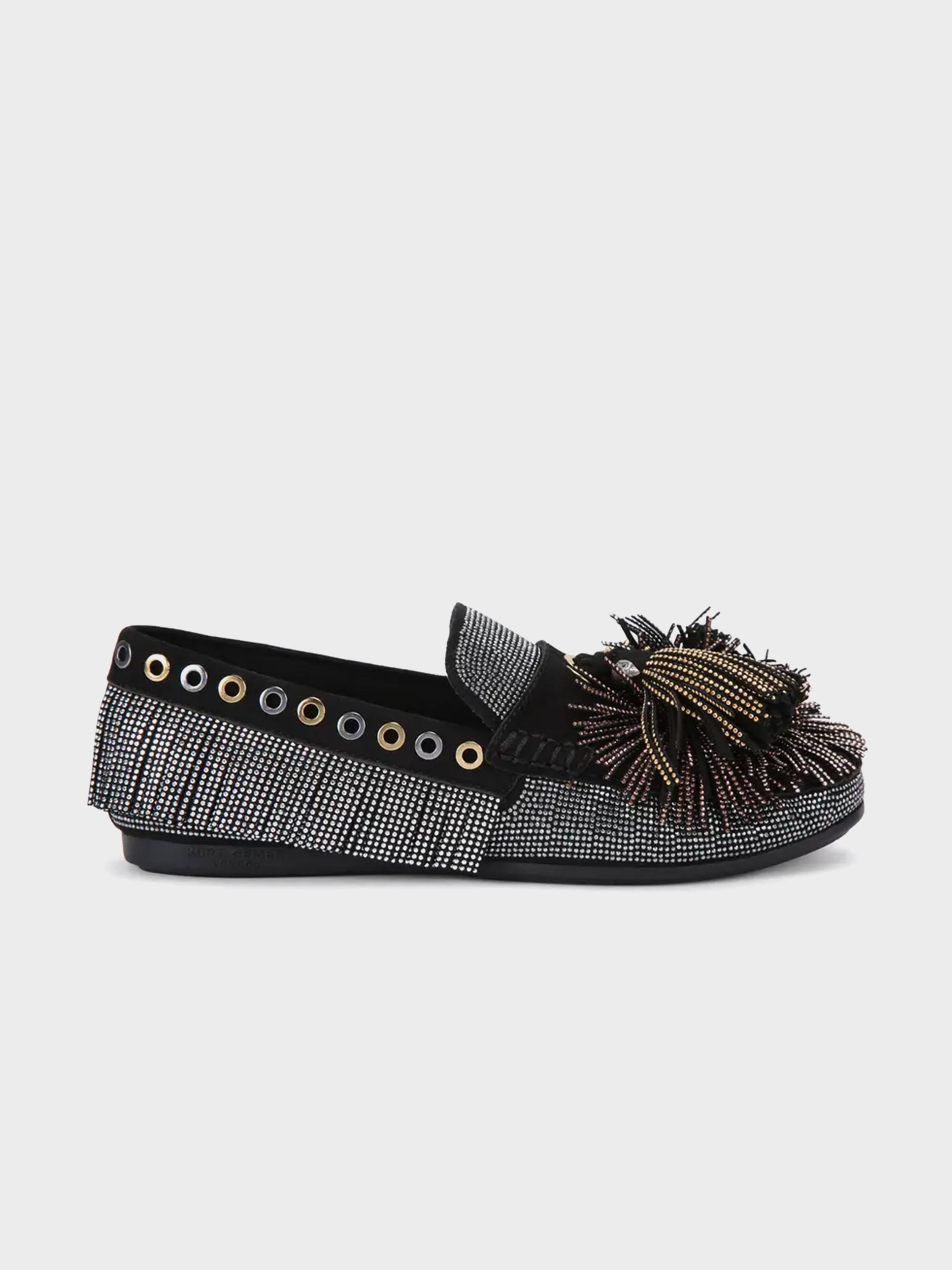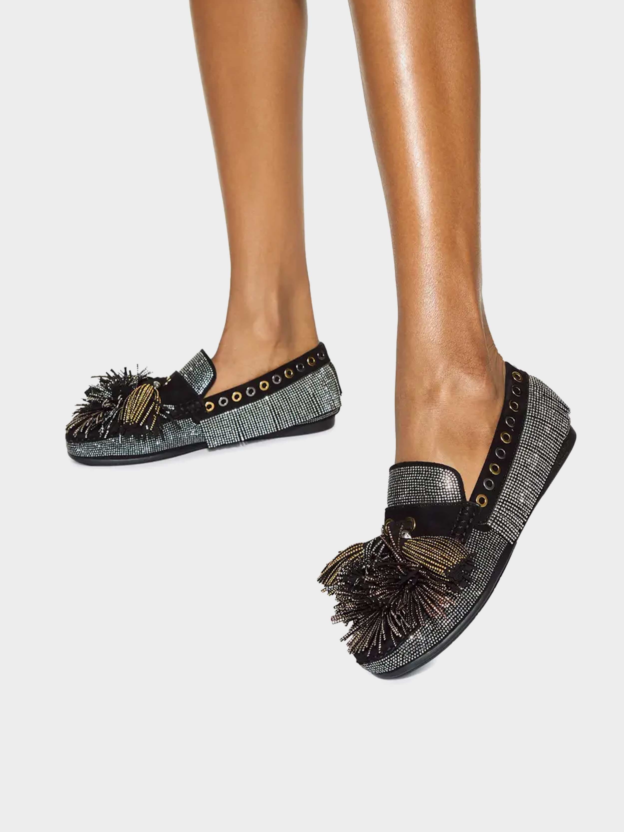 • Kurt Geiger - Women's Pom Pom Moccasin Suede Loafers