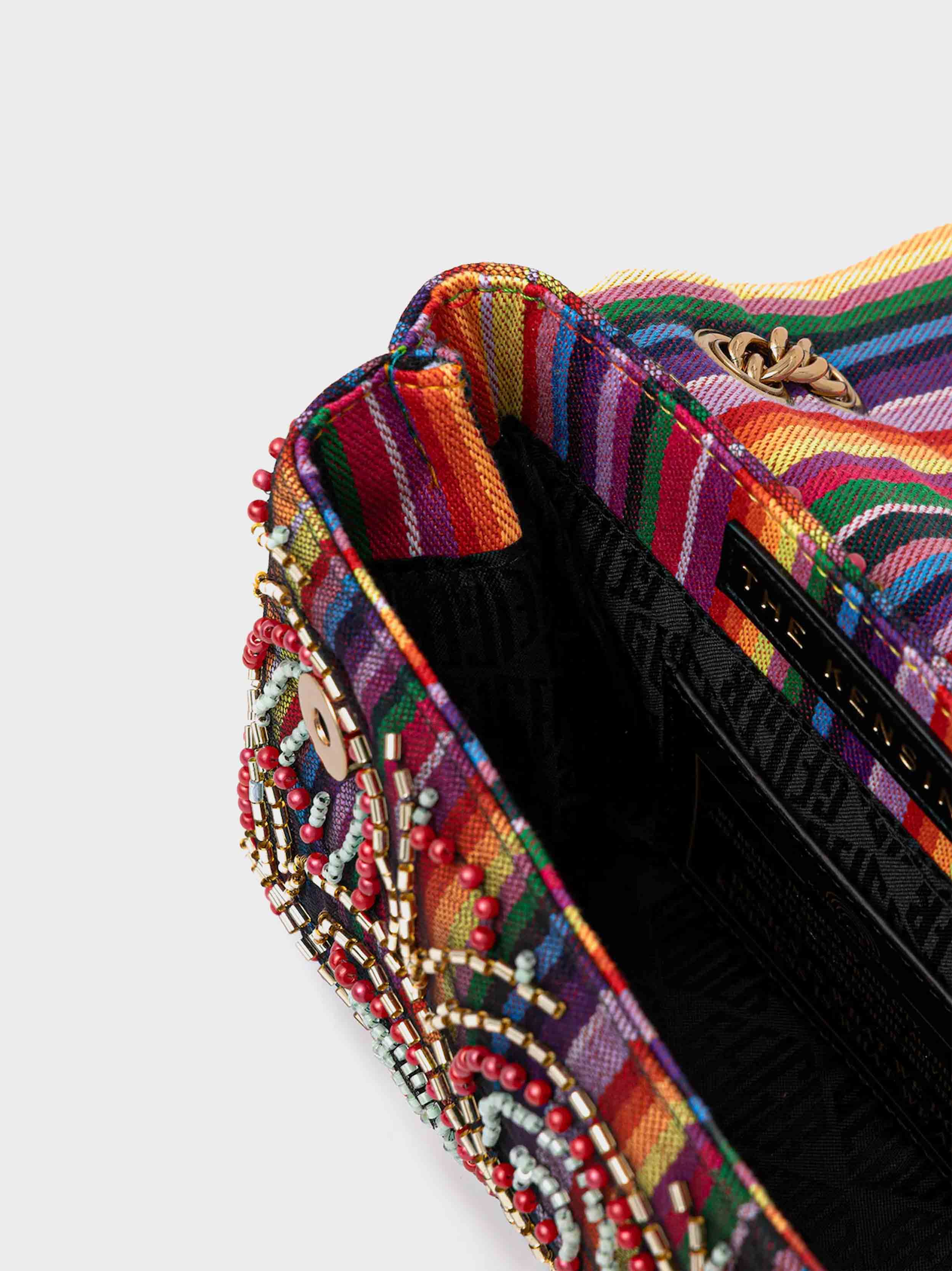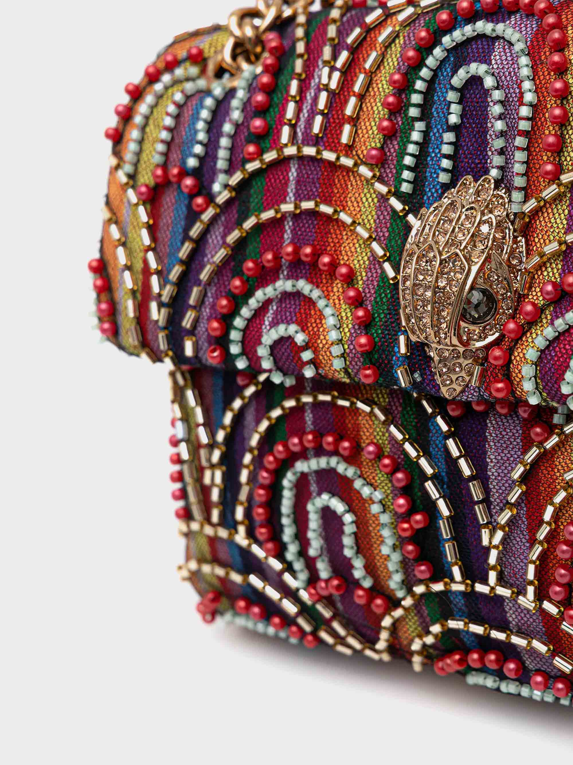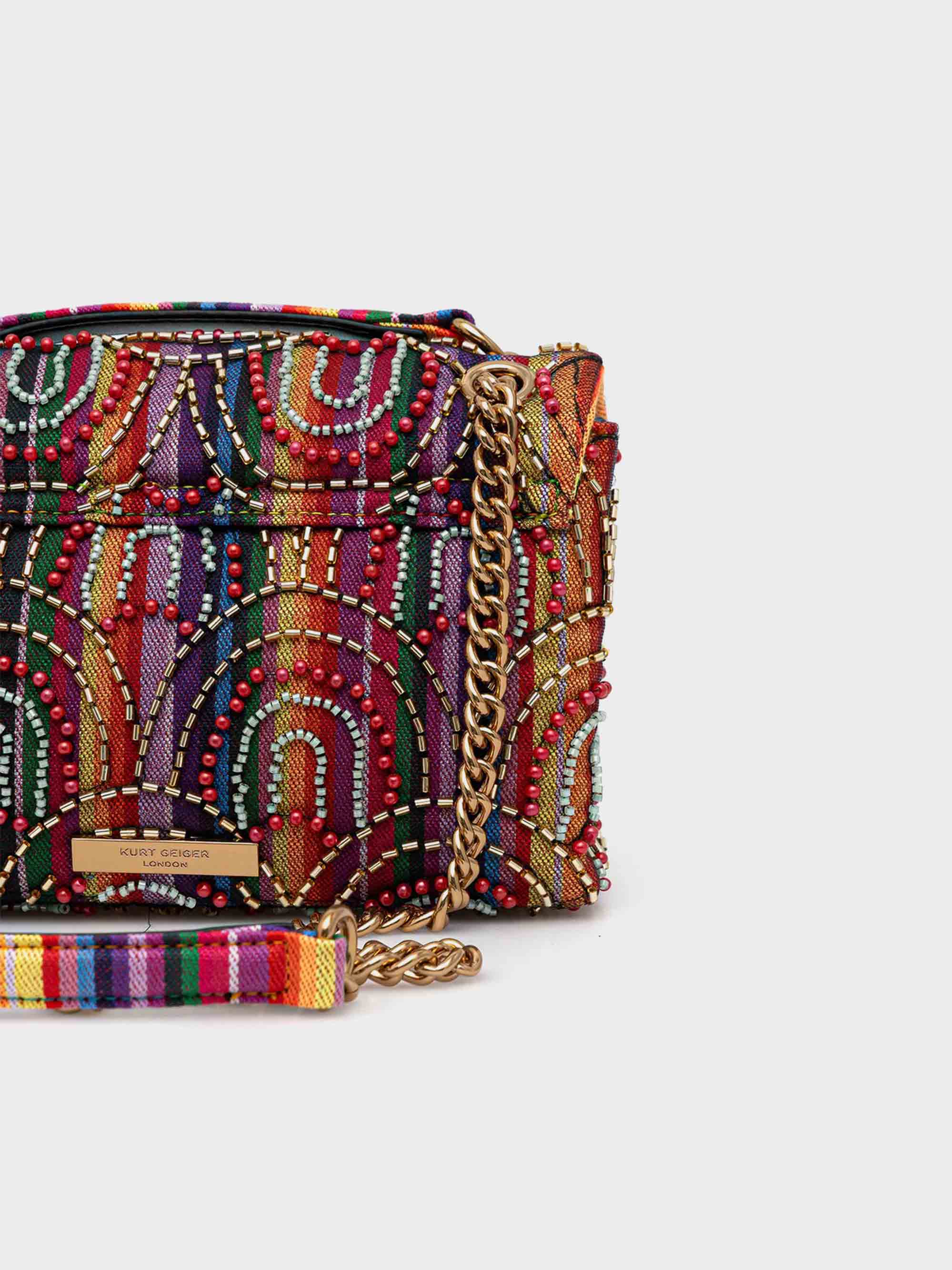 • Kurt Geiger London small handbag with clasp. Made of beaded fabric.