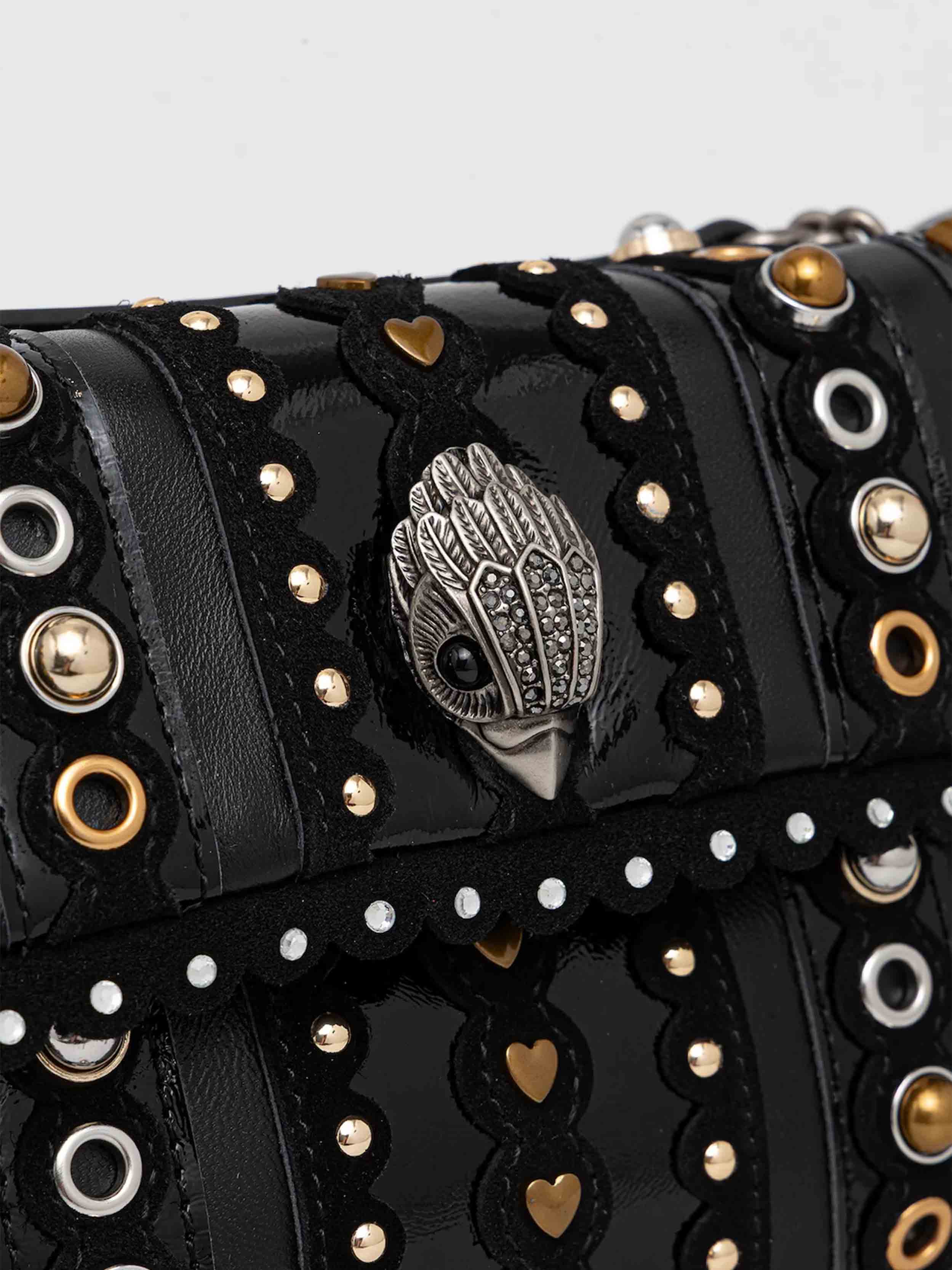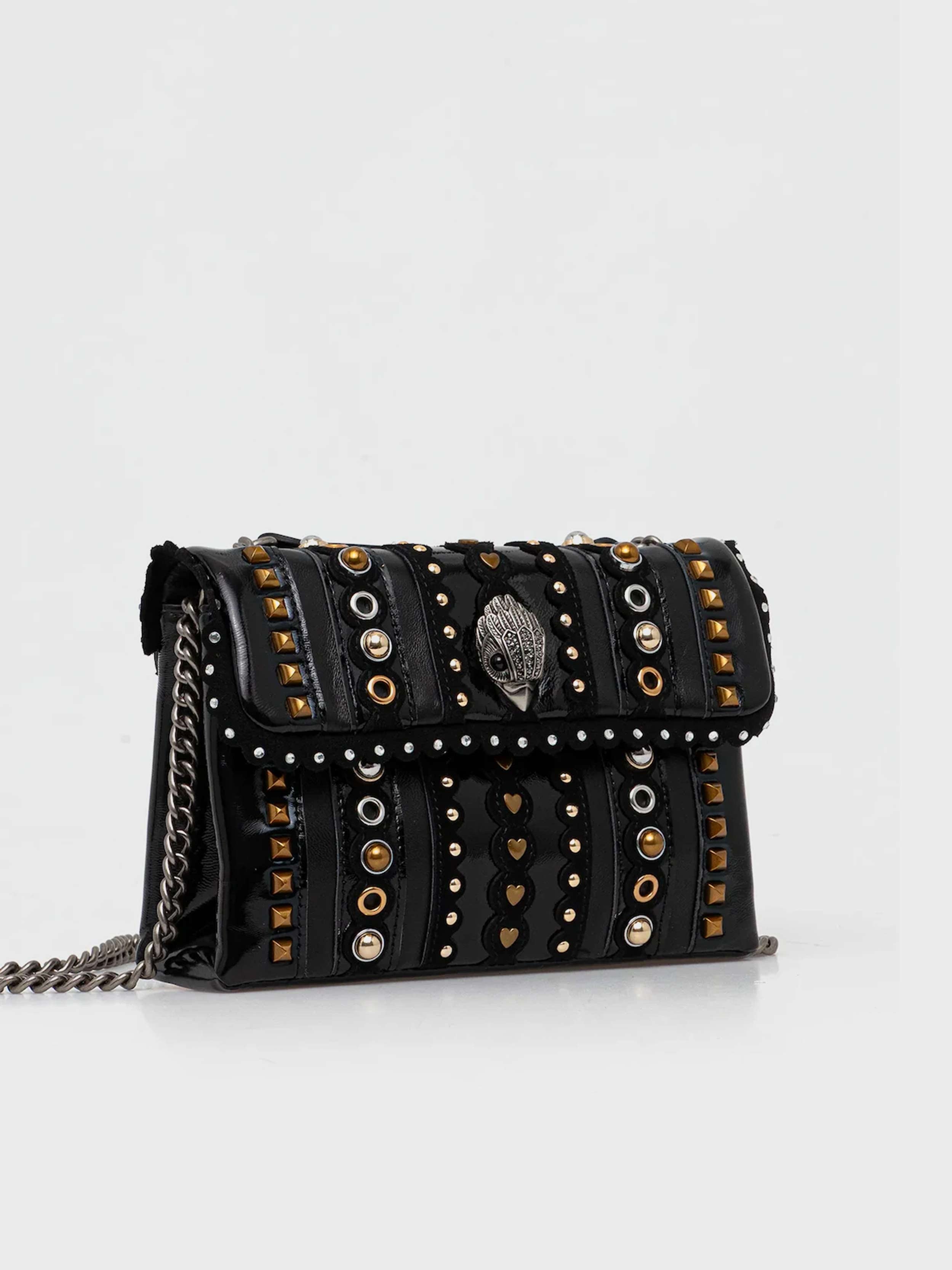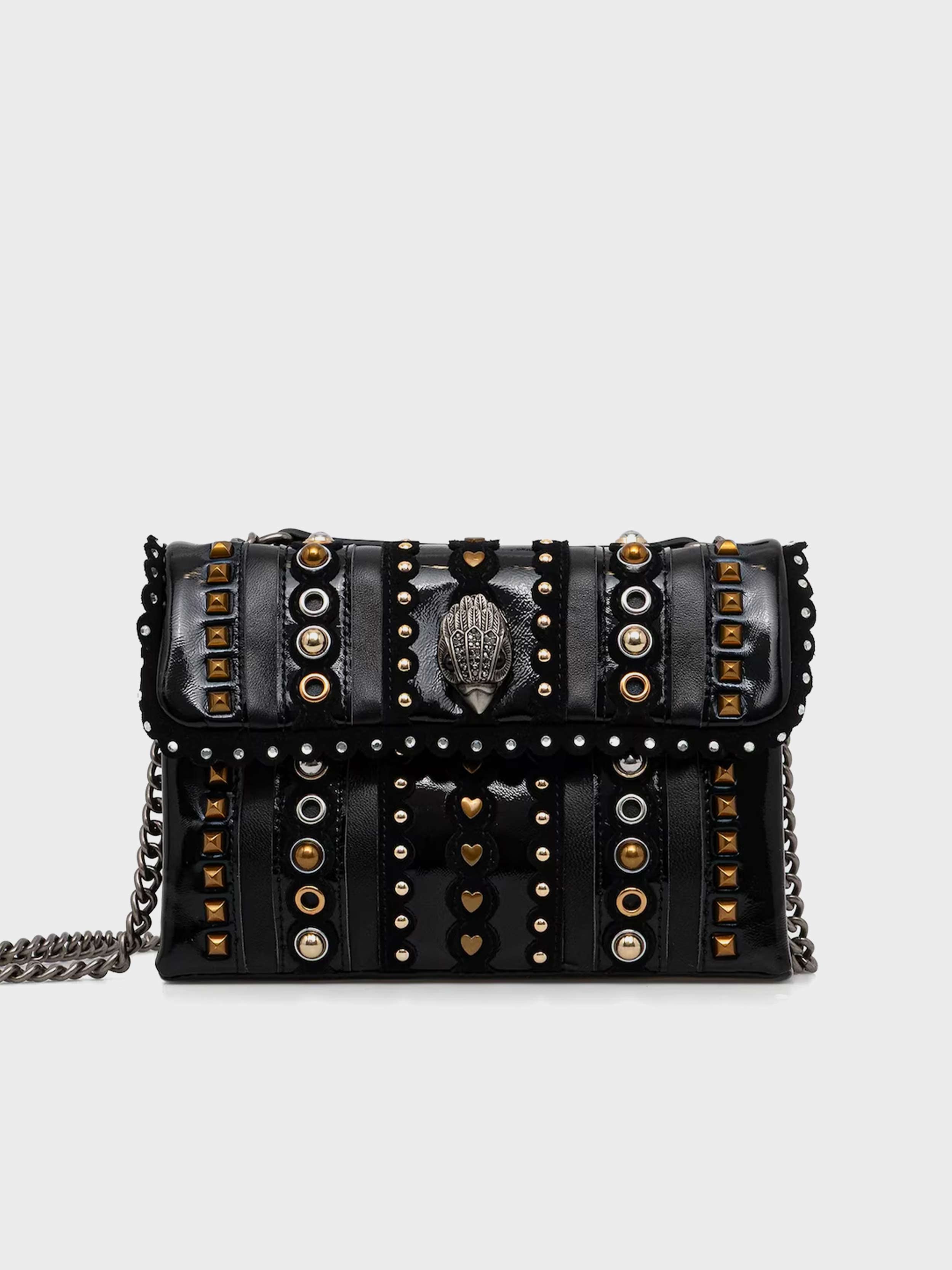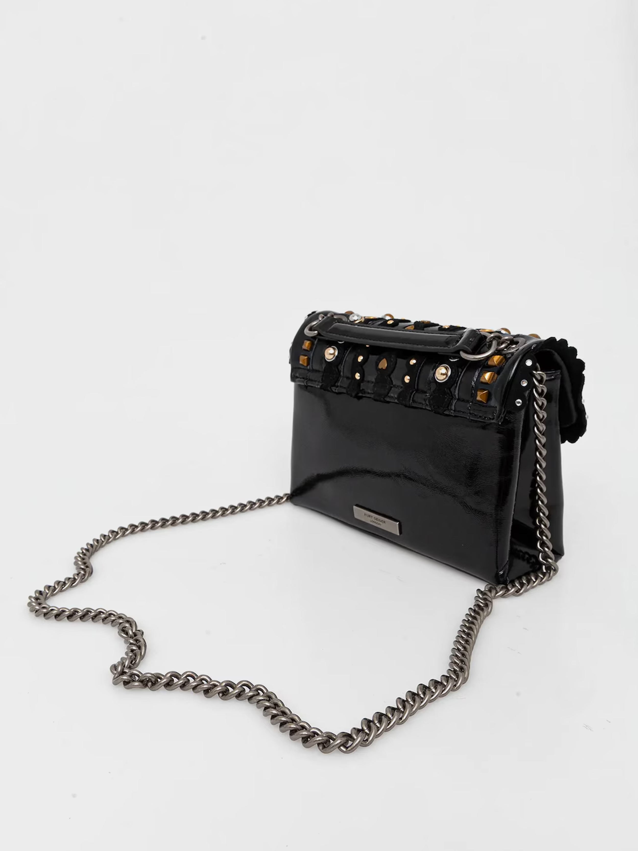 • A small handbag from the Kurt Geiger London collection. This clasp-closure design is crafted from stiff, shape-retaining material.