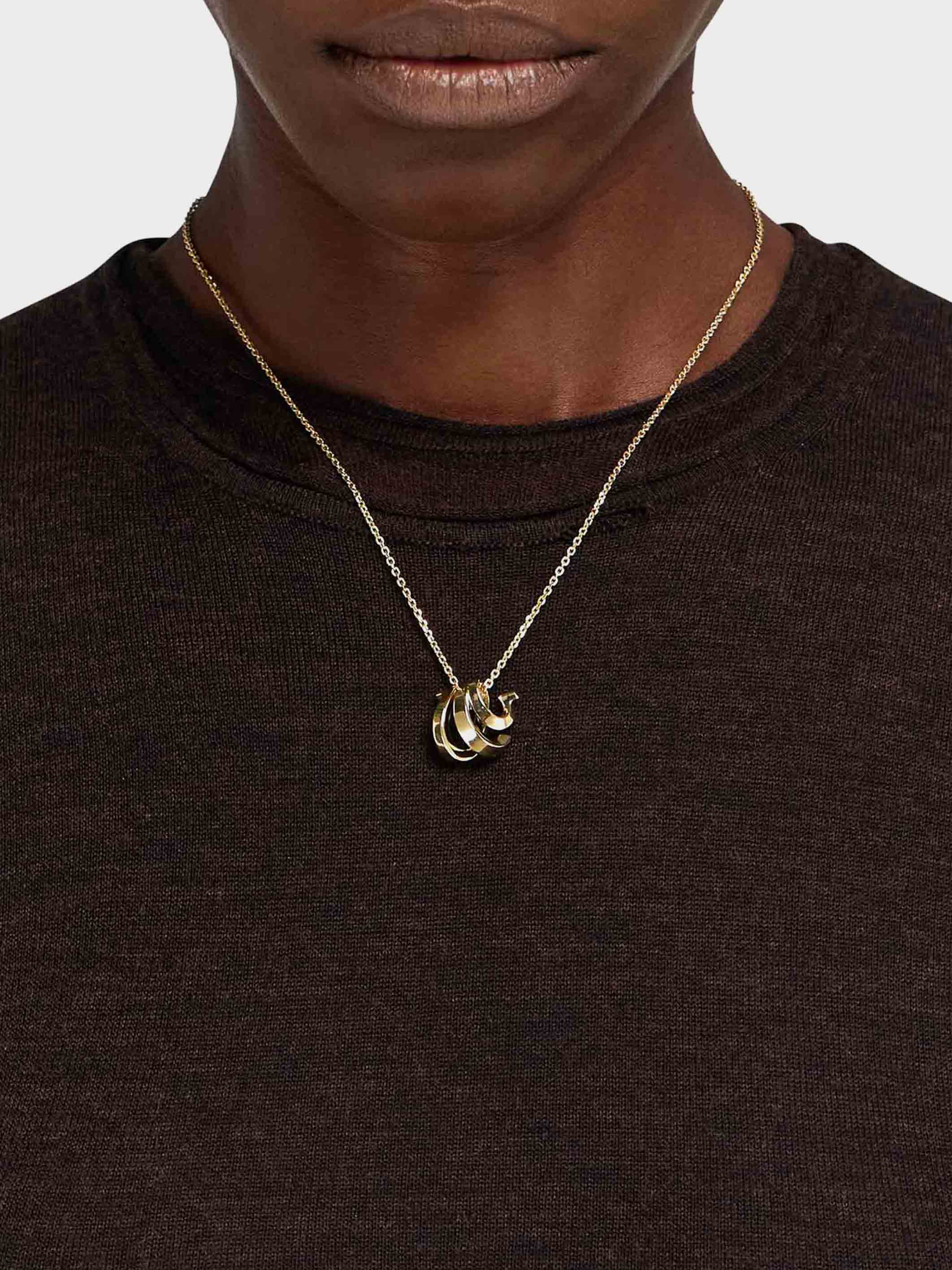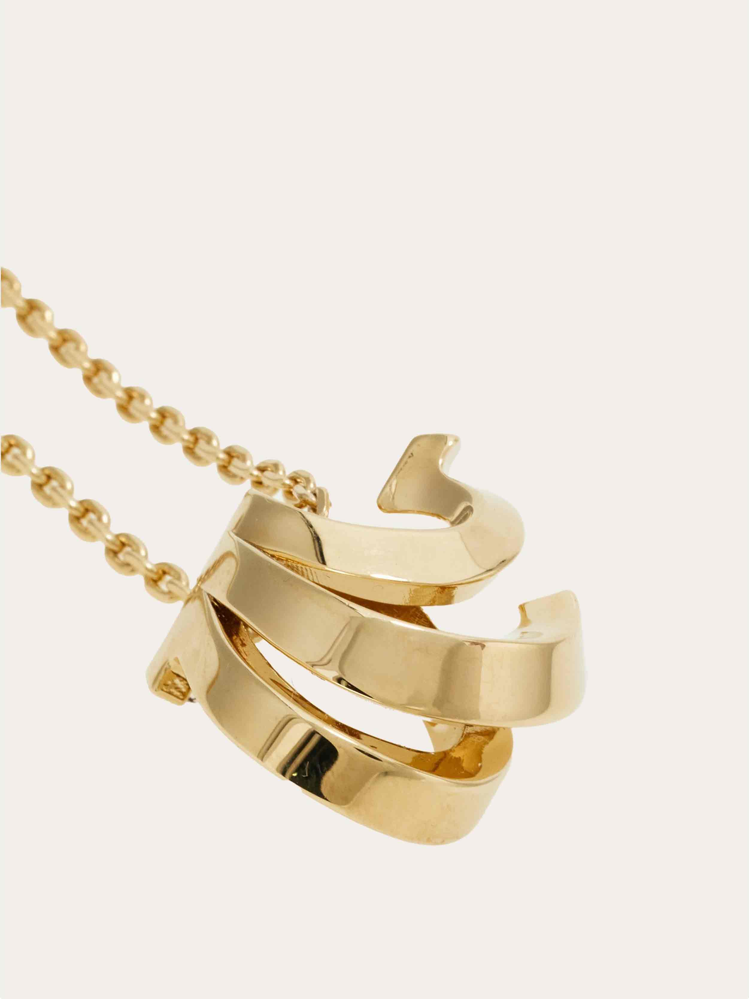 • The pendant features a trio of Gancini in graduating sizes, sculpted in a dimensional, draped effect. Finished with a custom tag. Also available in a version with crystal embellishment.