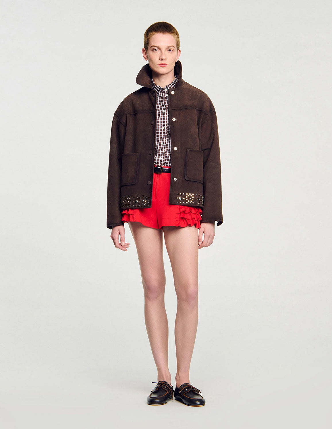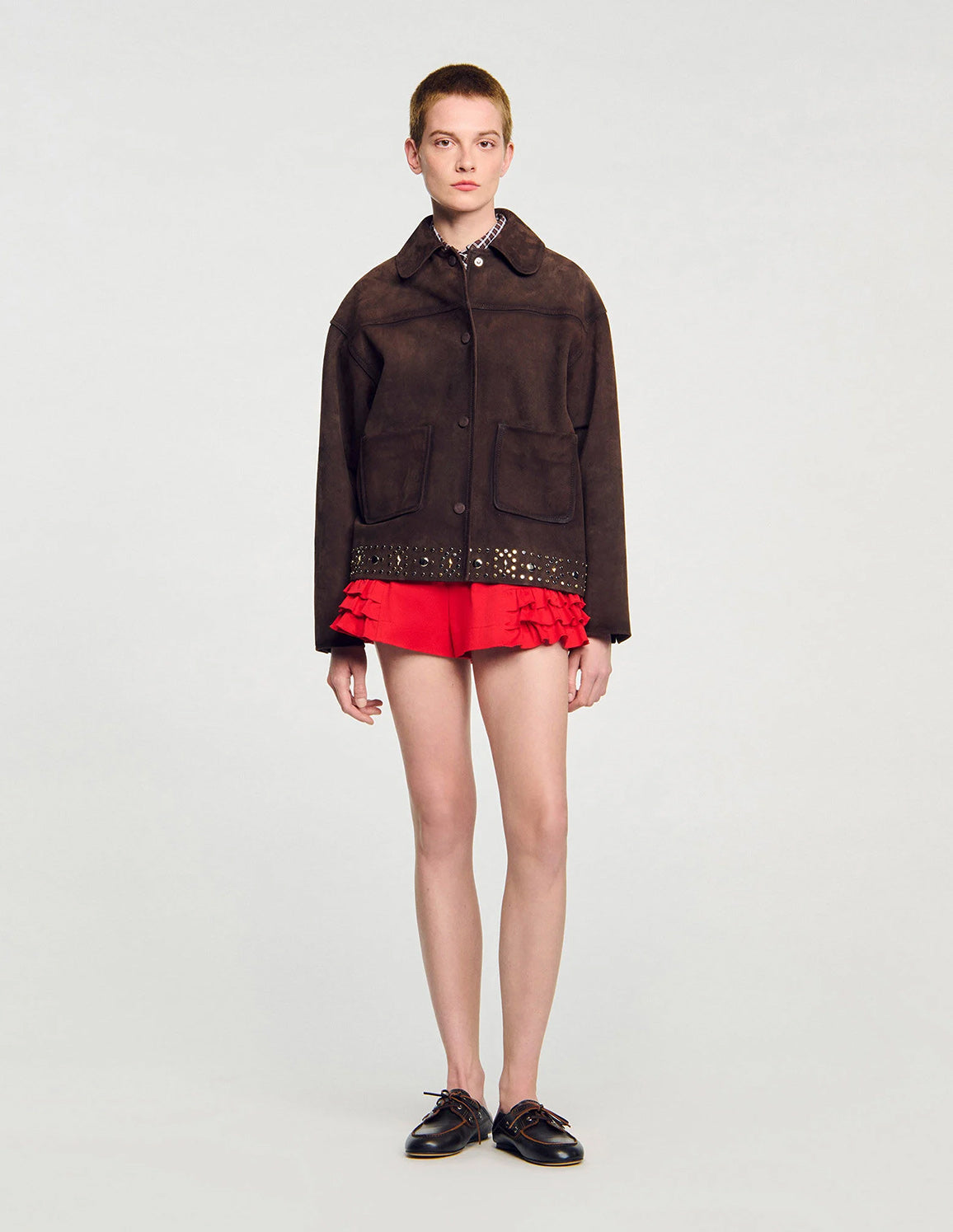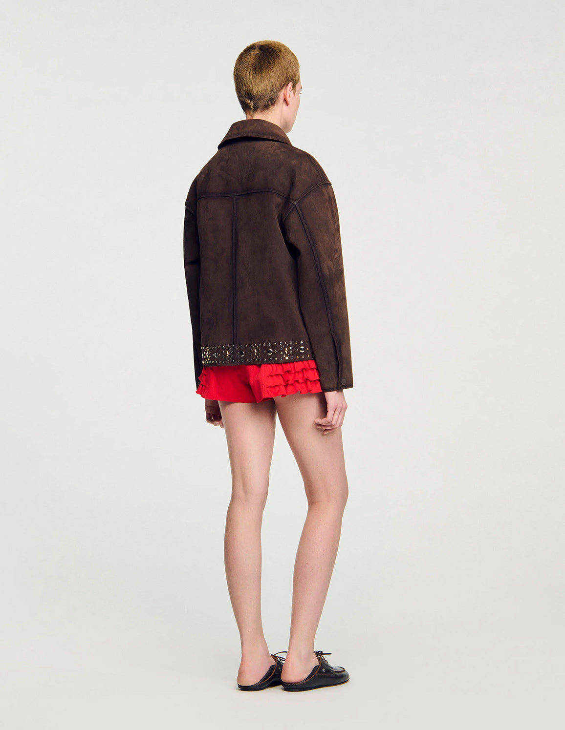 • SANDRO - Women's Studded Suede Leather Jacket