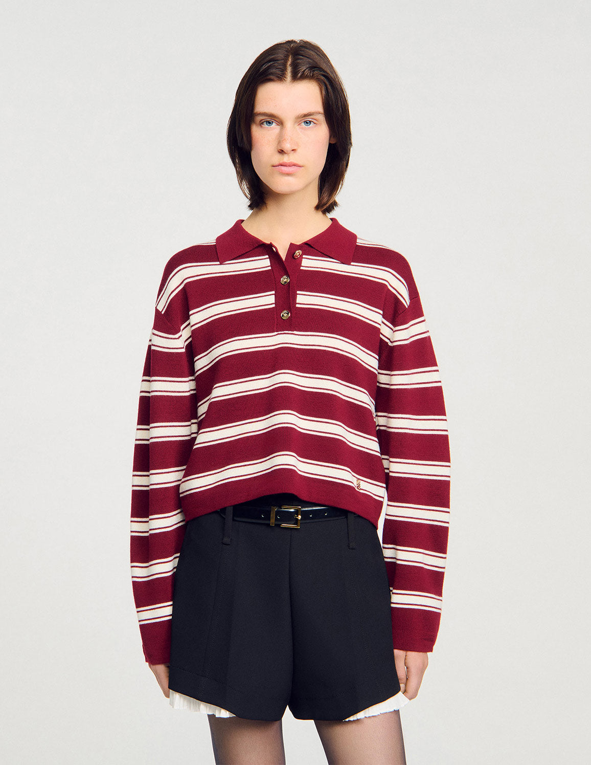 SANDRO - Women's Stanislas Striped Polo Jumper
