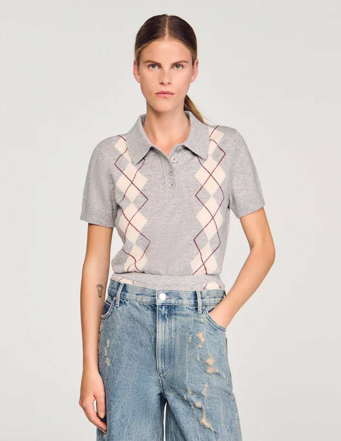 SANDRO - Women's Mirano Argyle Polo-Neck Jumper