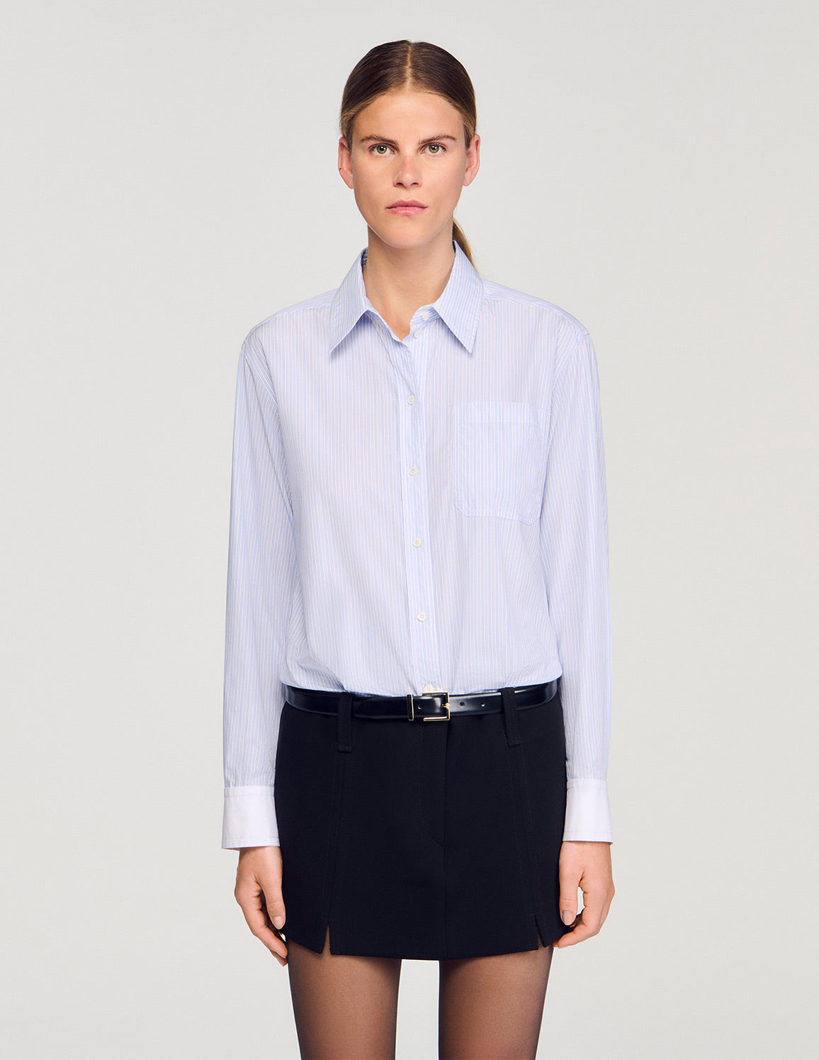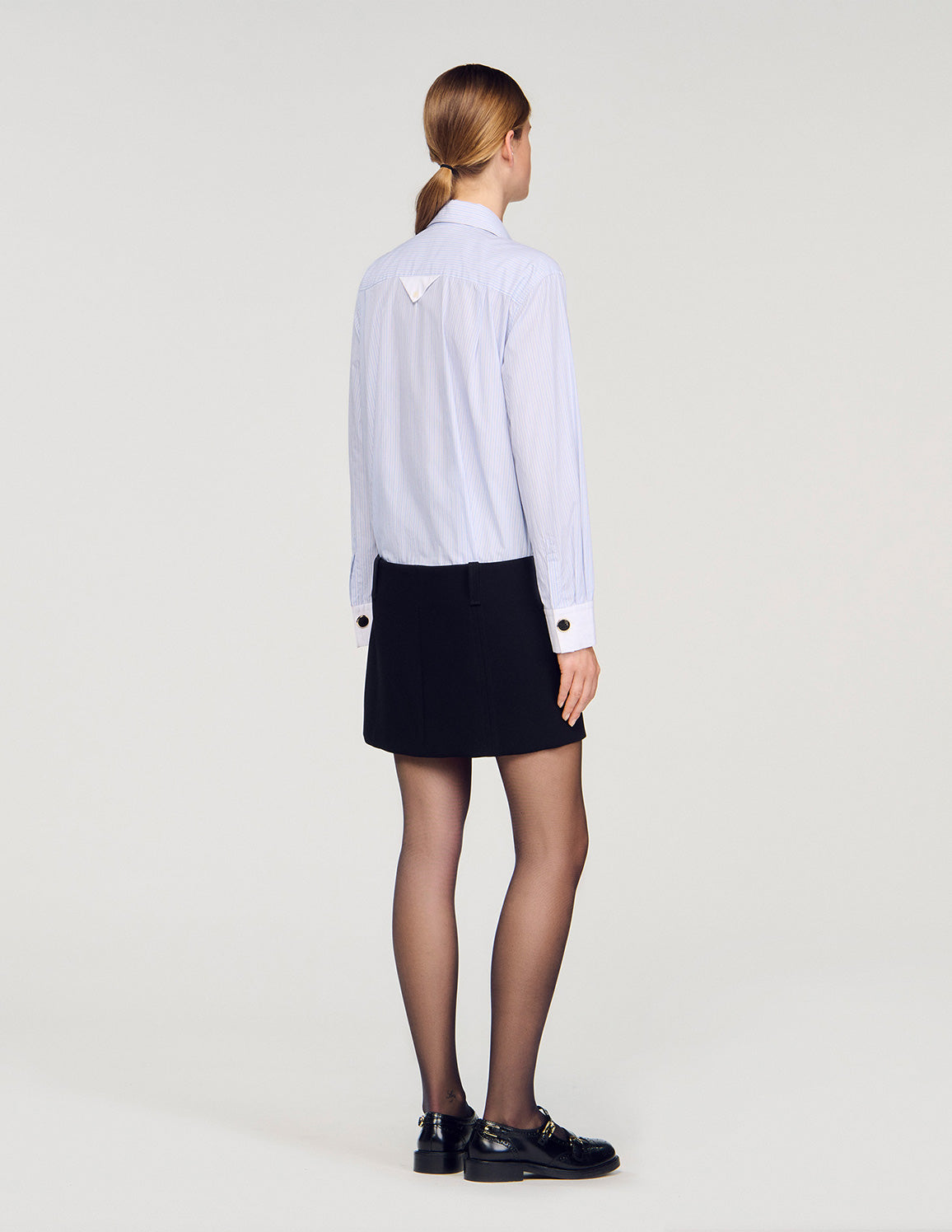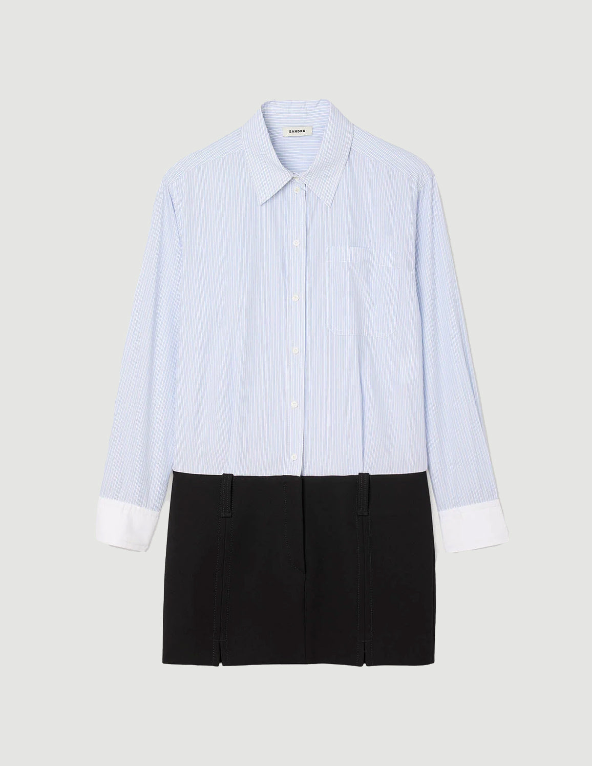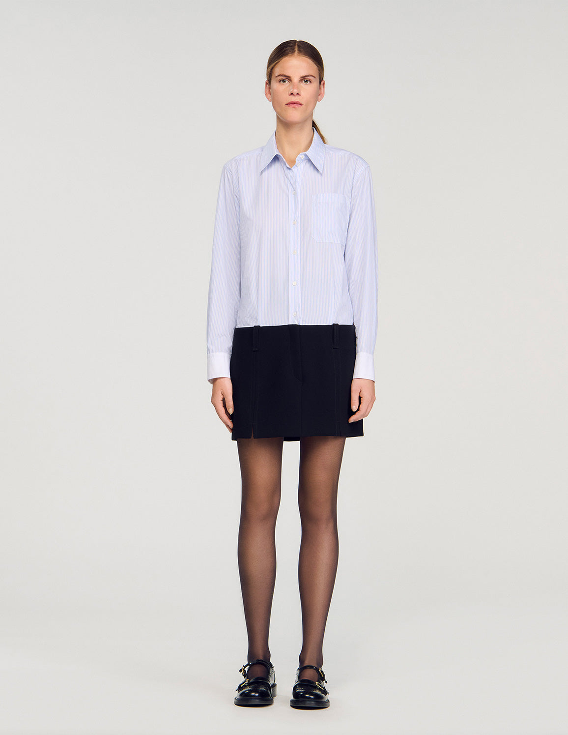 • Short 2-in-1 dress with buttoned striped shirt with long sleeves and contrasting straight skirt