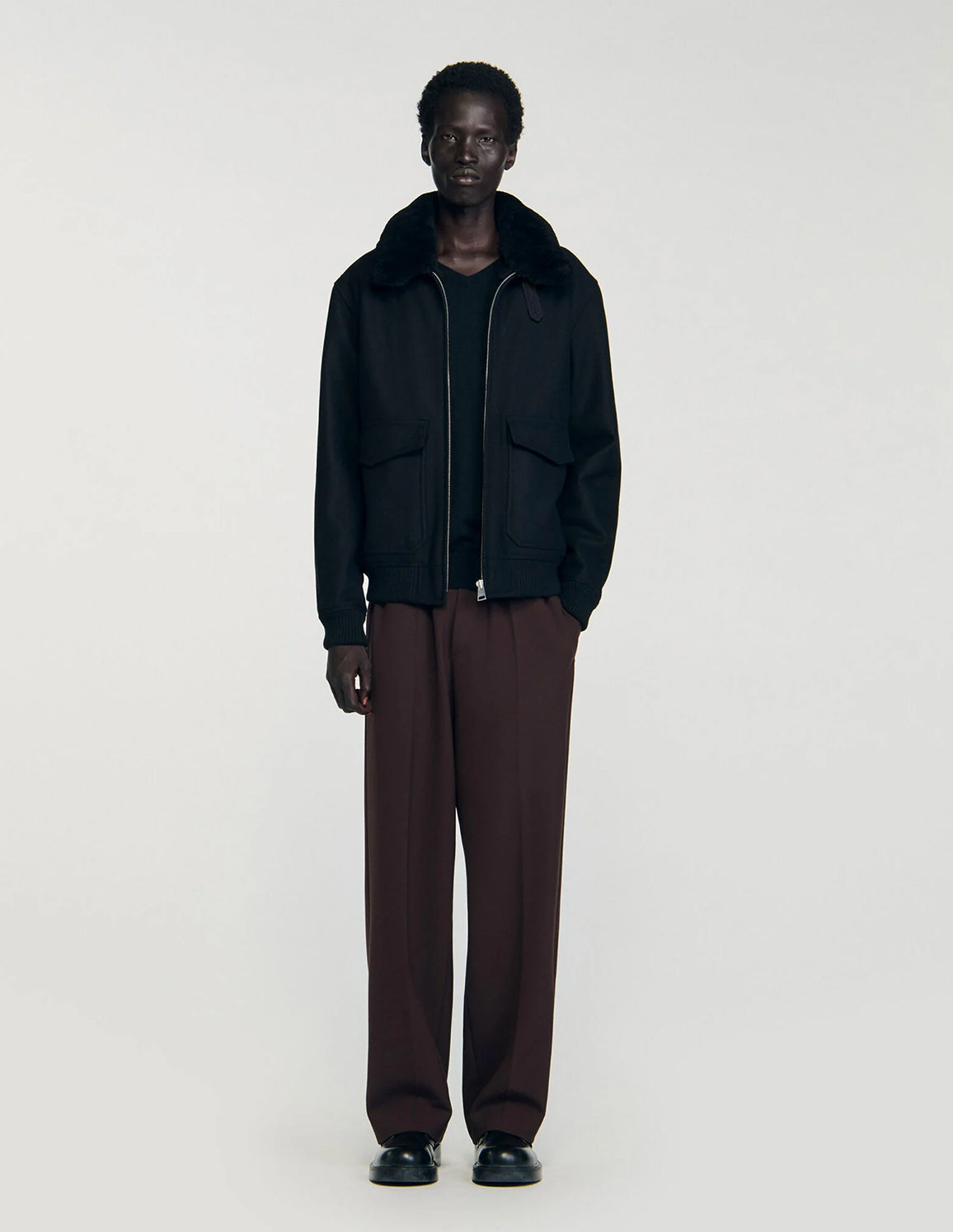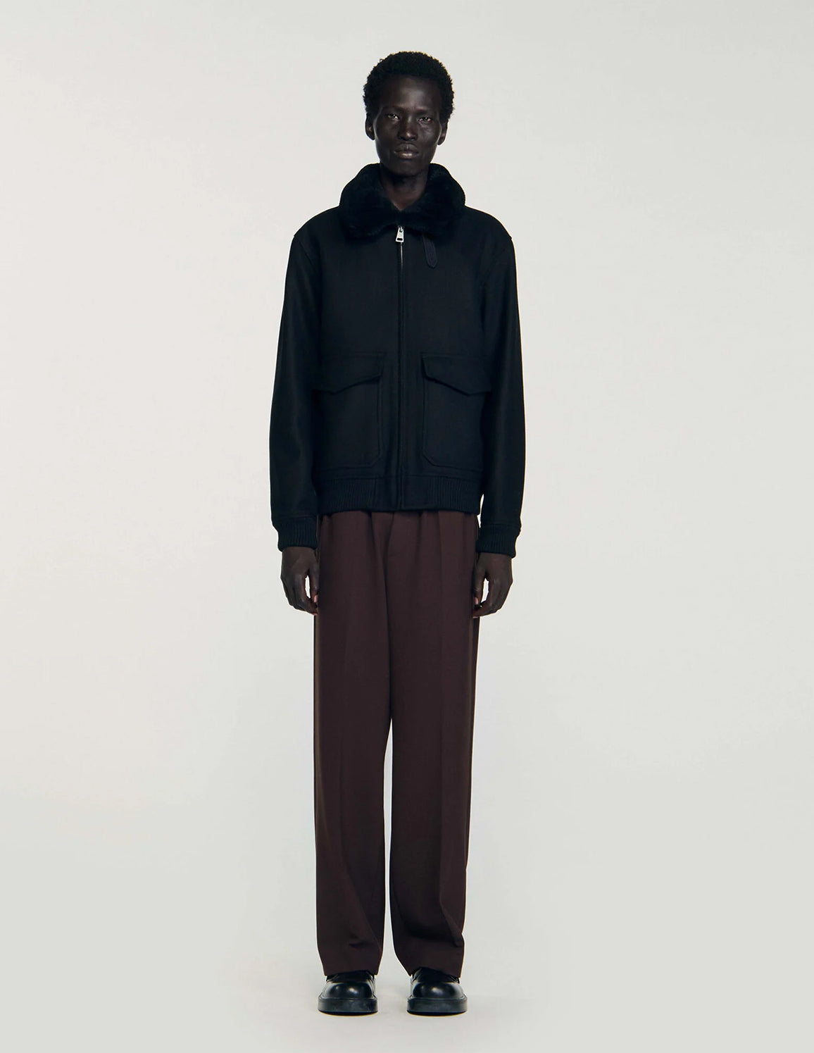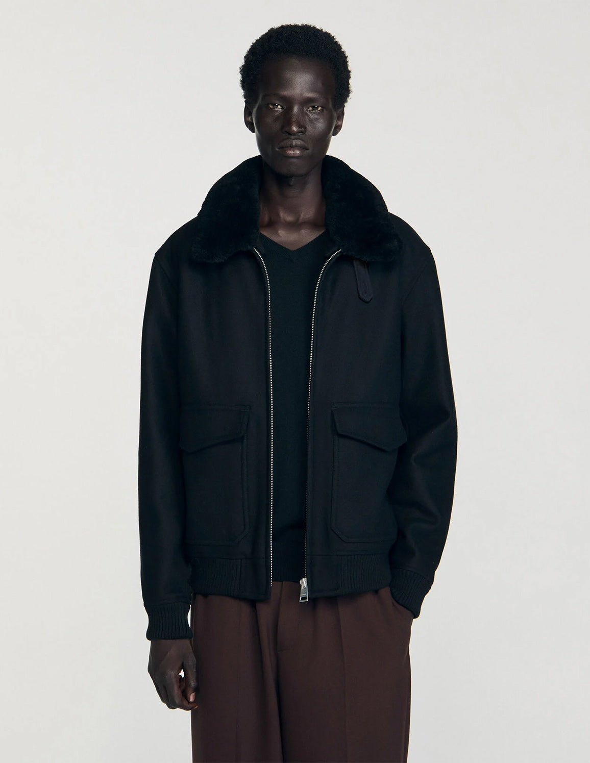 SANDRO - Men's Wool Aviator Jacket With Shearling