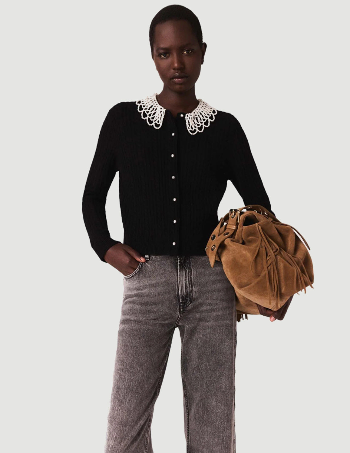 Maje - Women's Cardigan With Removable Beaded Collar