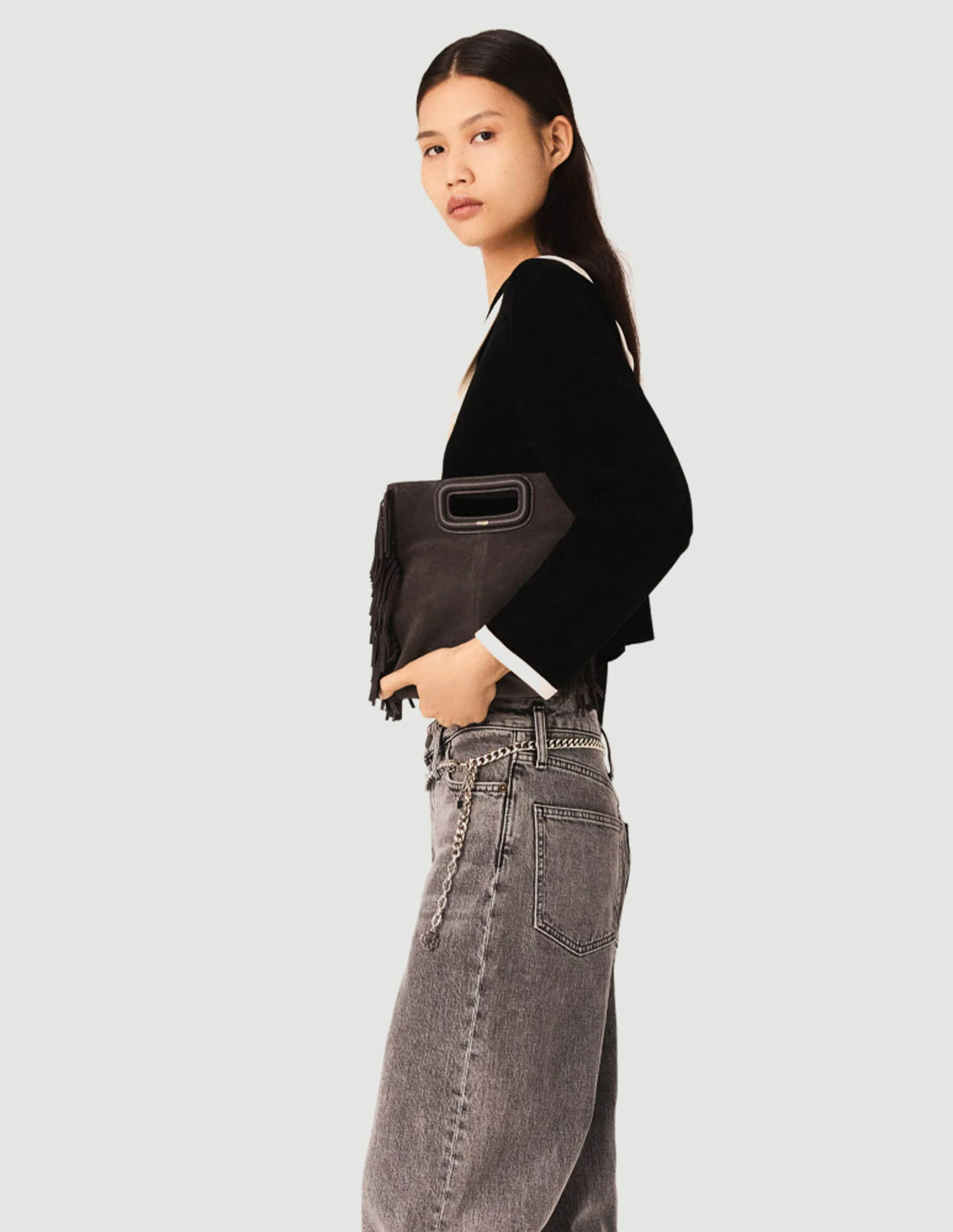 • Cropped velvet-effect knit cardigan with contrasting trim