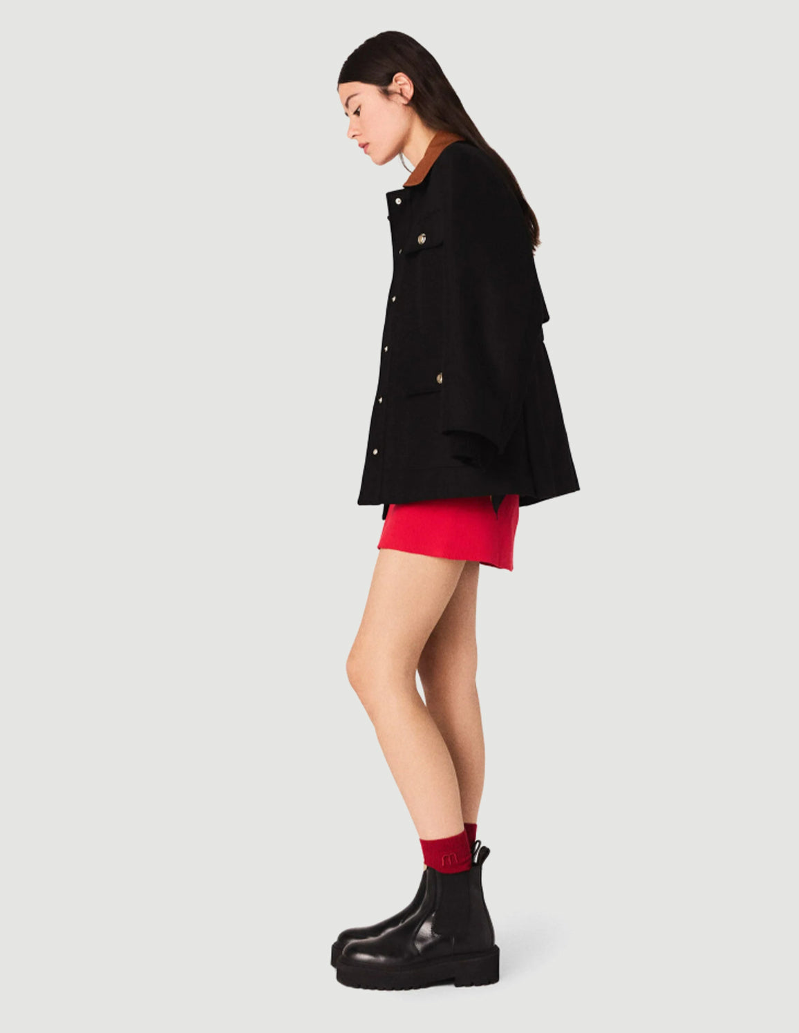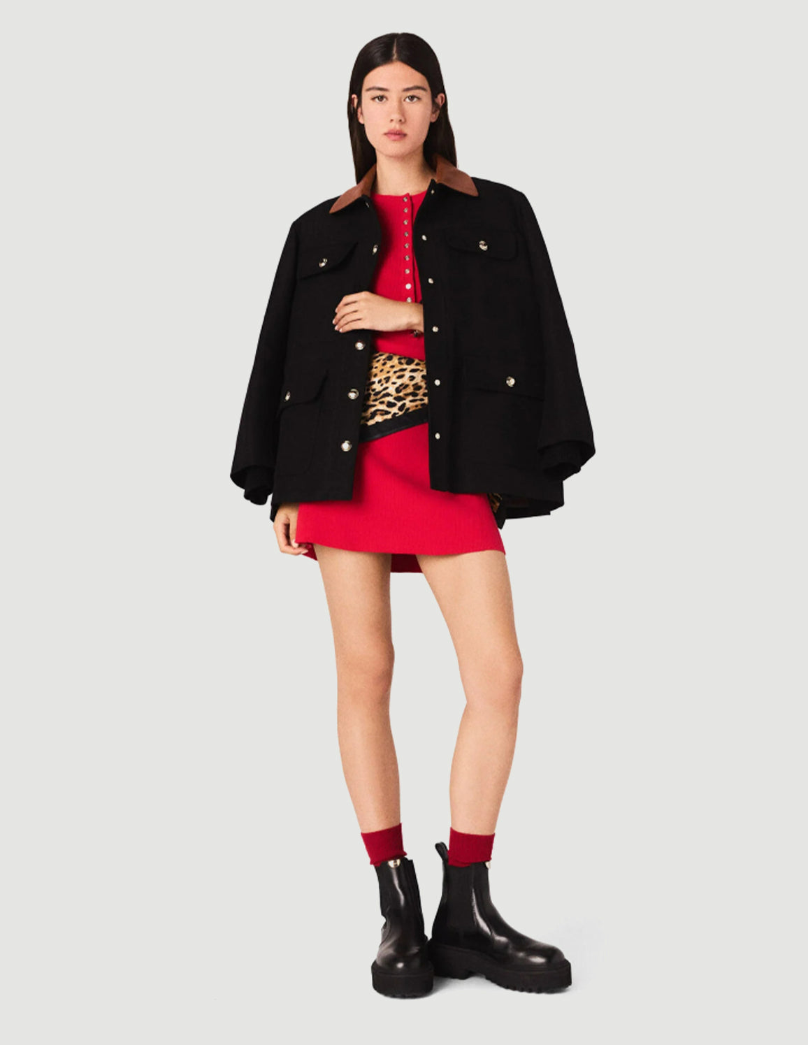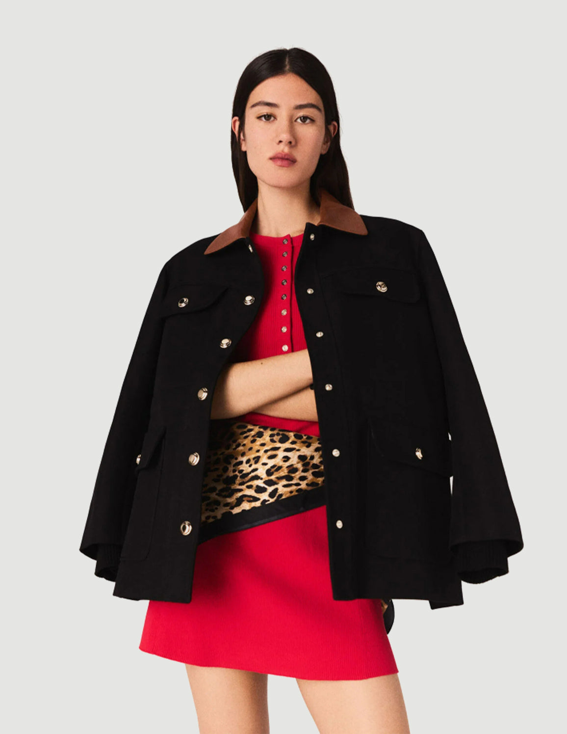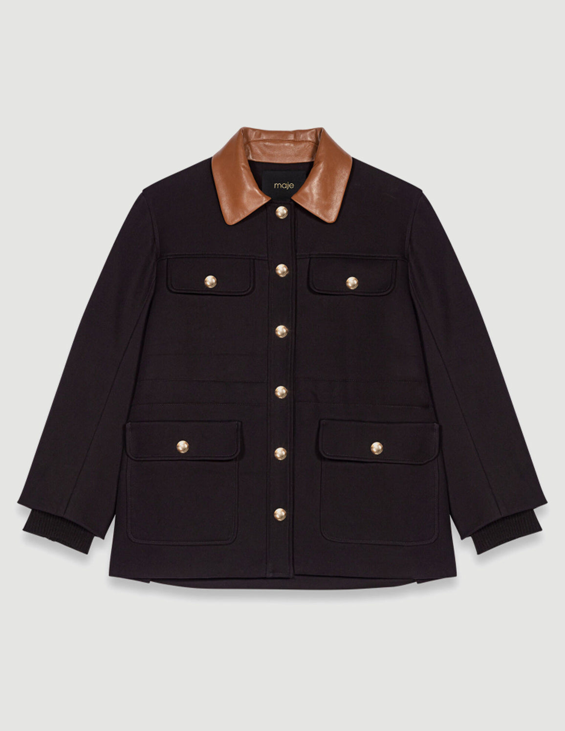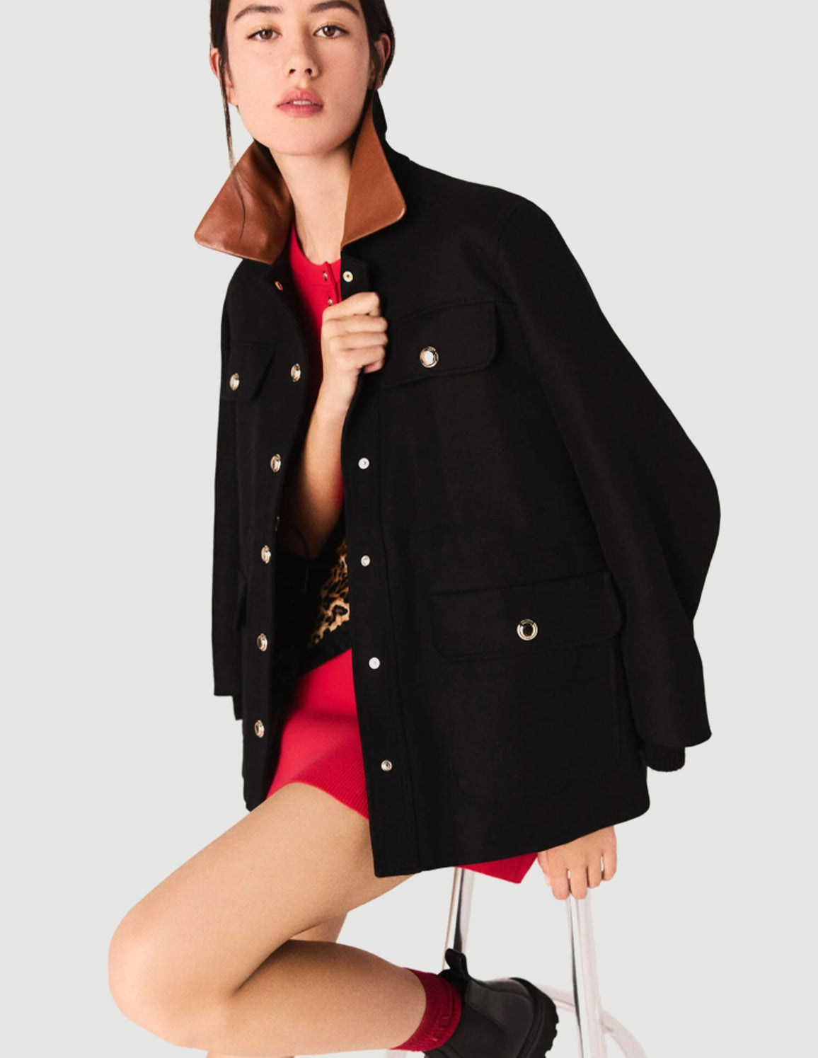 • This quilted coat takes on the features of an outdoor jacket with its utility details: contrasting leather collar, multiple flap pockets, storm flap and drawstring. A modern, structured silhouette, to be worn alone or layered over seasonal looks.