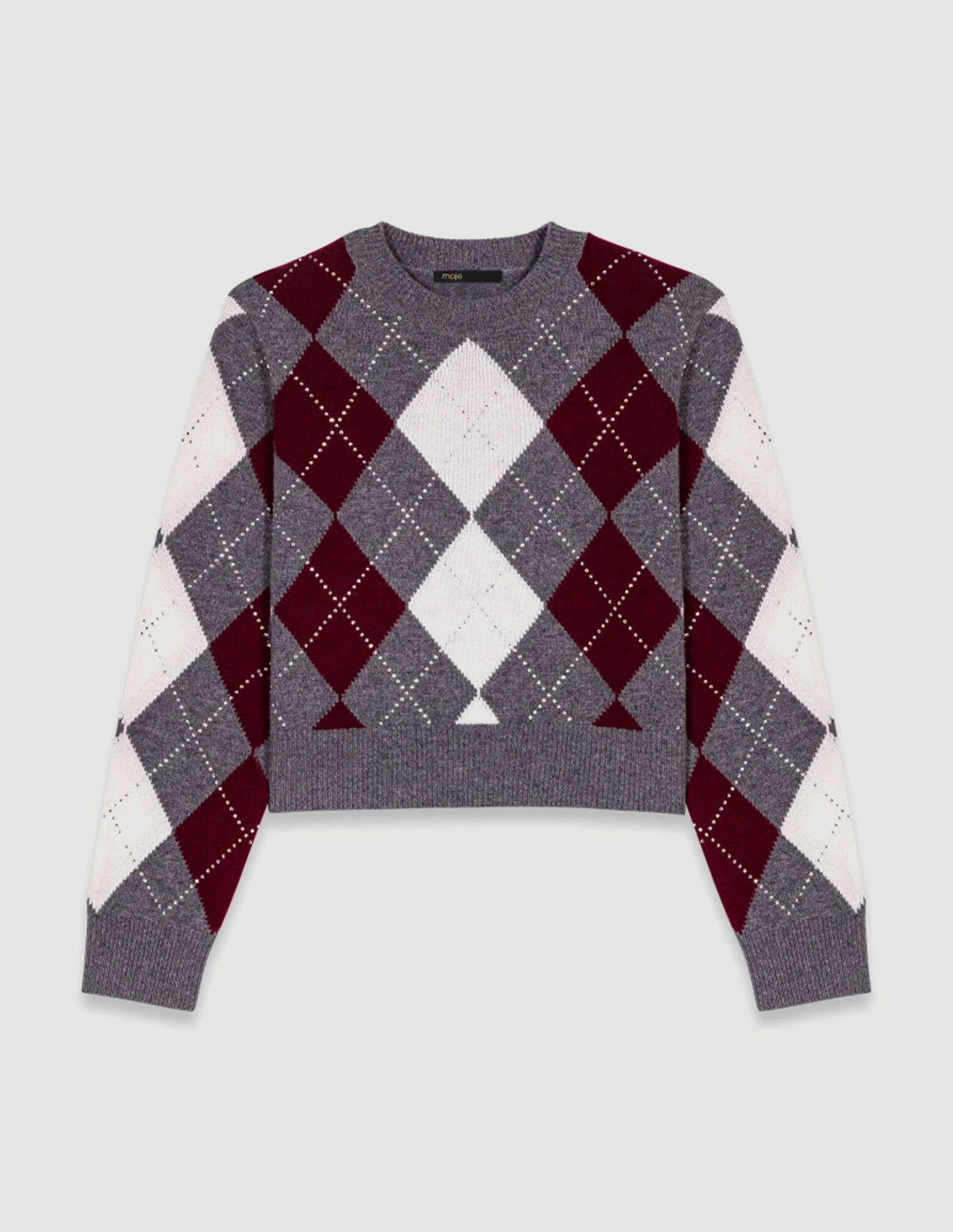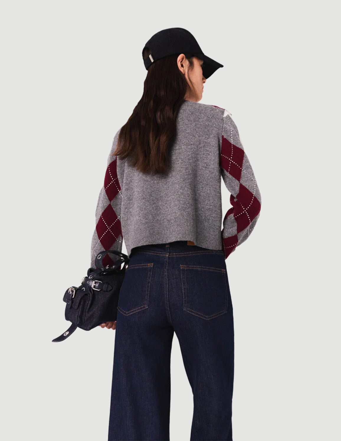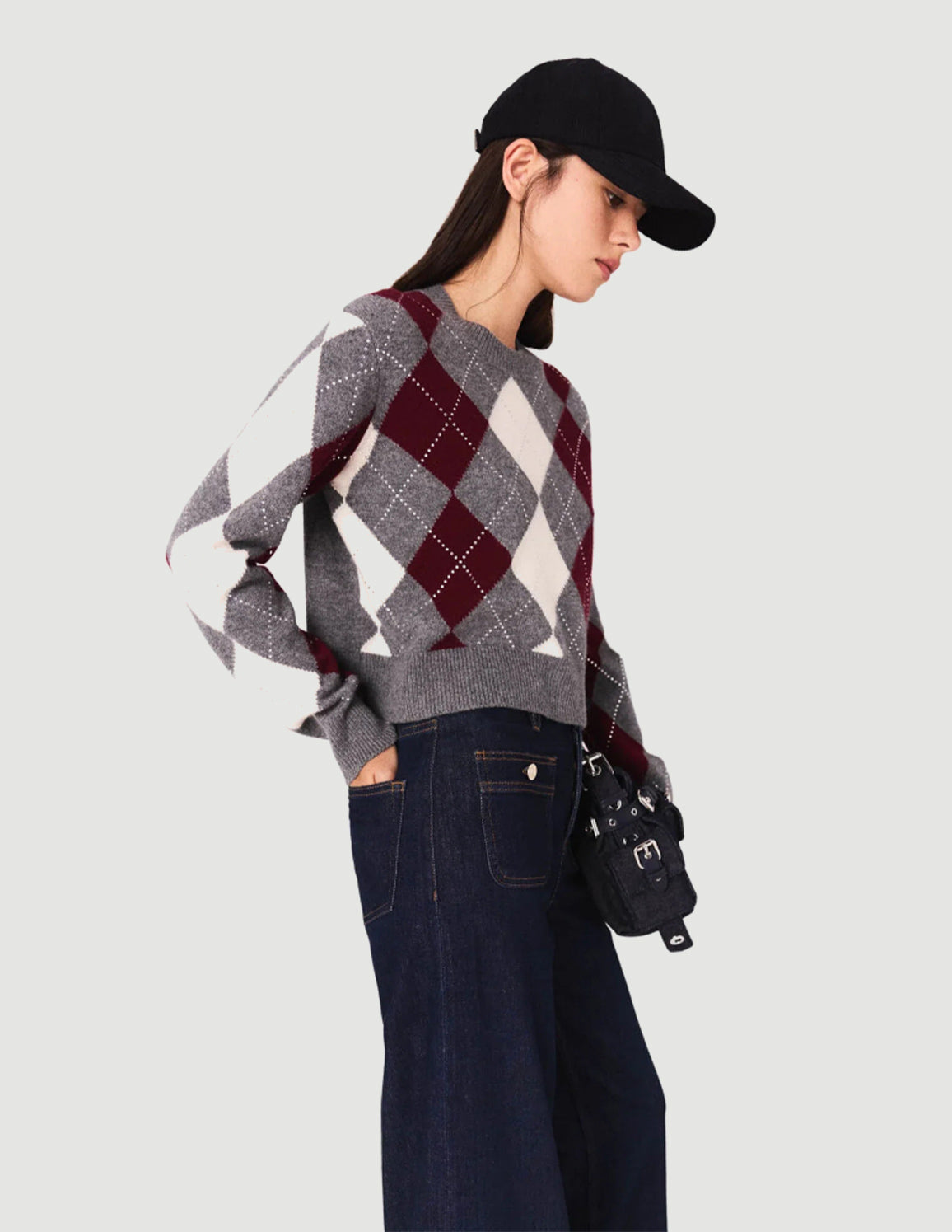 • This soft knit jumper features a diamond pattern subtly embellished with rhinestones. With a round neck and long sleeves, it's a versatile piece: wear it for a chic look with tailored trousers, or more casually with jeans.