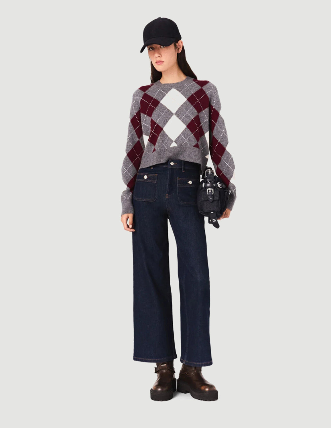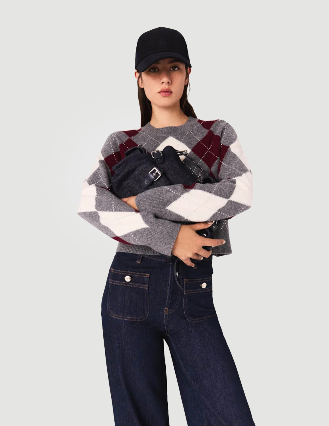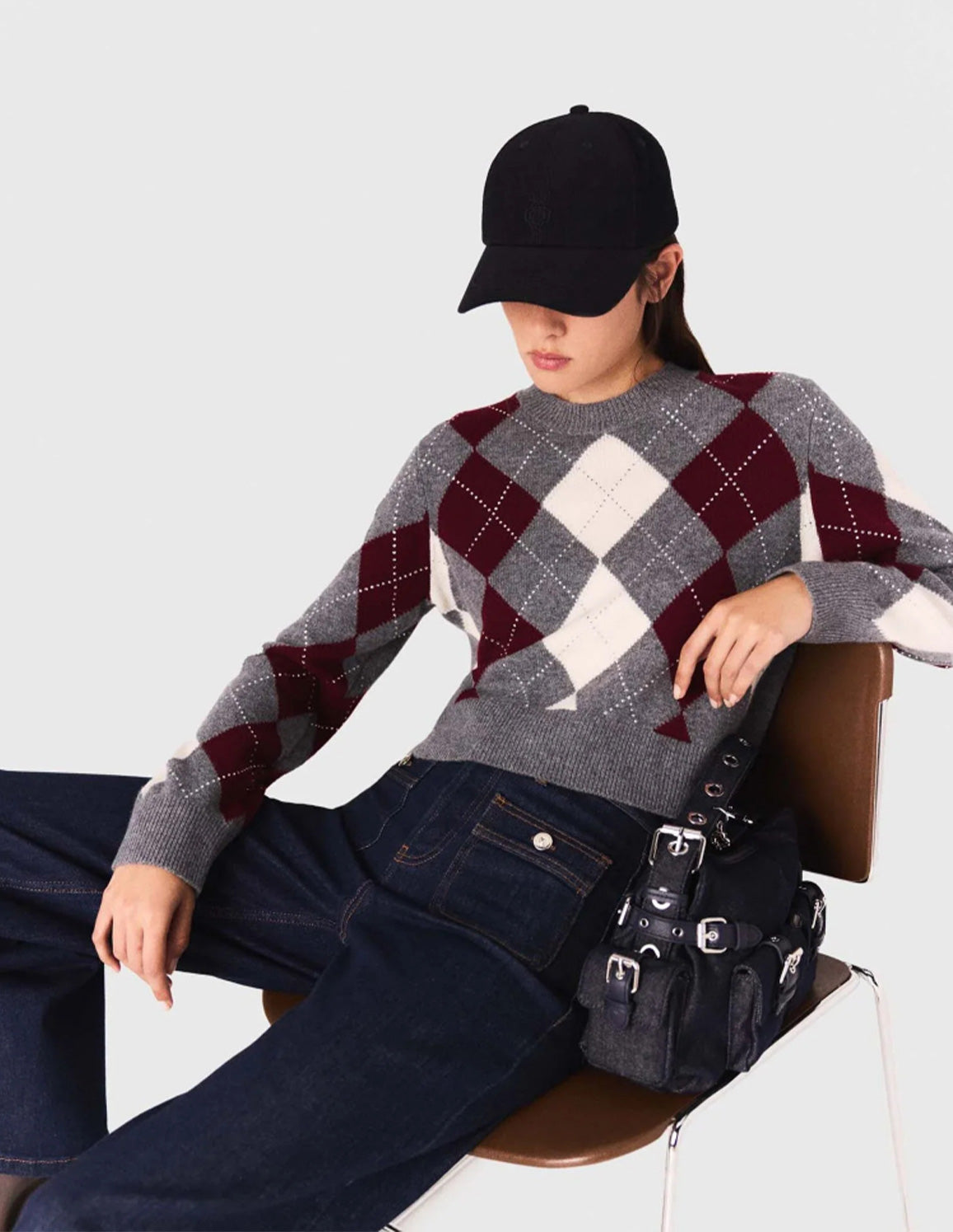 • This soft knit jumper features a diamond pattern subtly embellished with rhinestones. With a round neck and long sleeves, it's a versatile piece: wear it for a chic look with tailored trousers, or more casually with jeans.